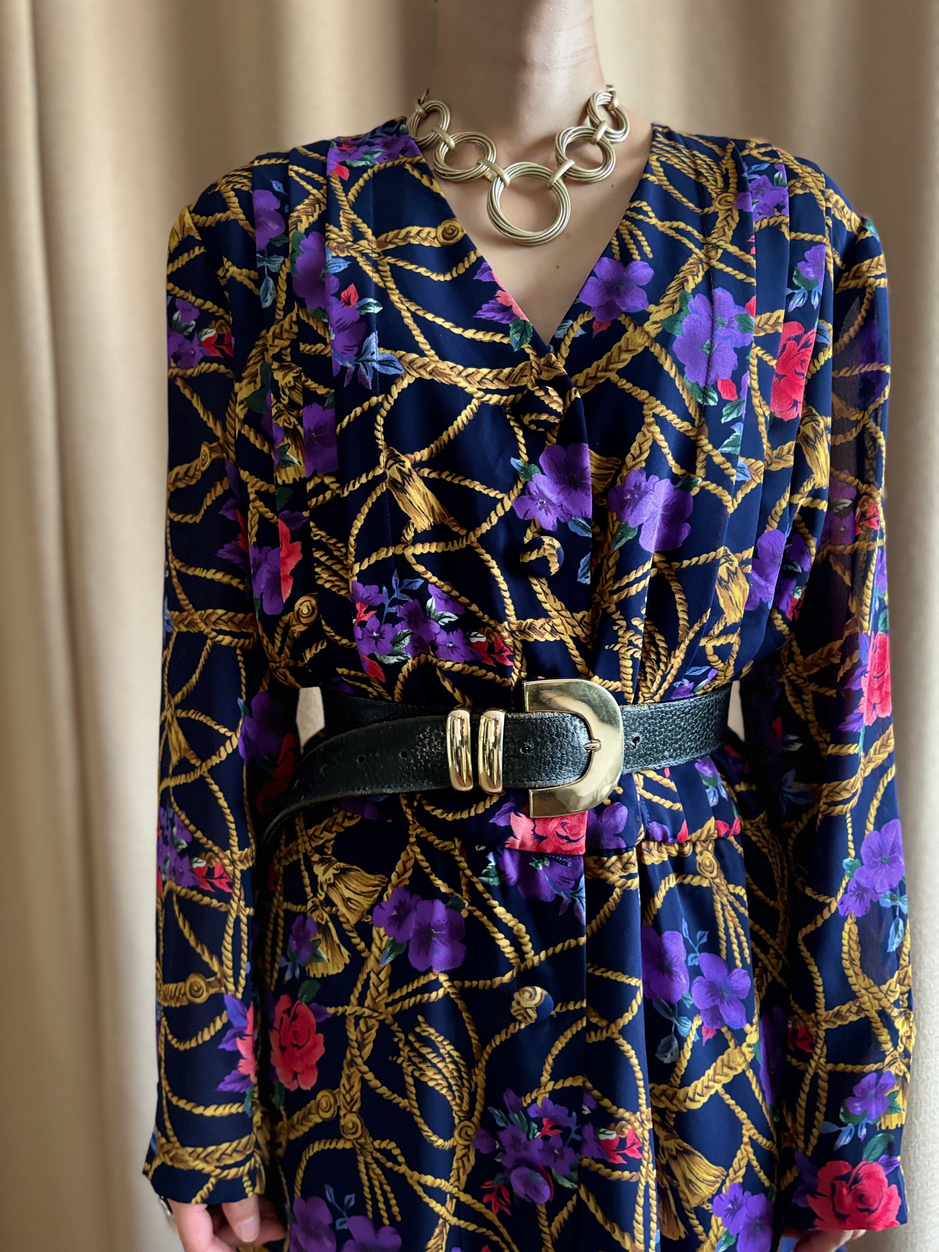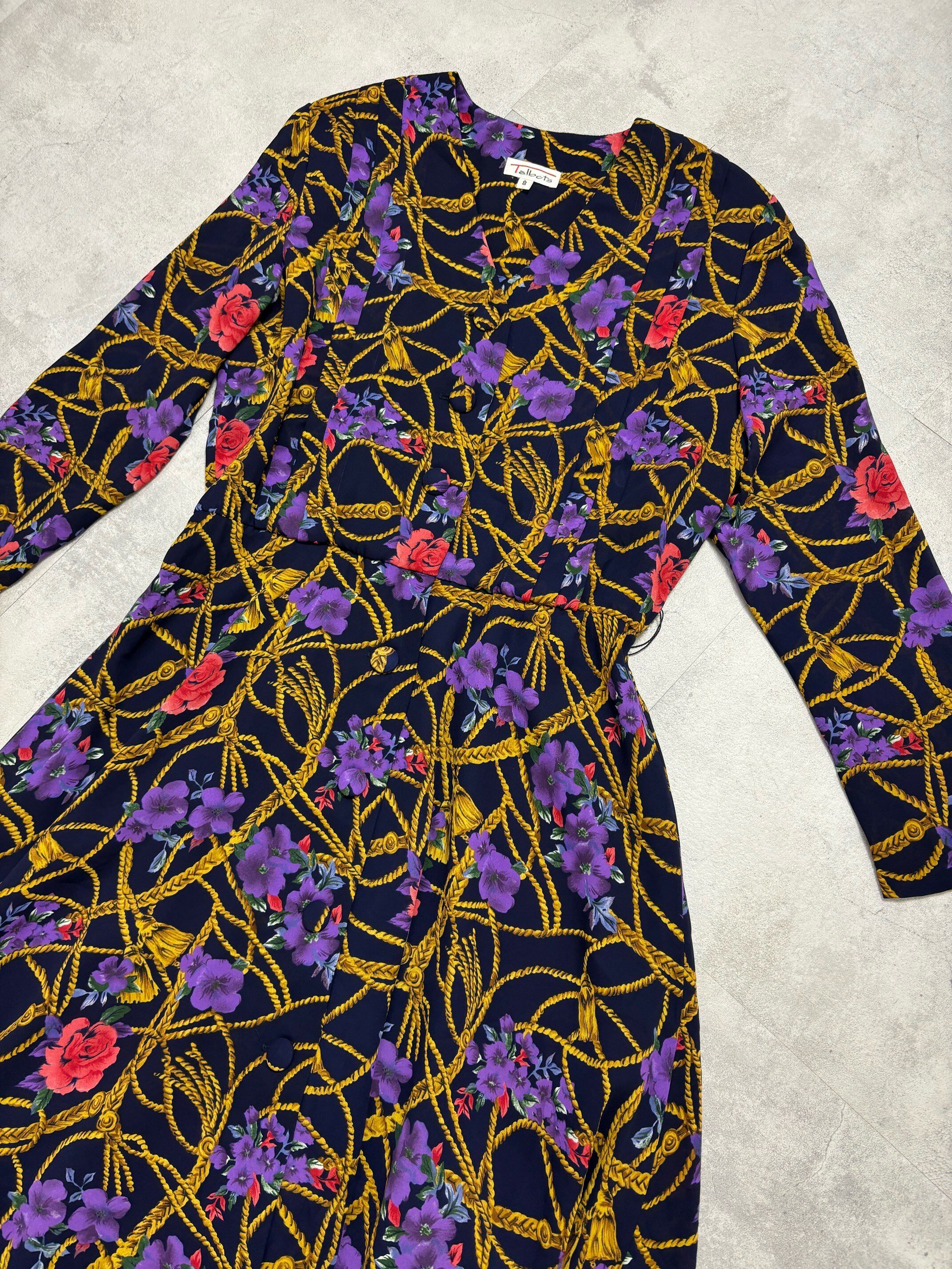 色鮮やかなフラワー柄とタッセルロープ柄がレトロ可愛いU.S.A.ワンピース。