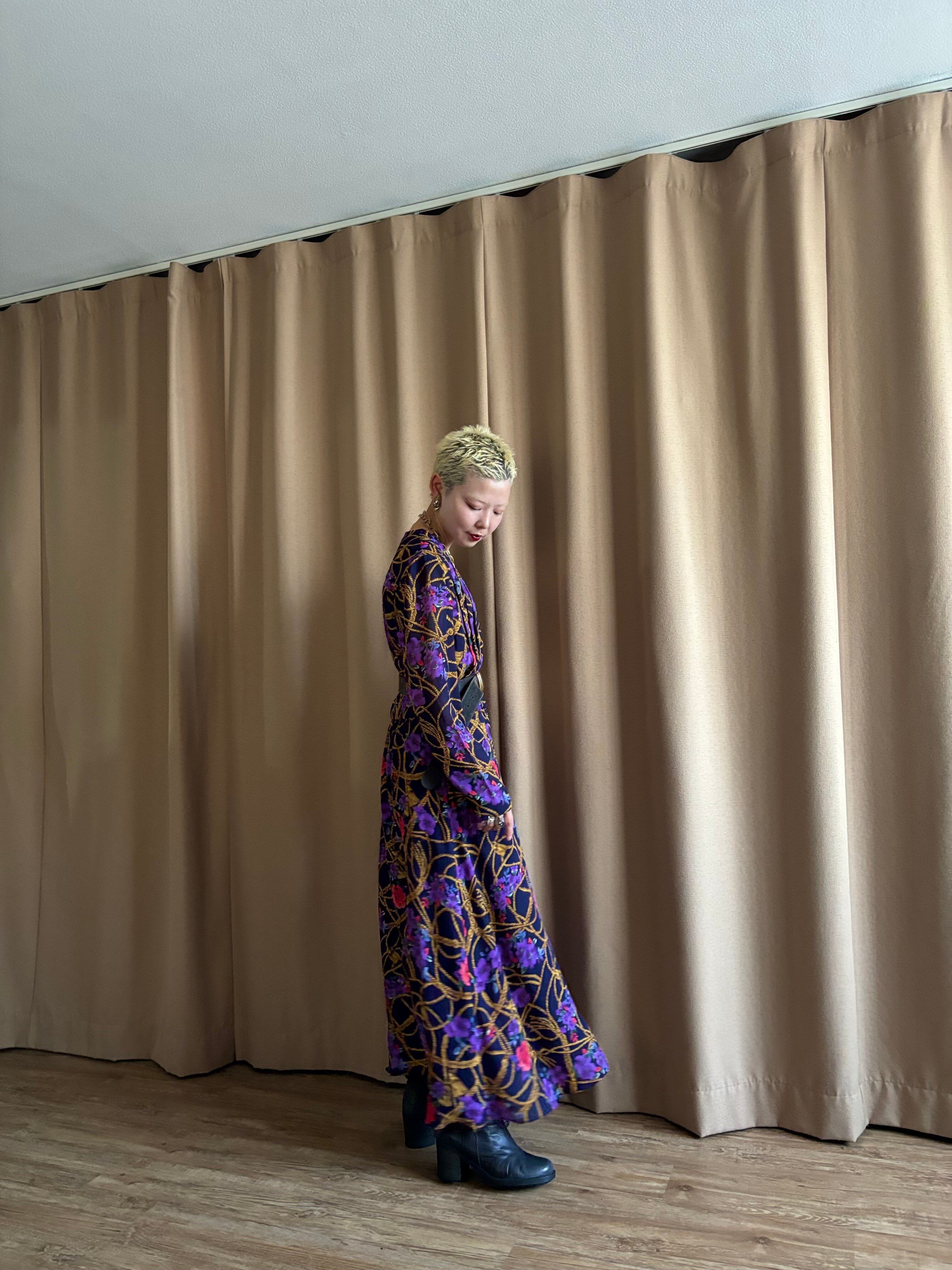 フルオープン可能なフロントボタンデザインの為一枚でワンピースとして、前を開ければ羽織にもなる2way仕様。