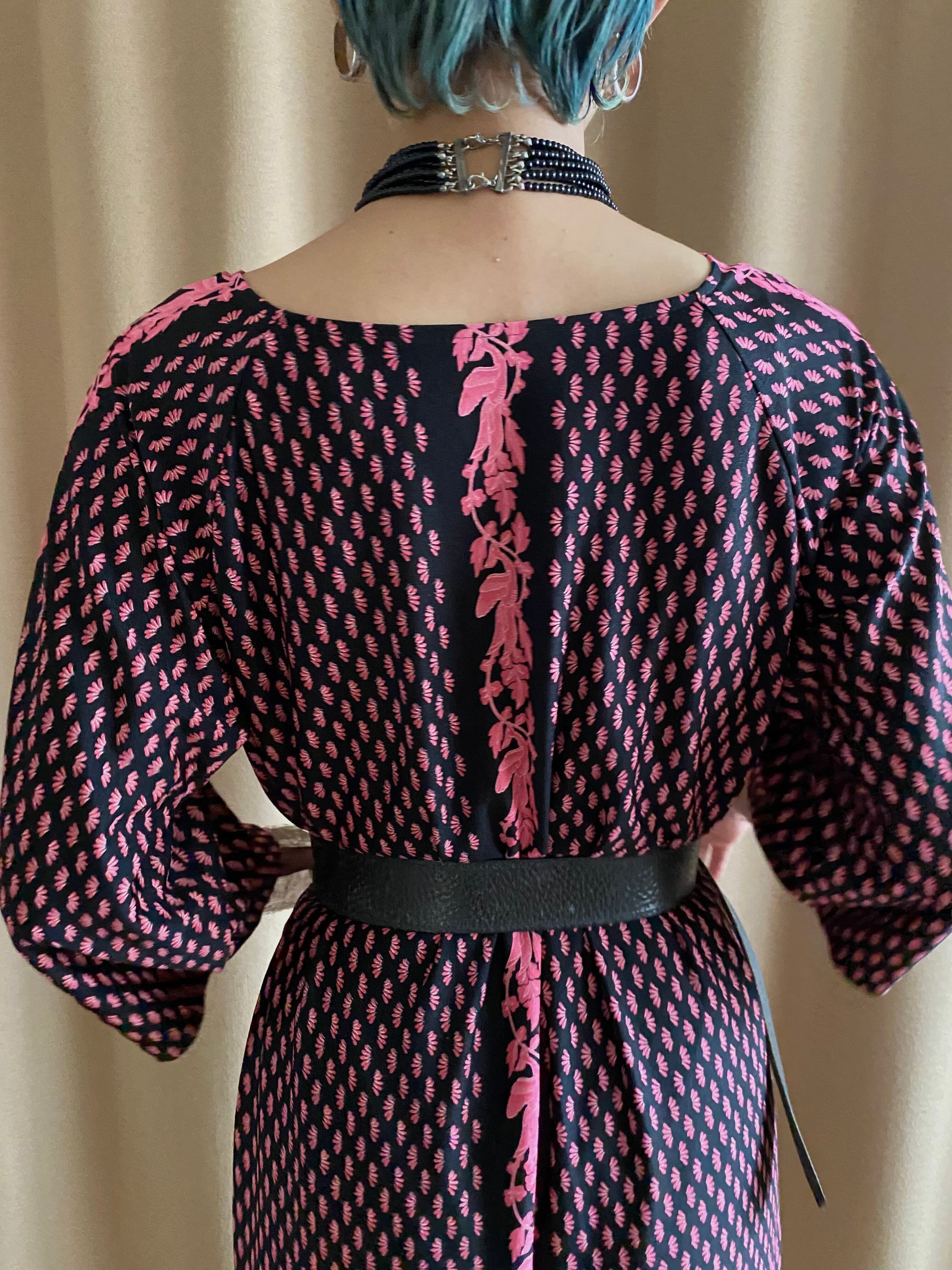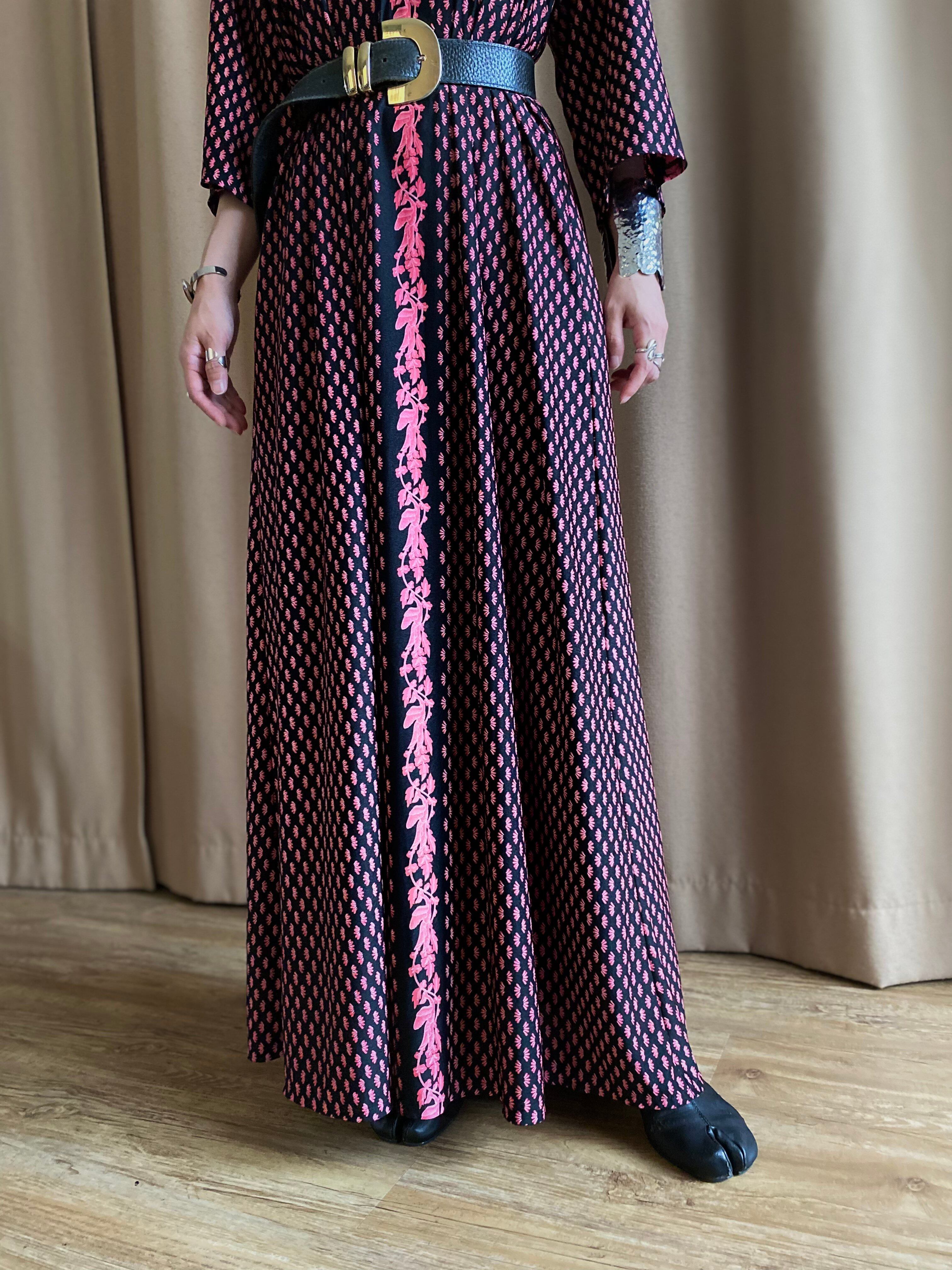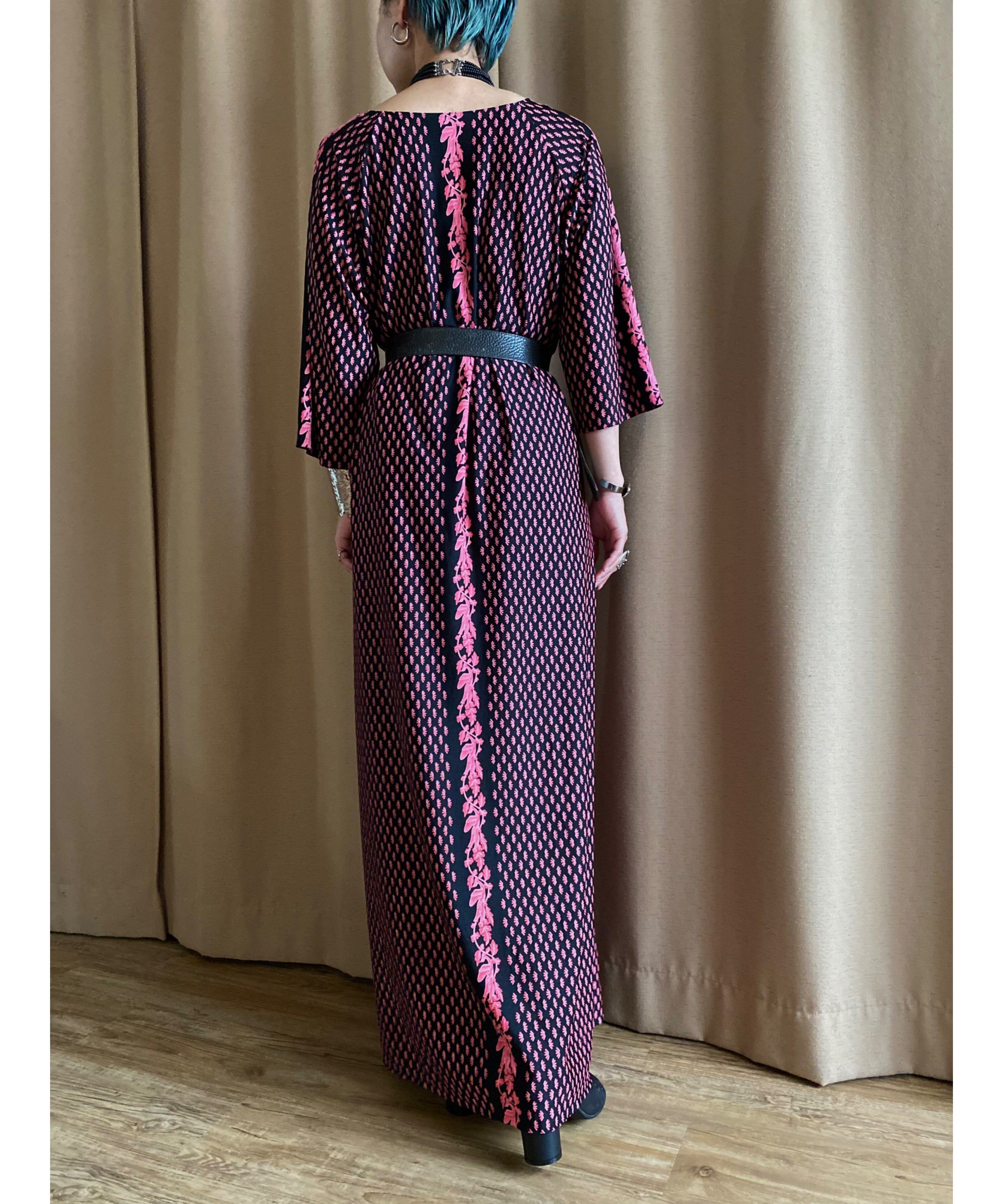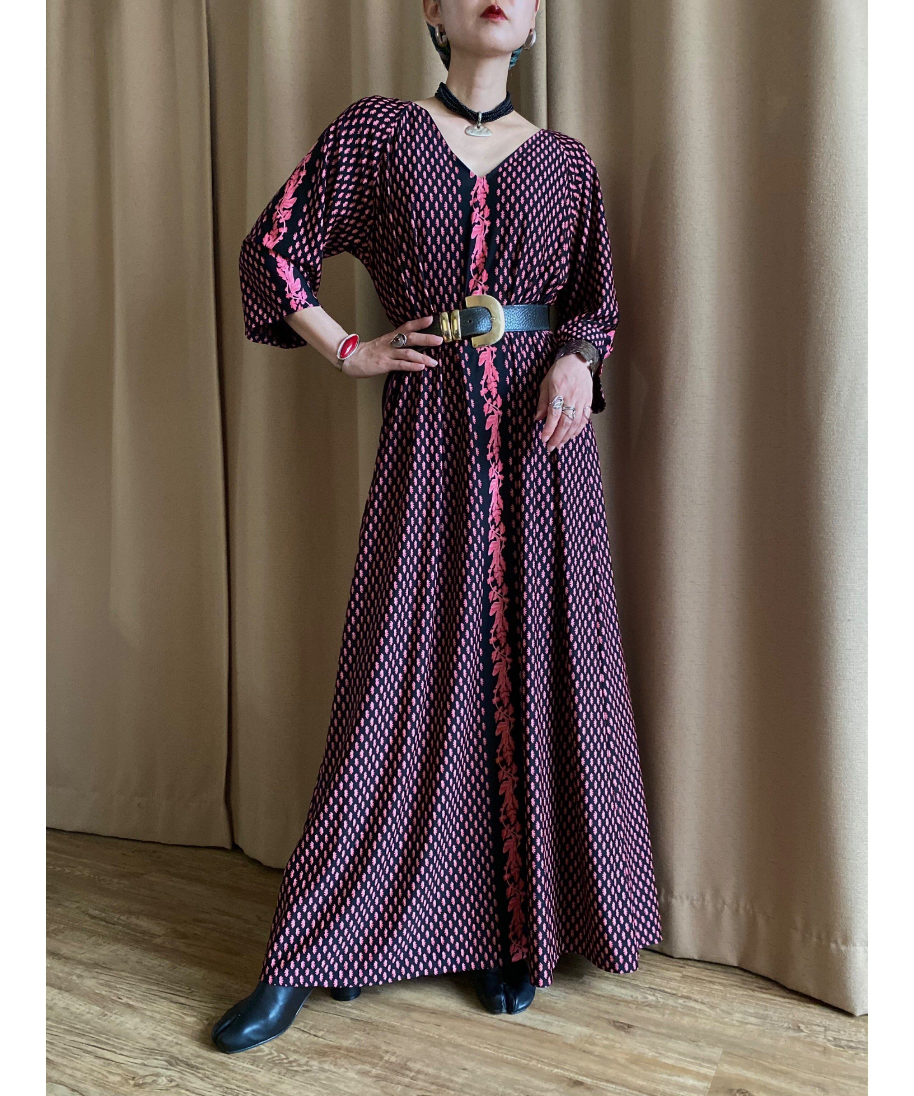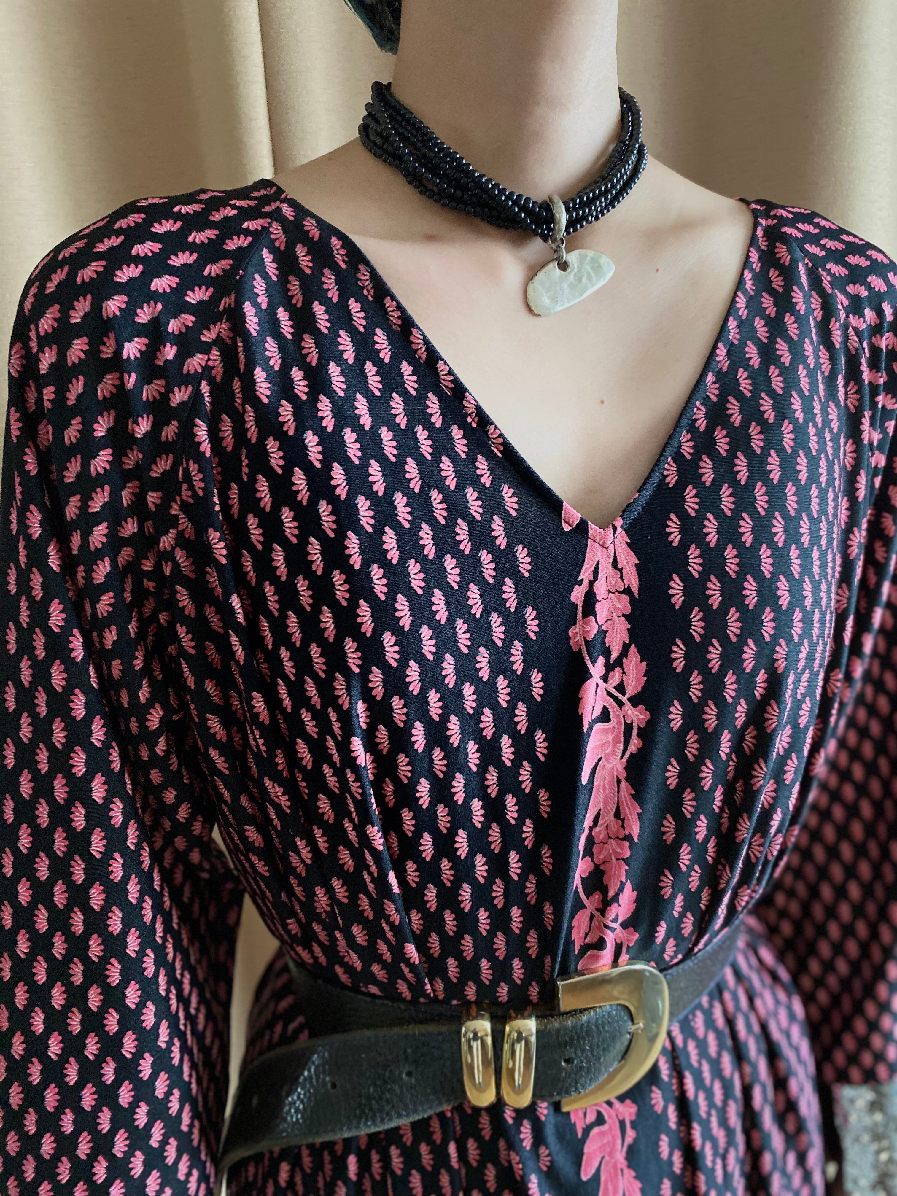 ブラック地にエキゾチックなピンク柄が映える、西ドイツ製ワンピース。