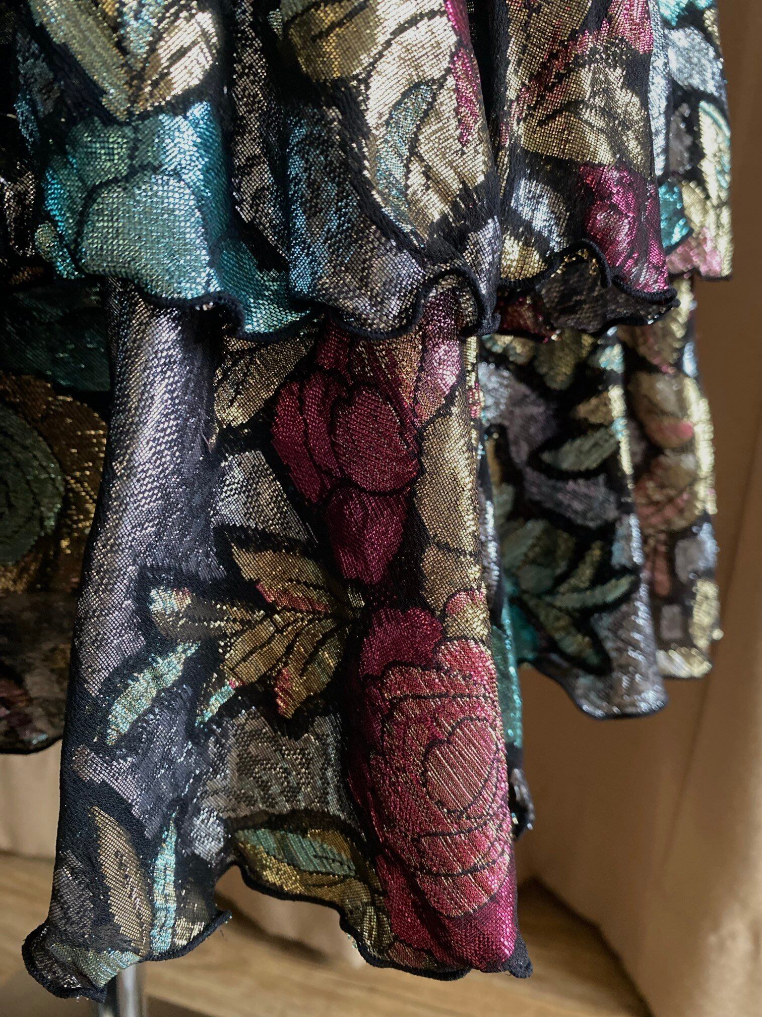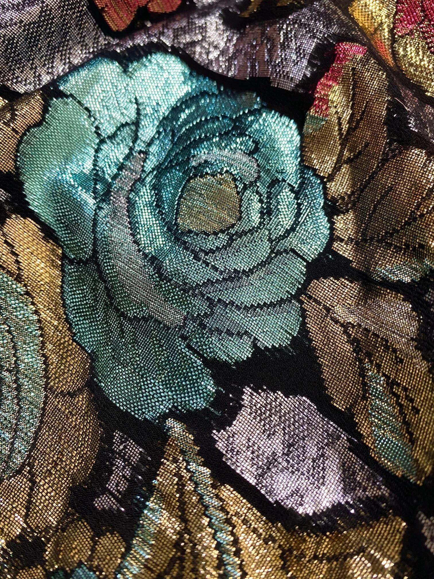 所々透け感のあるフラワー刺繍にラグジュアリーな煌めきで華やぎと遊び心を加えた拘りのファブリックデザイン。