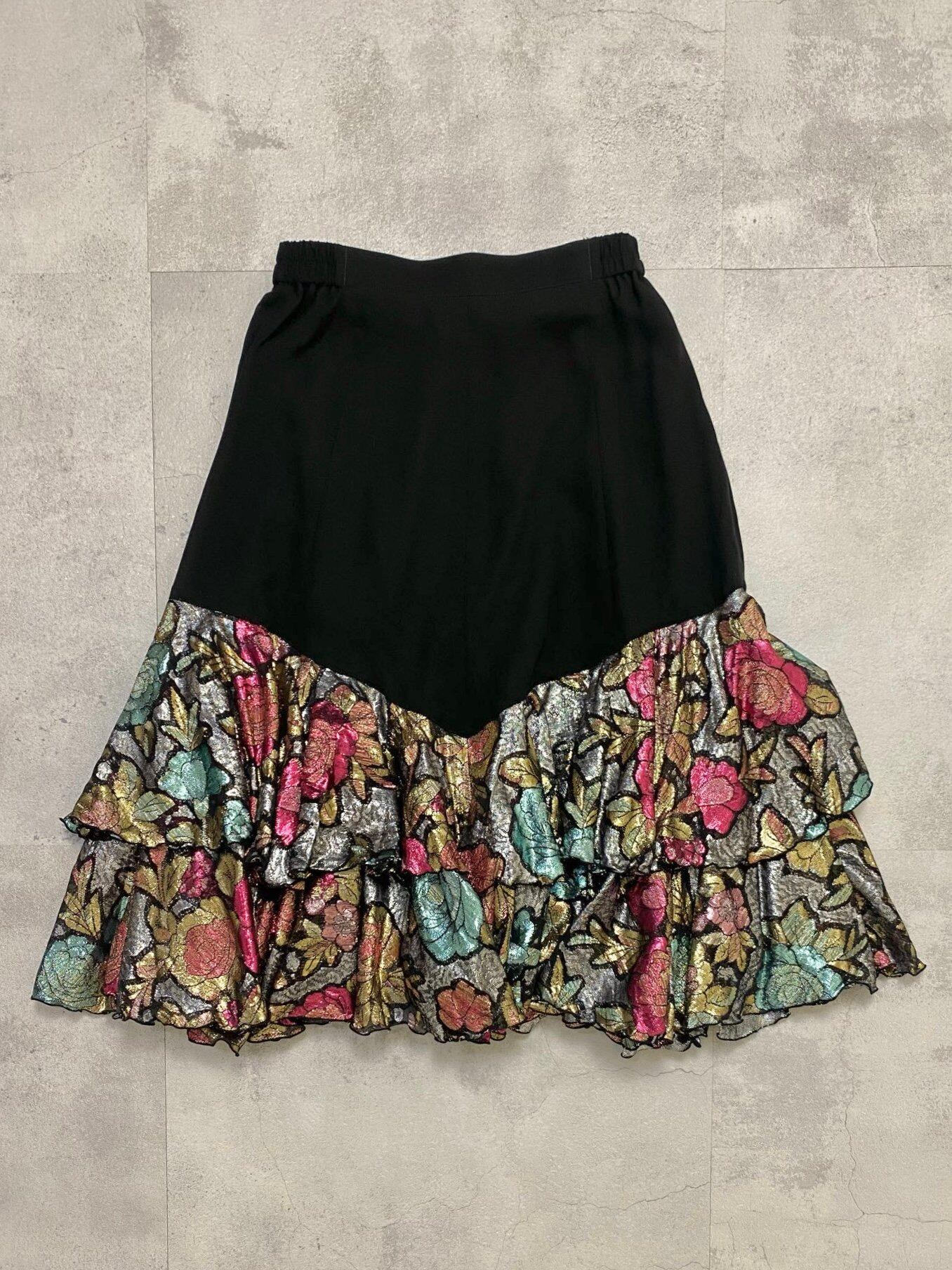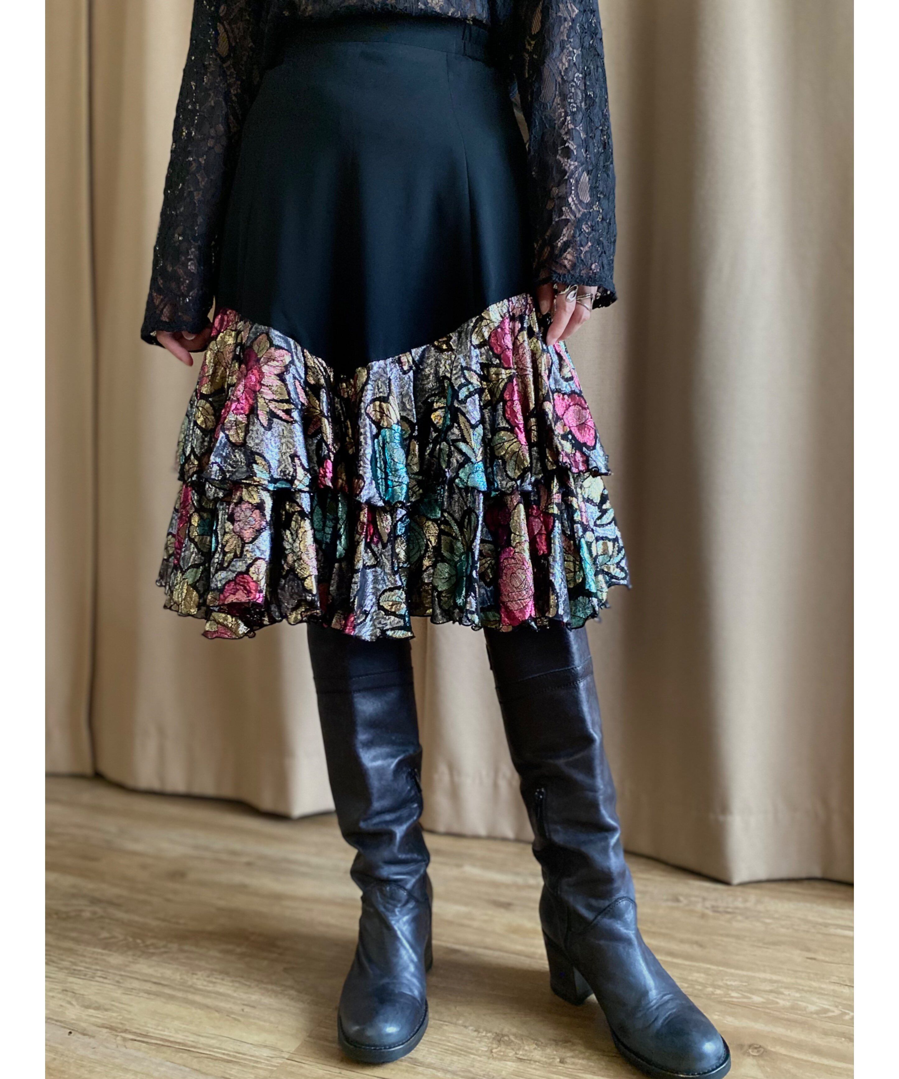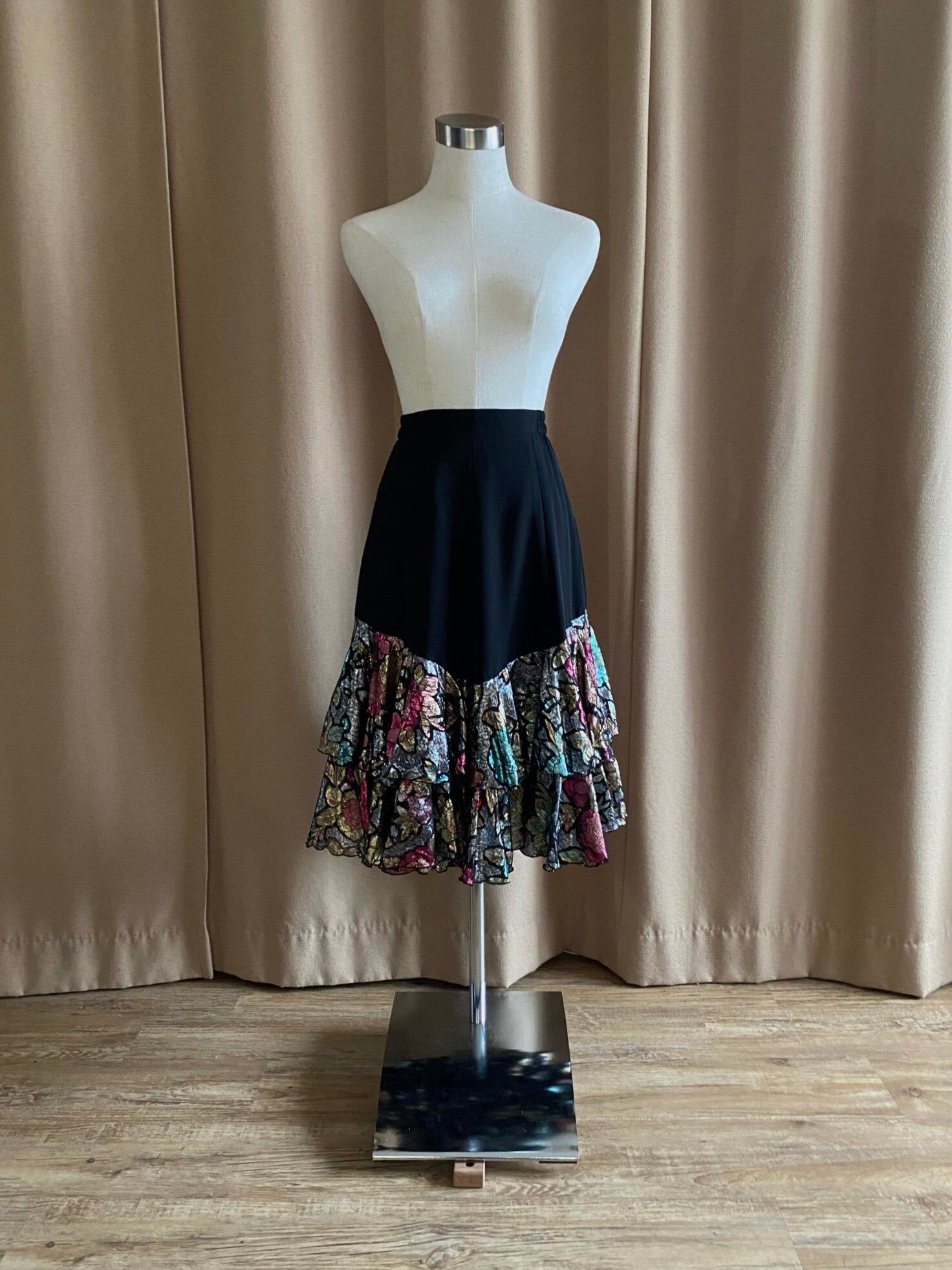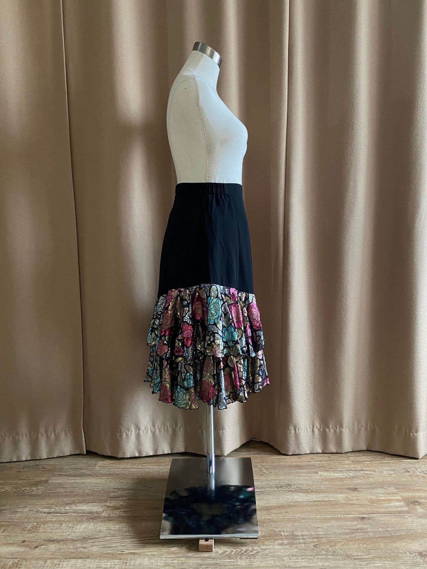 ブラック×デコラティブなフリルがガーリーモードな印象のミディアムスカート。