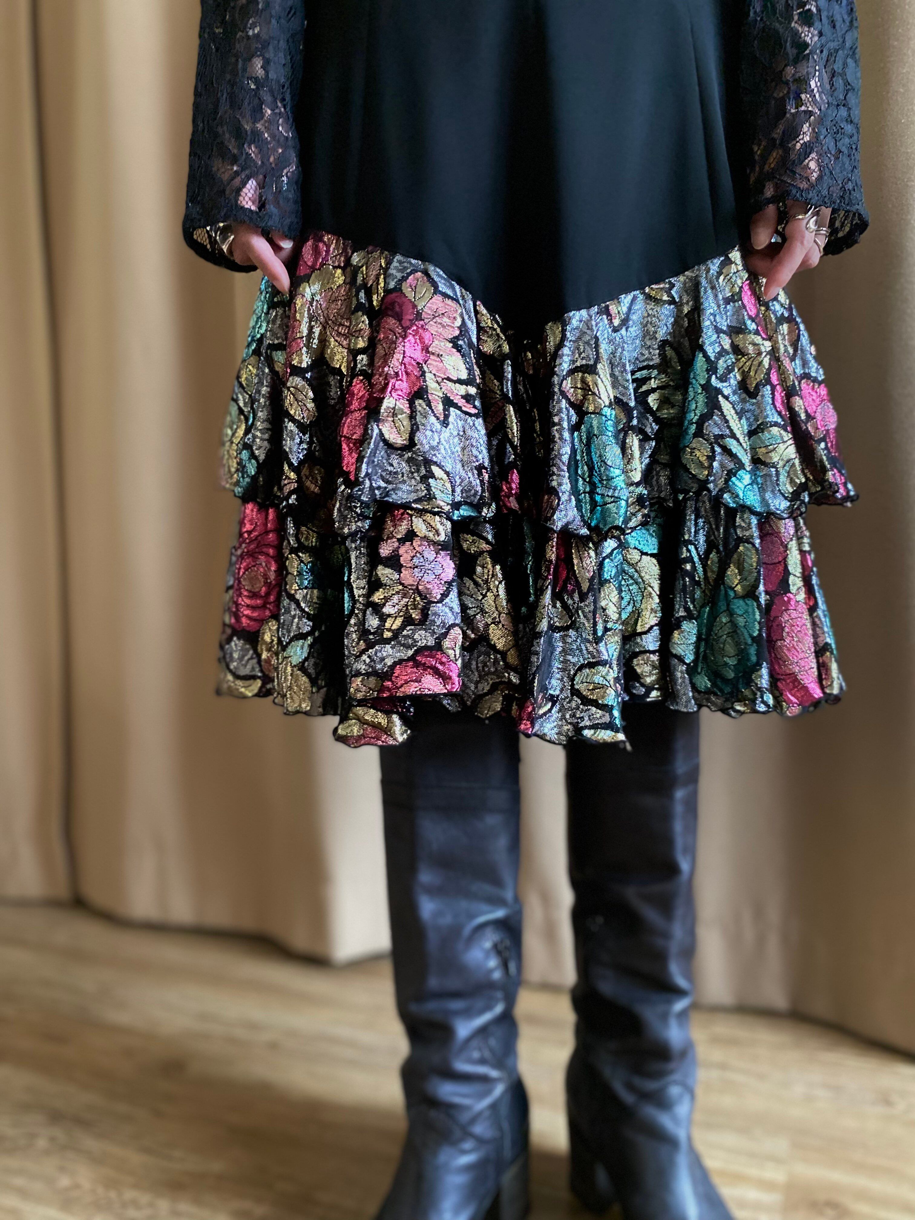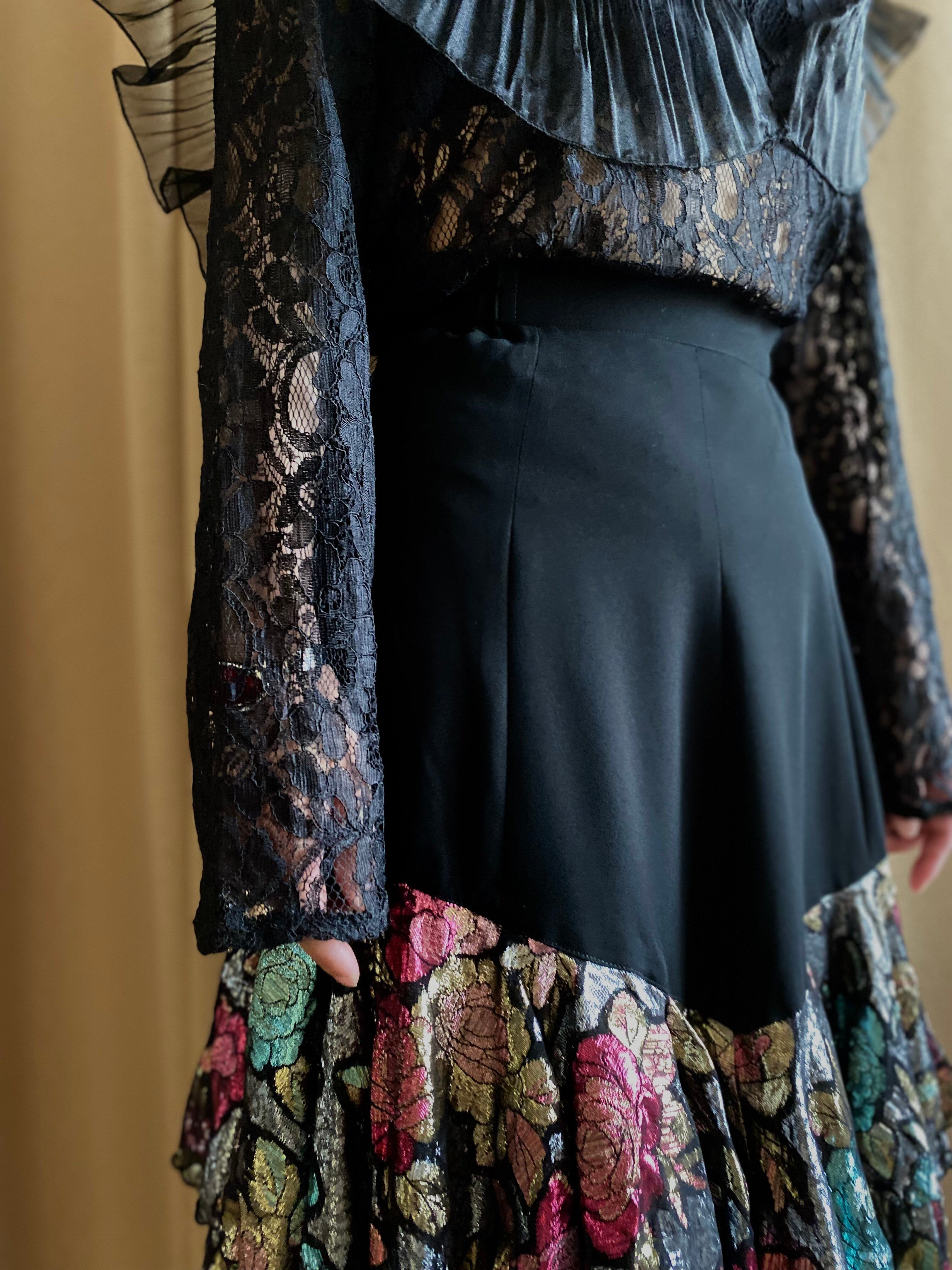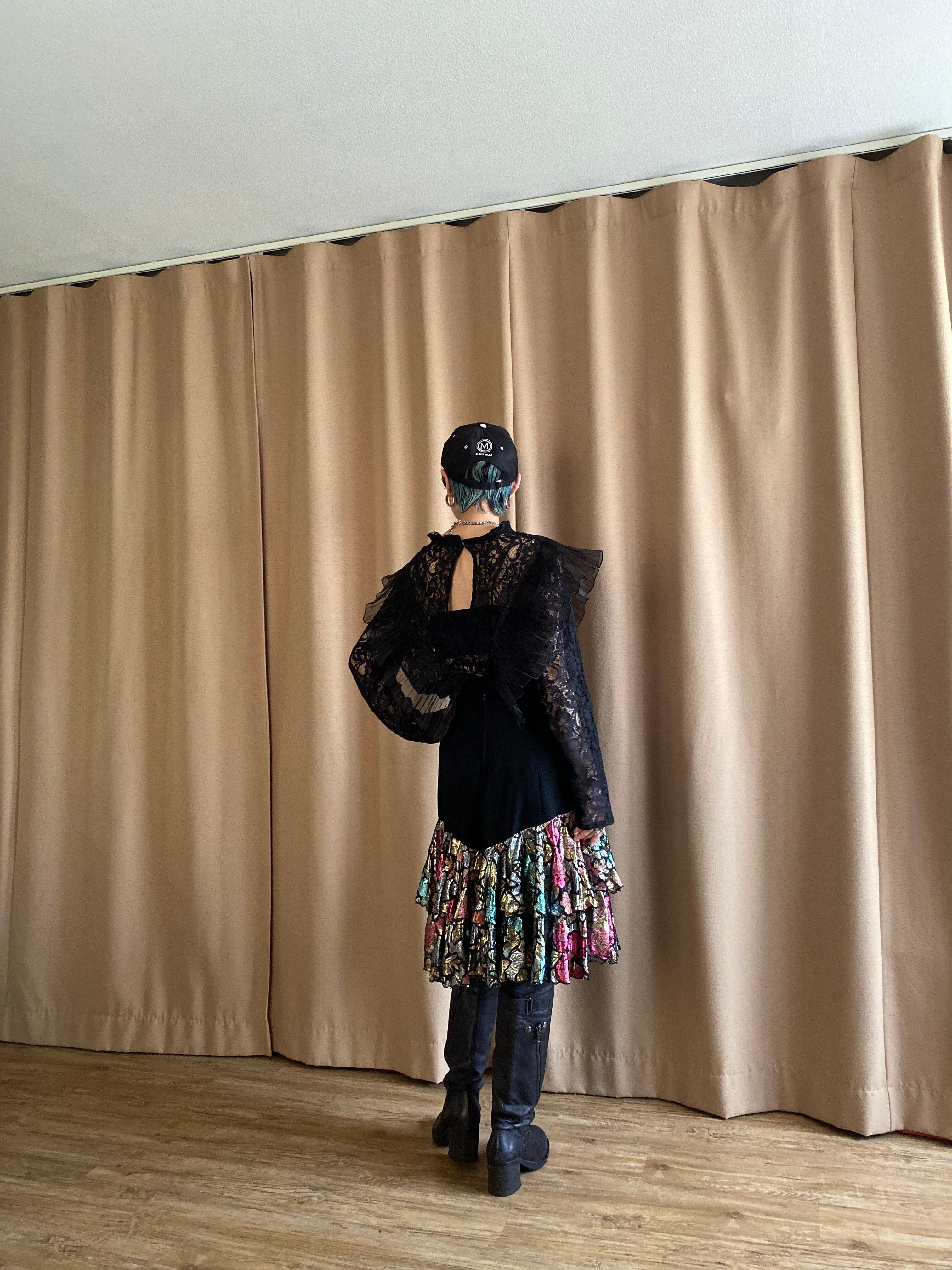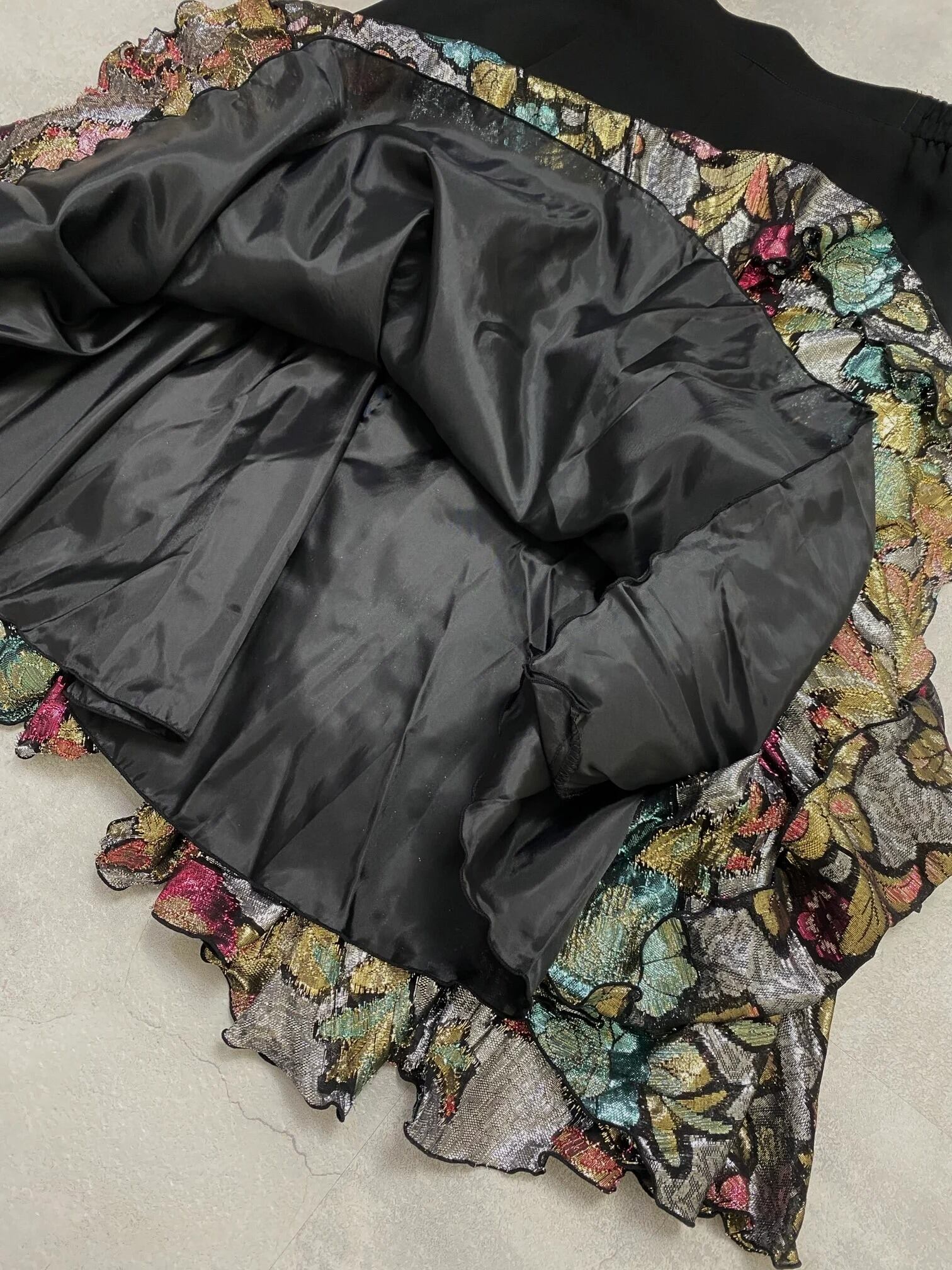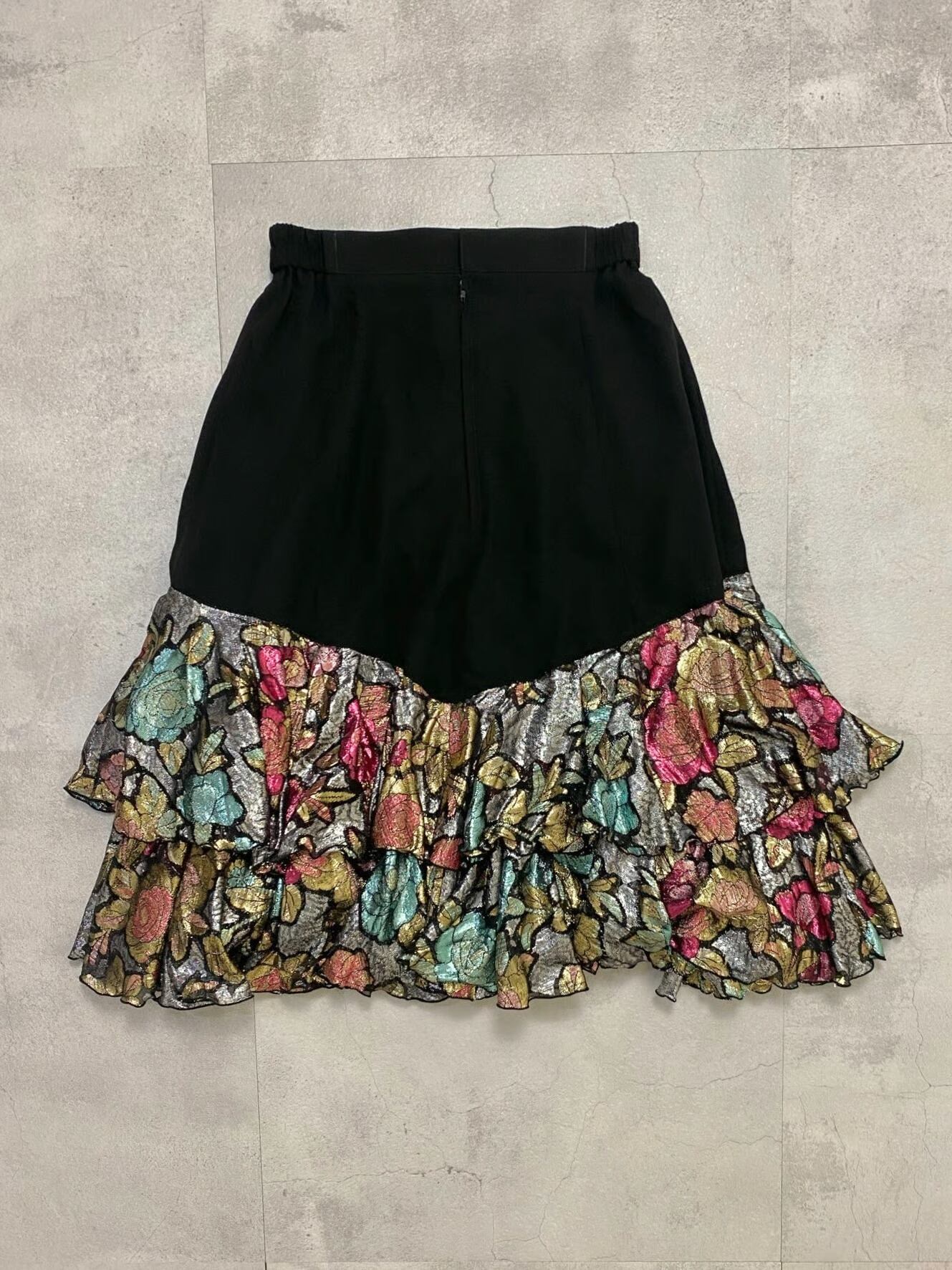 ブラック×デコラティブなフリルがガーリーモードな印象のミディアムスカート。