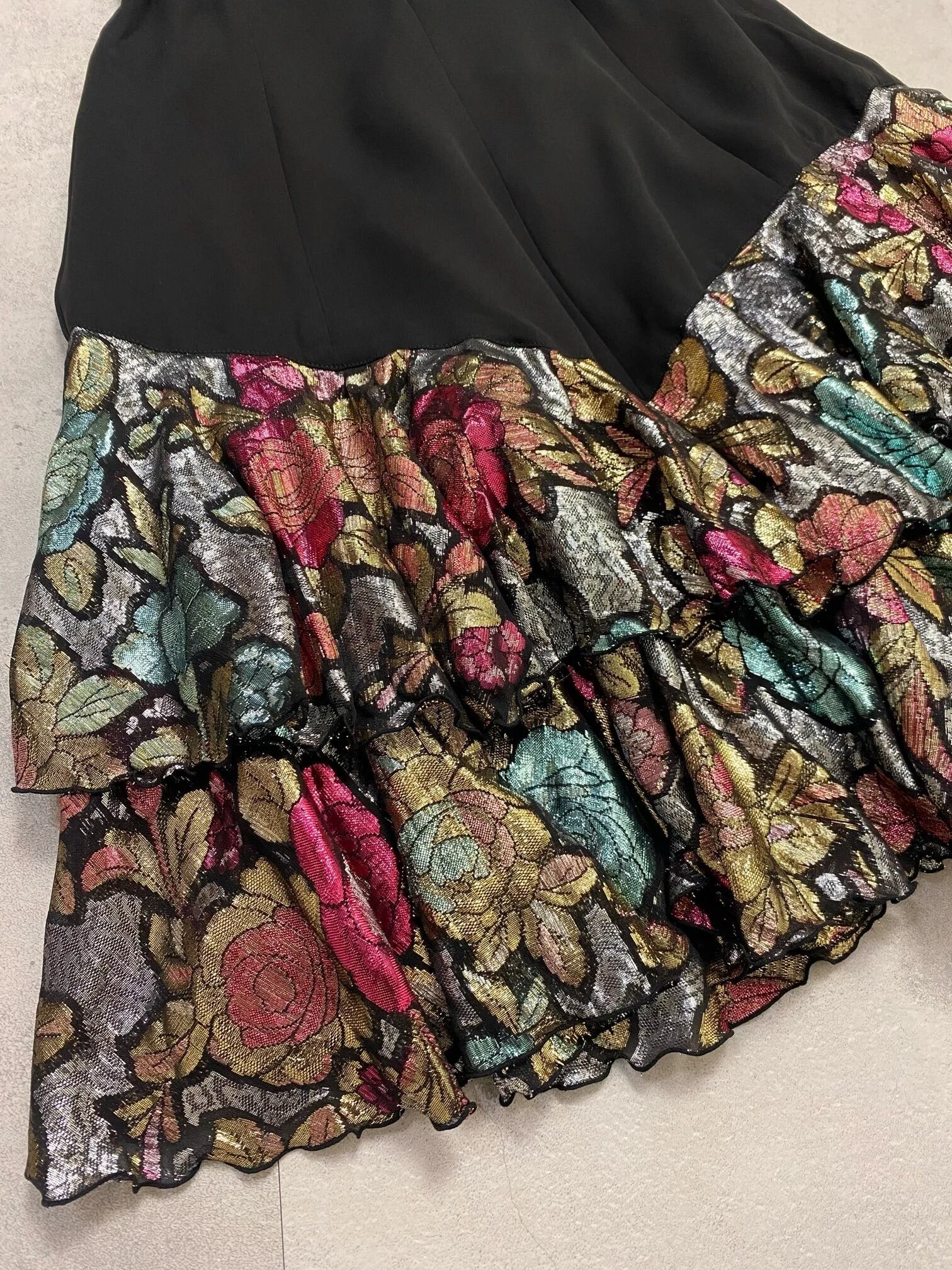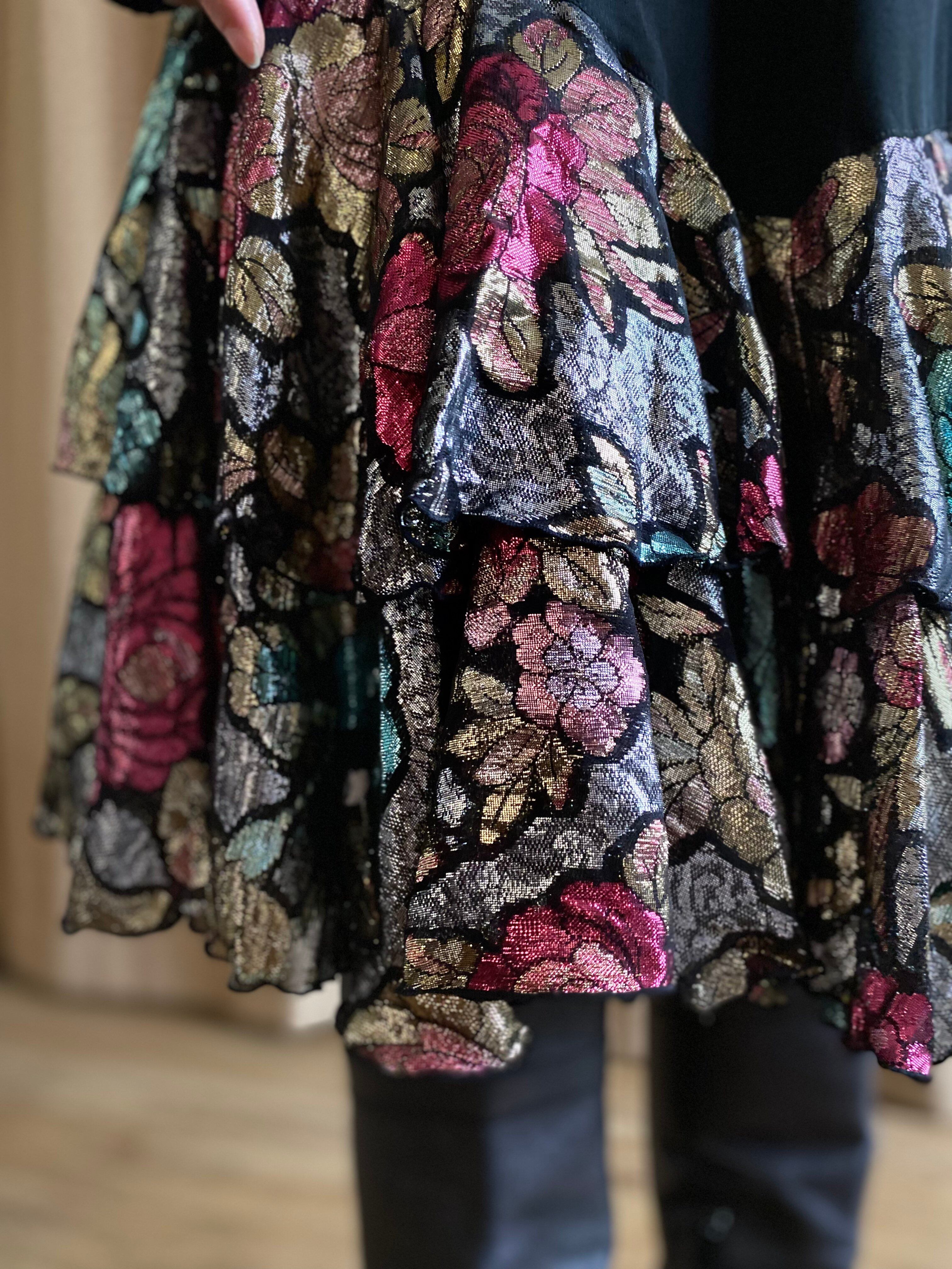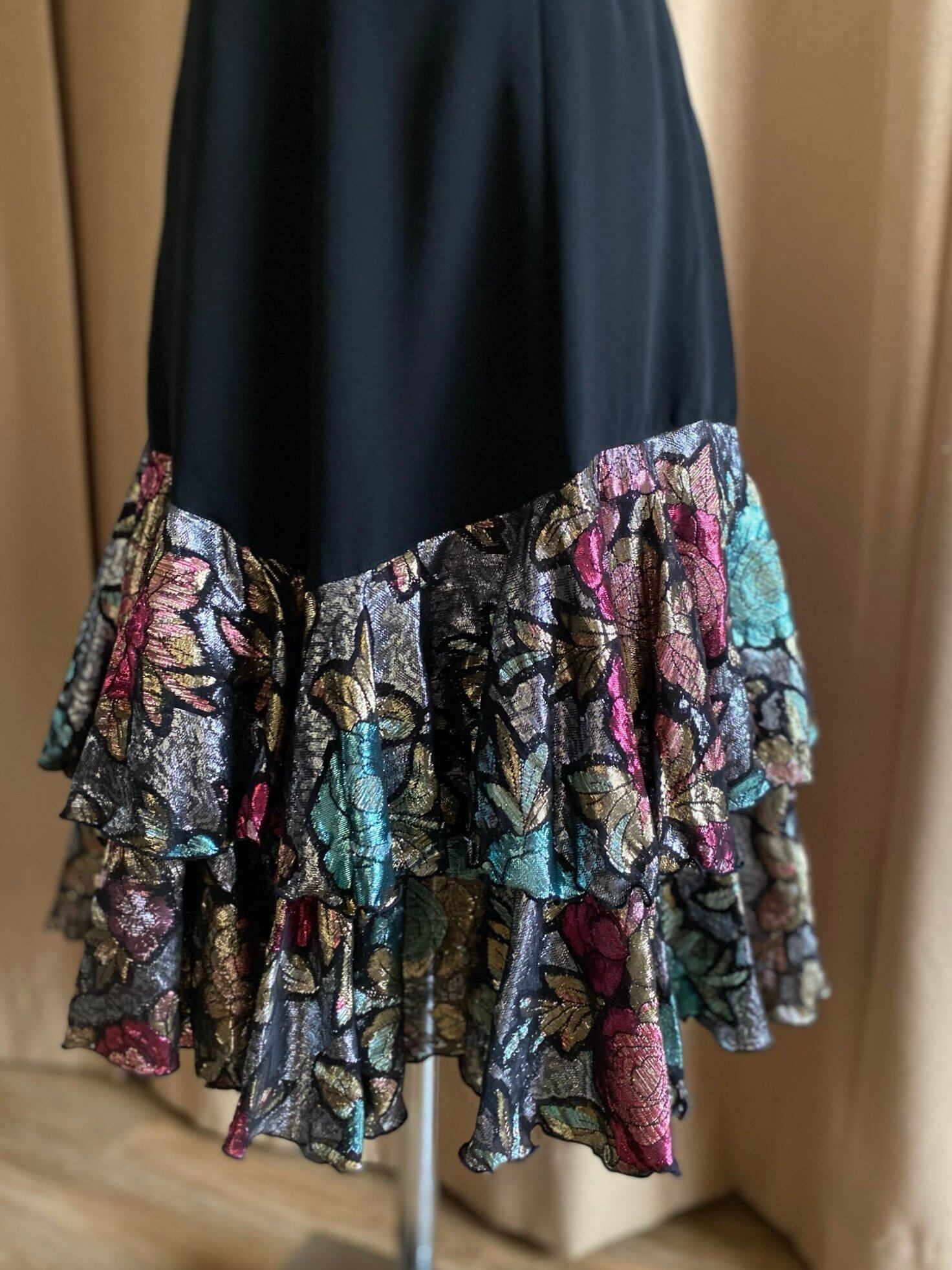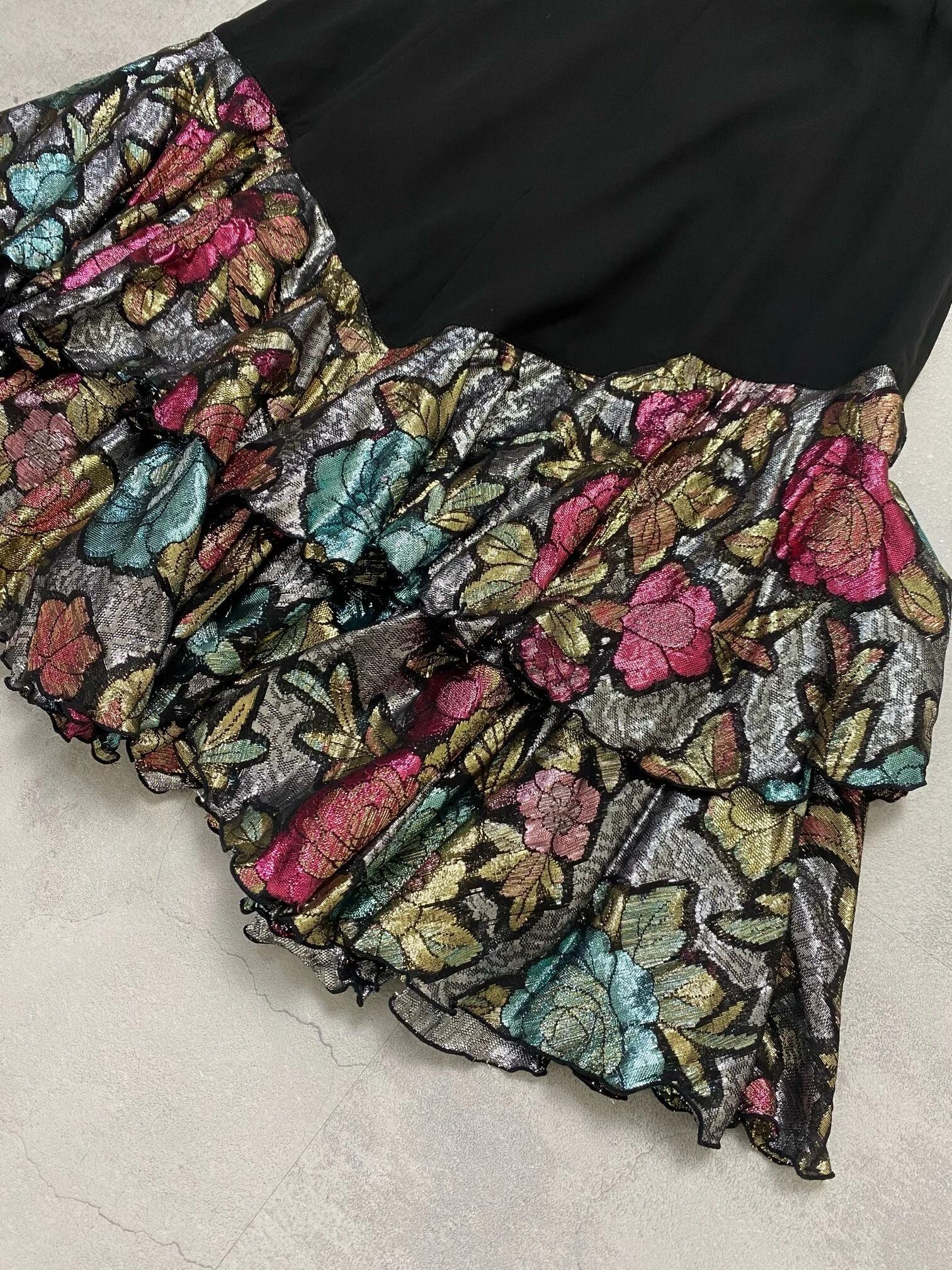 ブラック×デコラティブなフリルがガーリーモードな印象のミディアムスカート。
