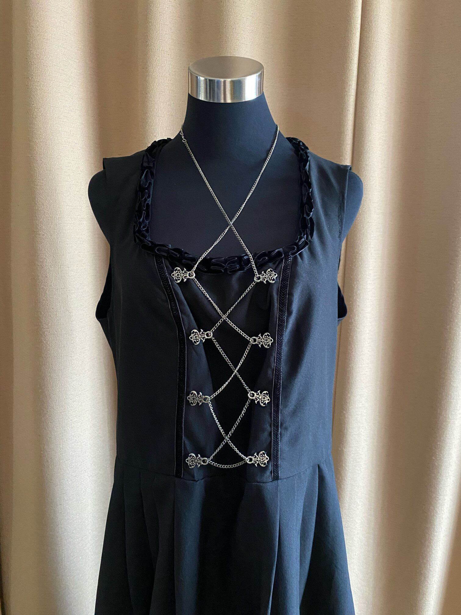 metal chain black vintage dress-4230-7