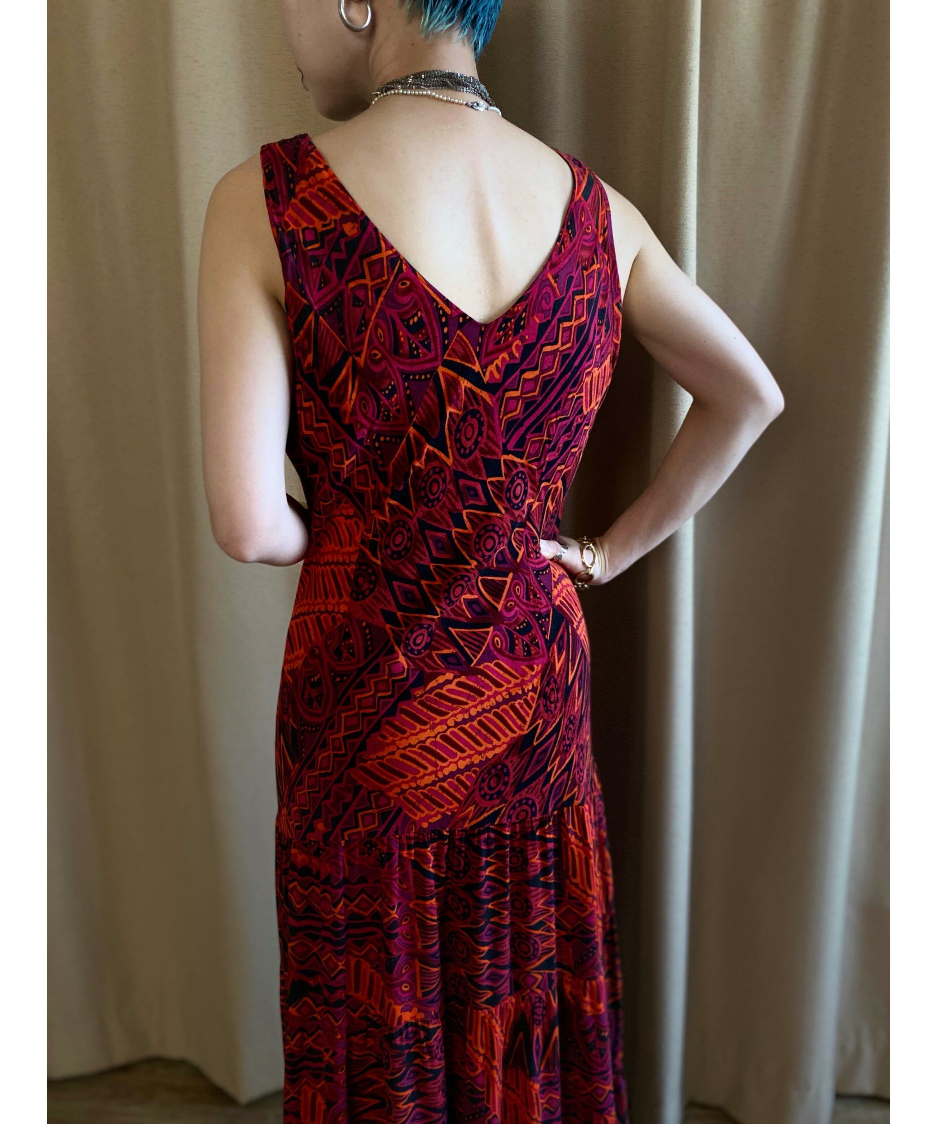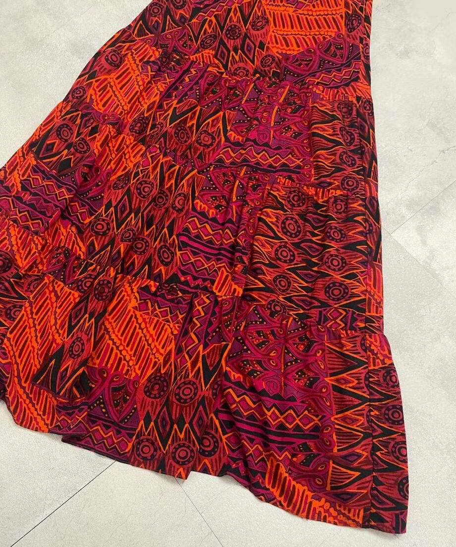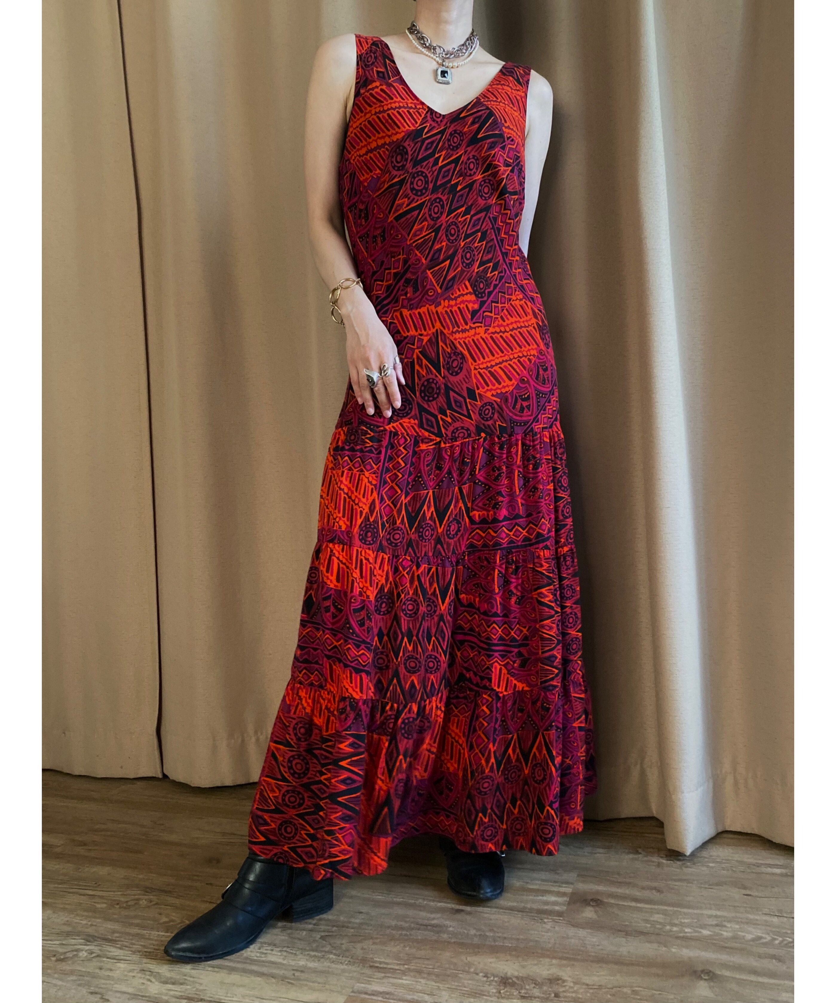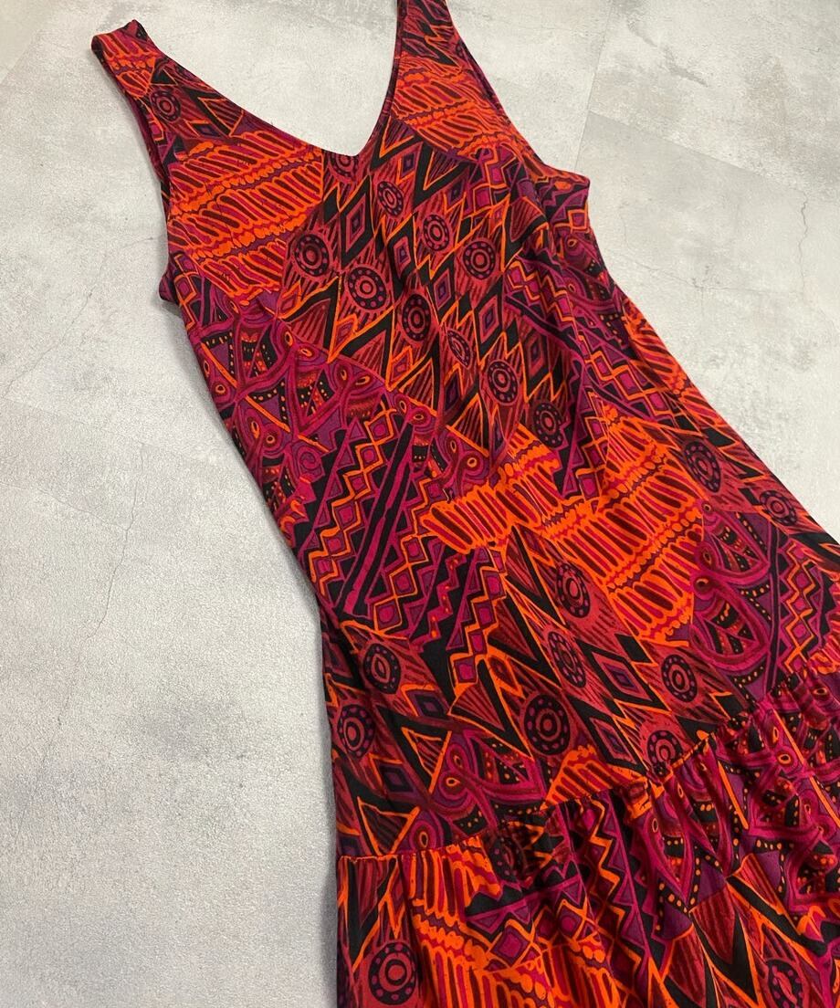 ビビッドな暖色カラーにエスニック柄がヴィンテージムード漂うインポートワンピース。