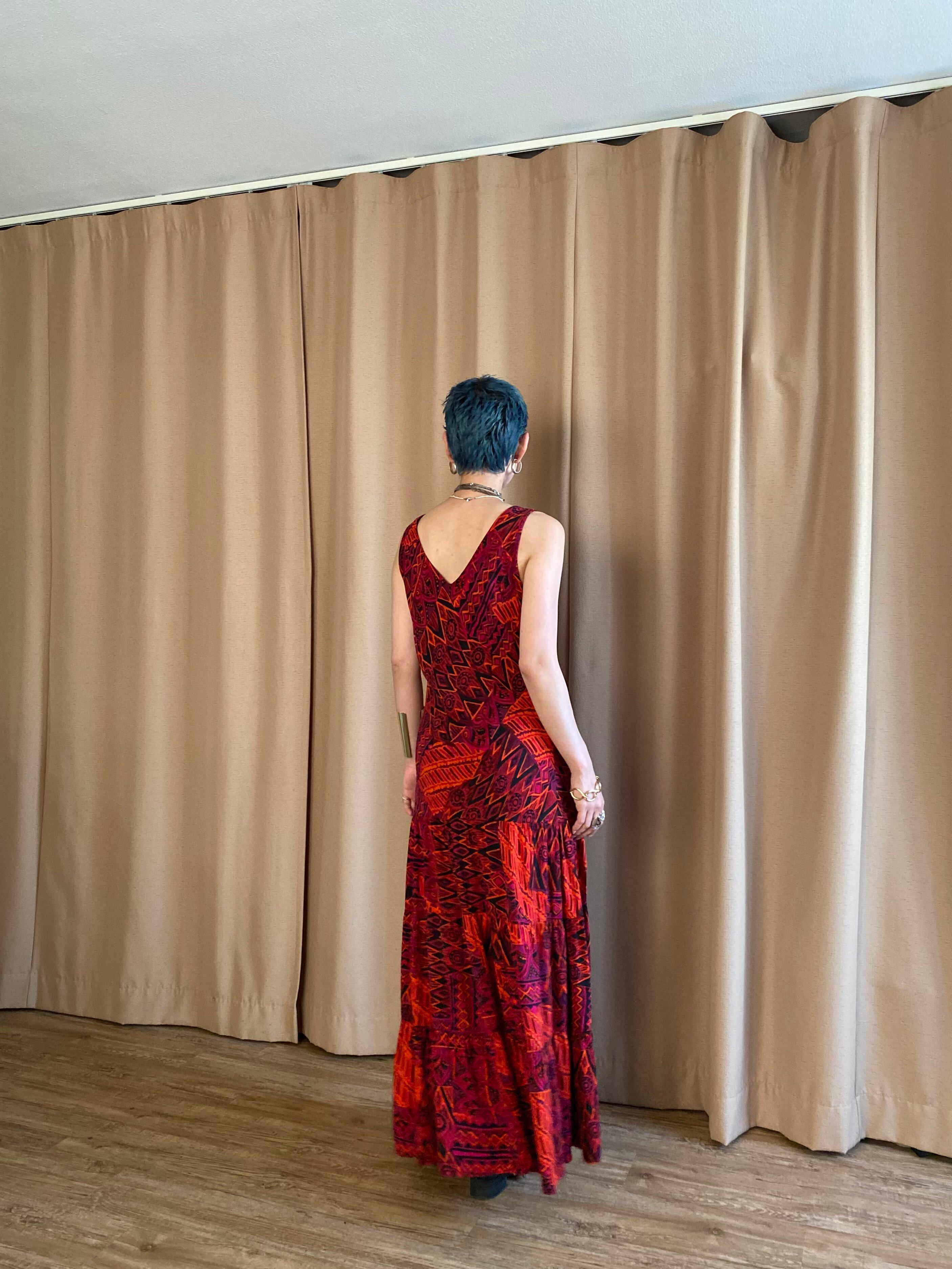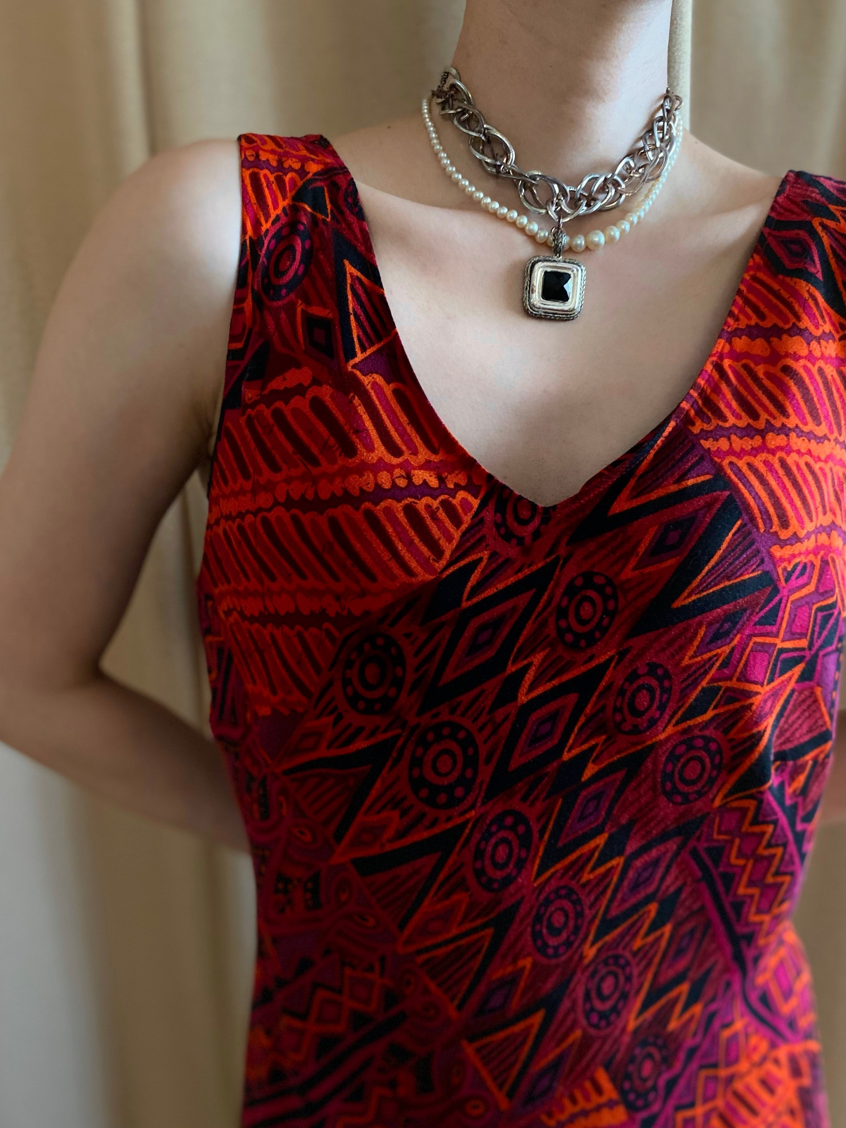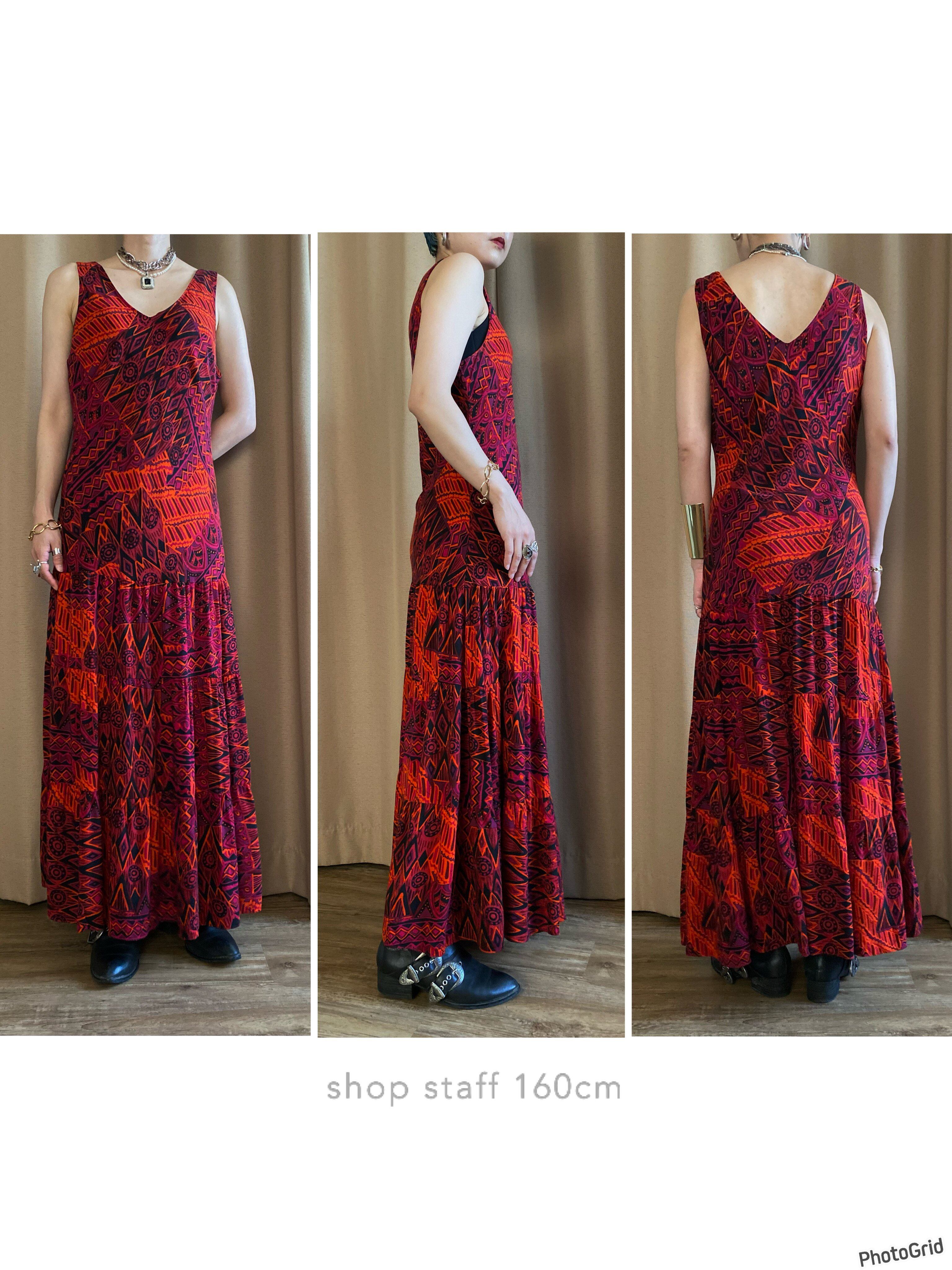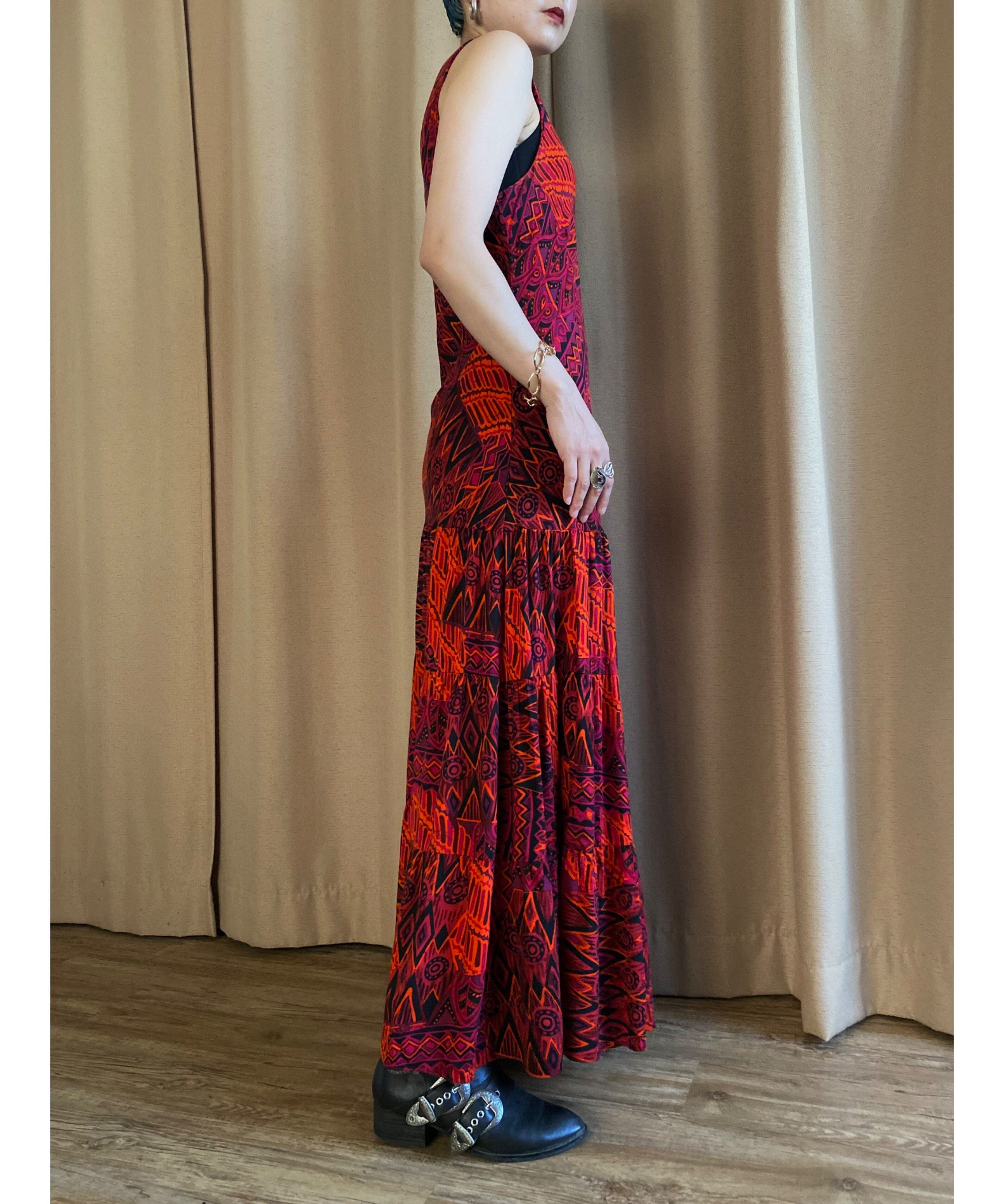 ビビッドな暖色カラーにエスニック柄がヴィンテージムード漂うインポートワンピース。
