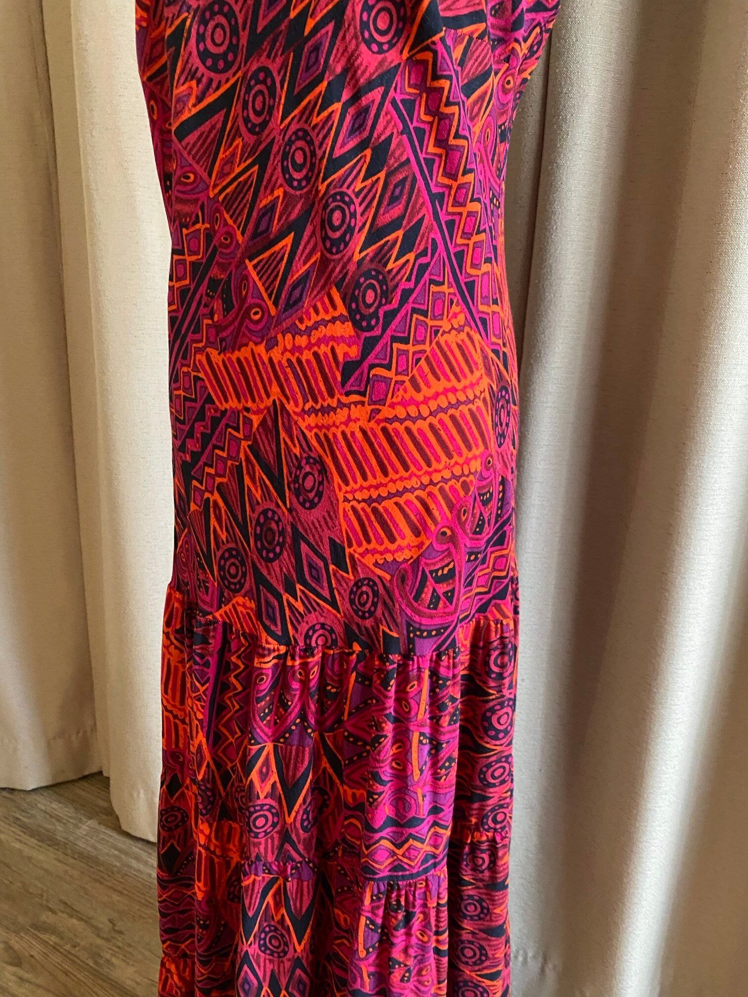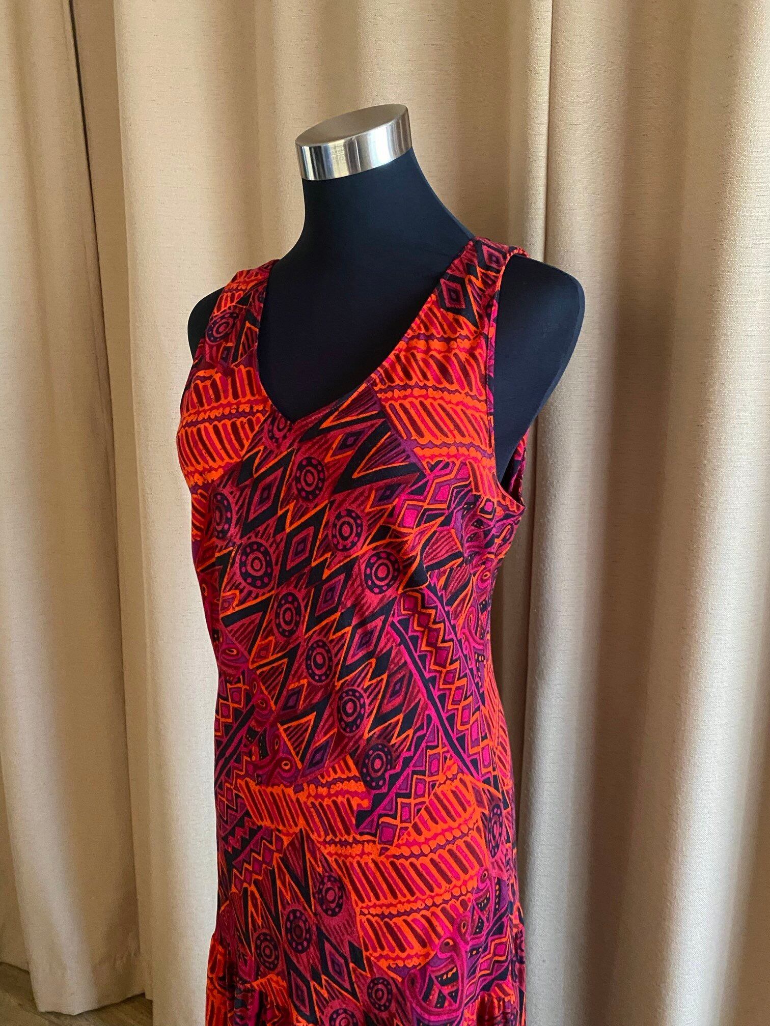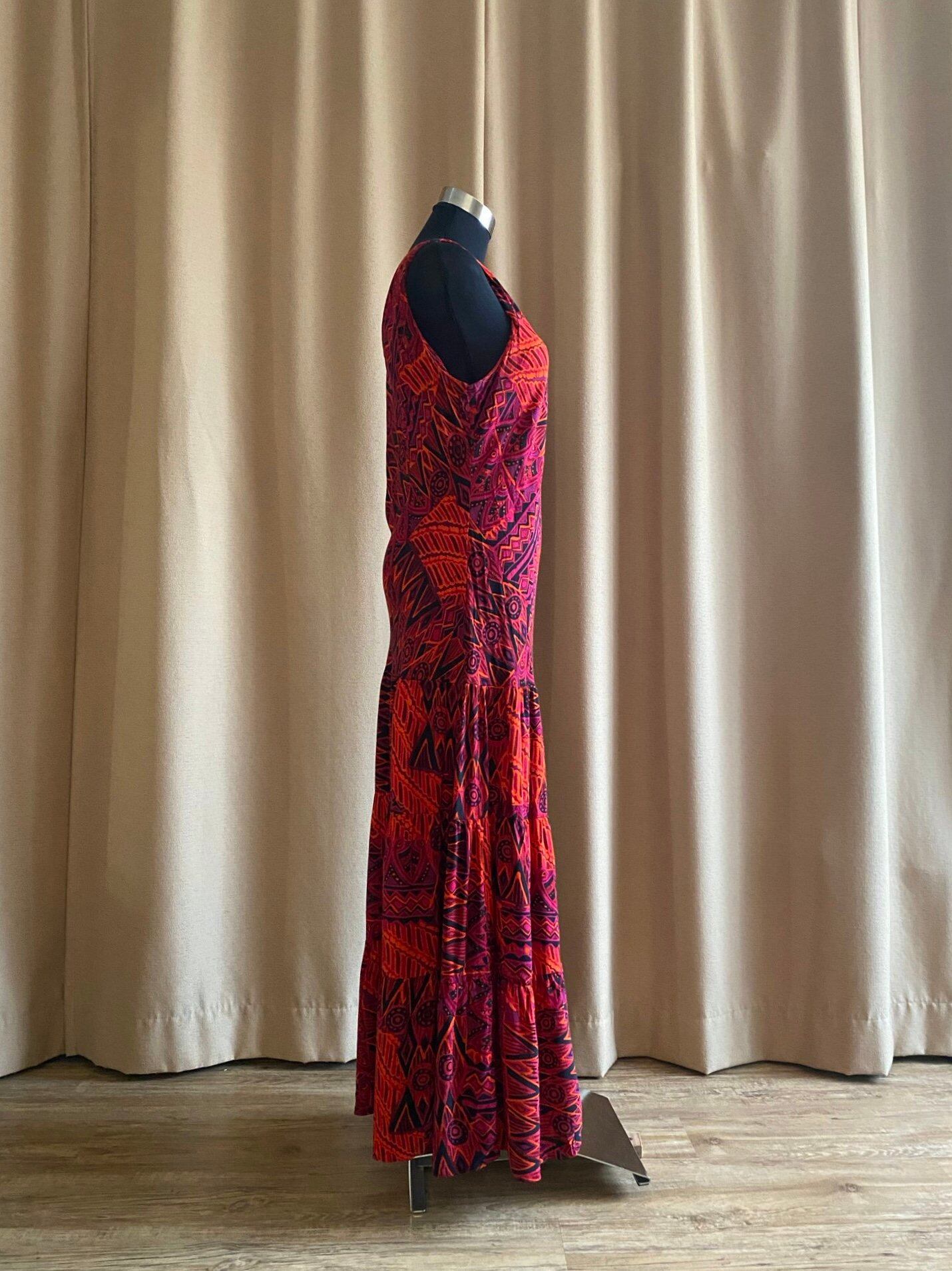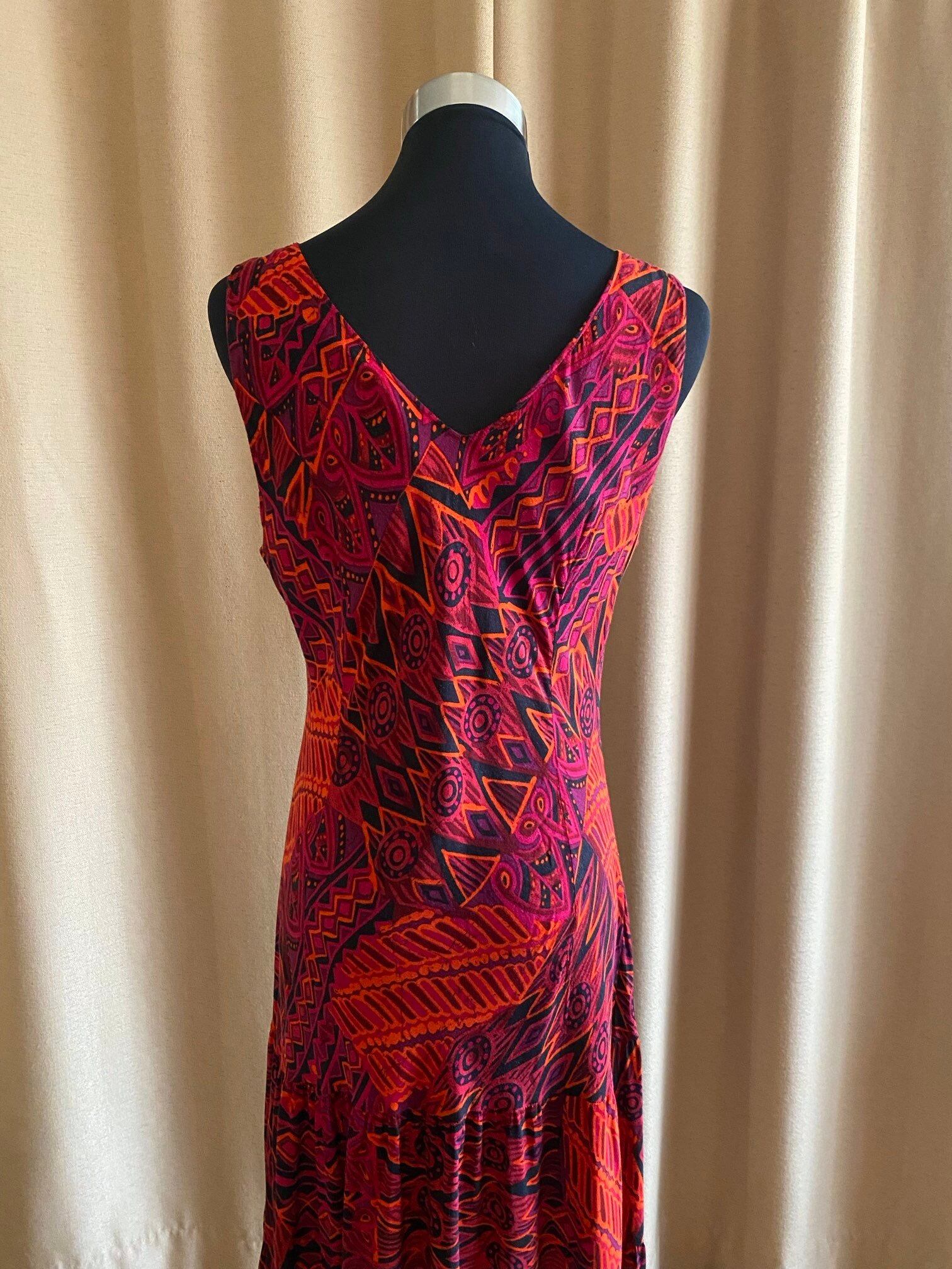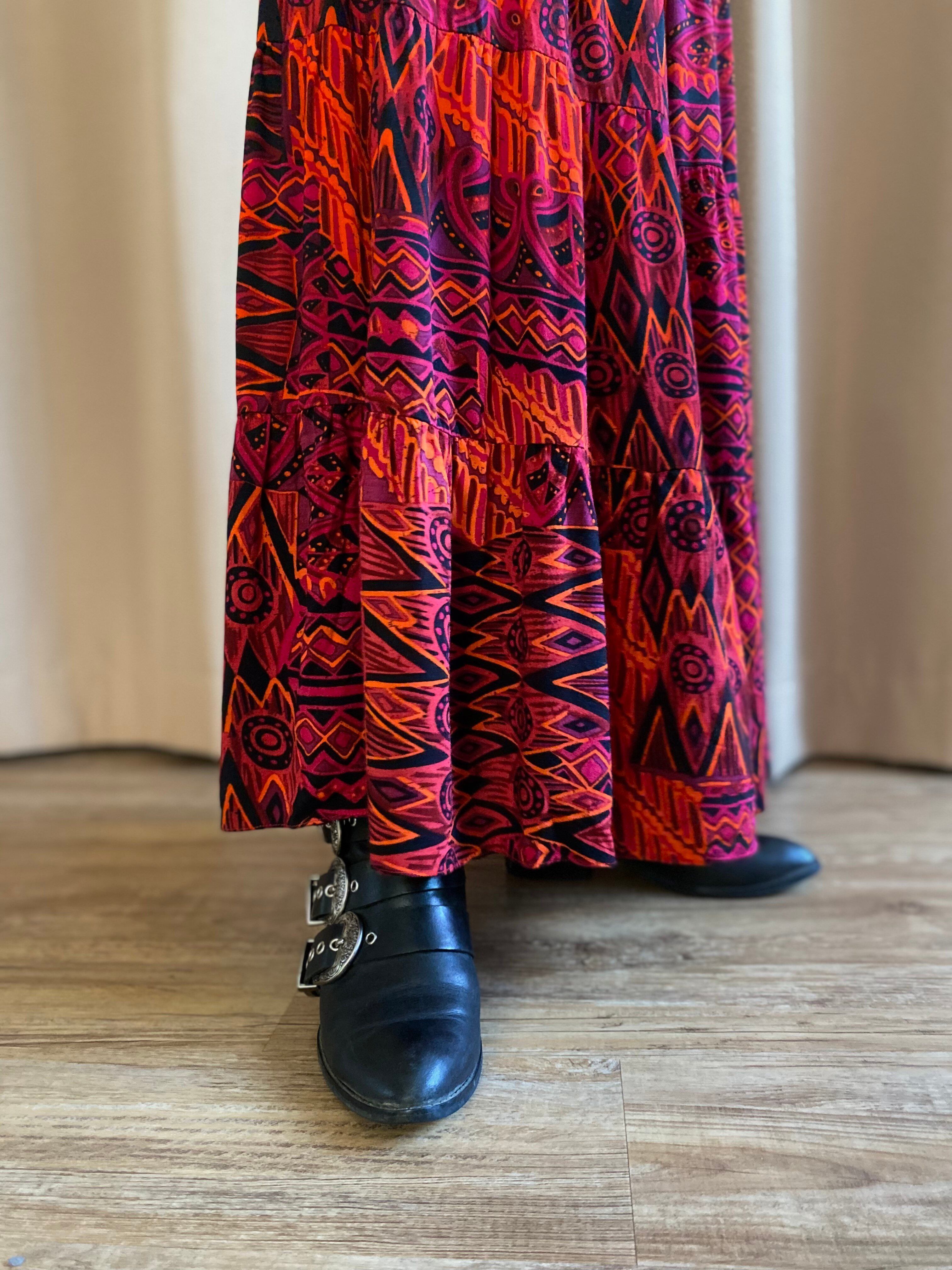 ビビッドな暖色カラーにエスニック柄がヴィンテージムード漂うインポートワンピース。