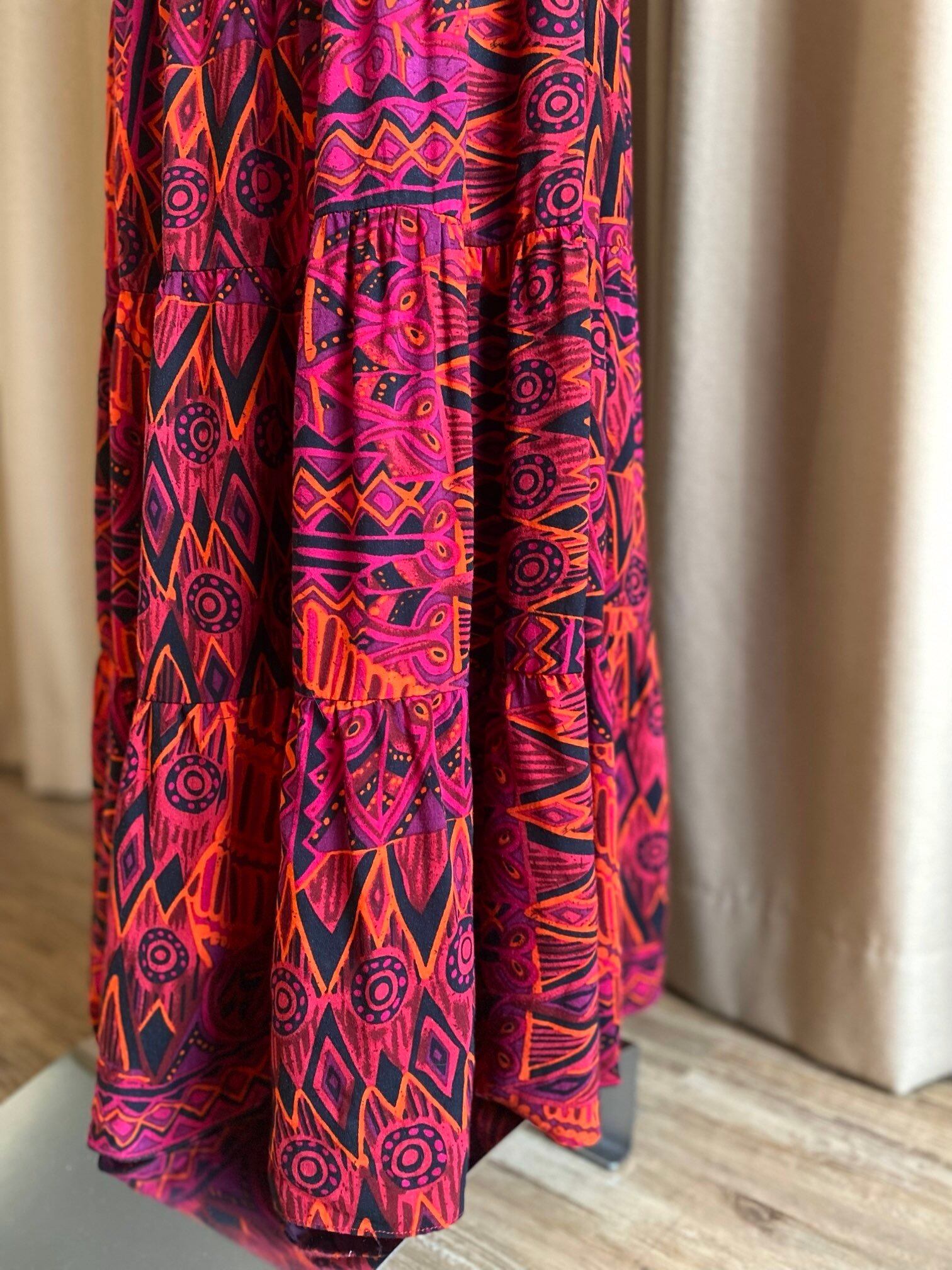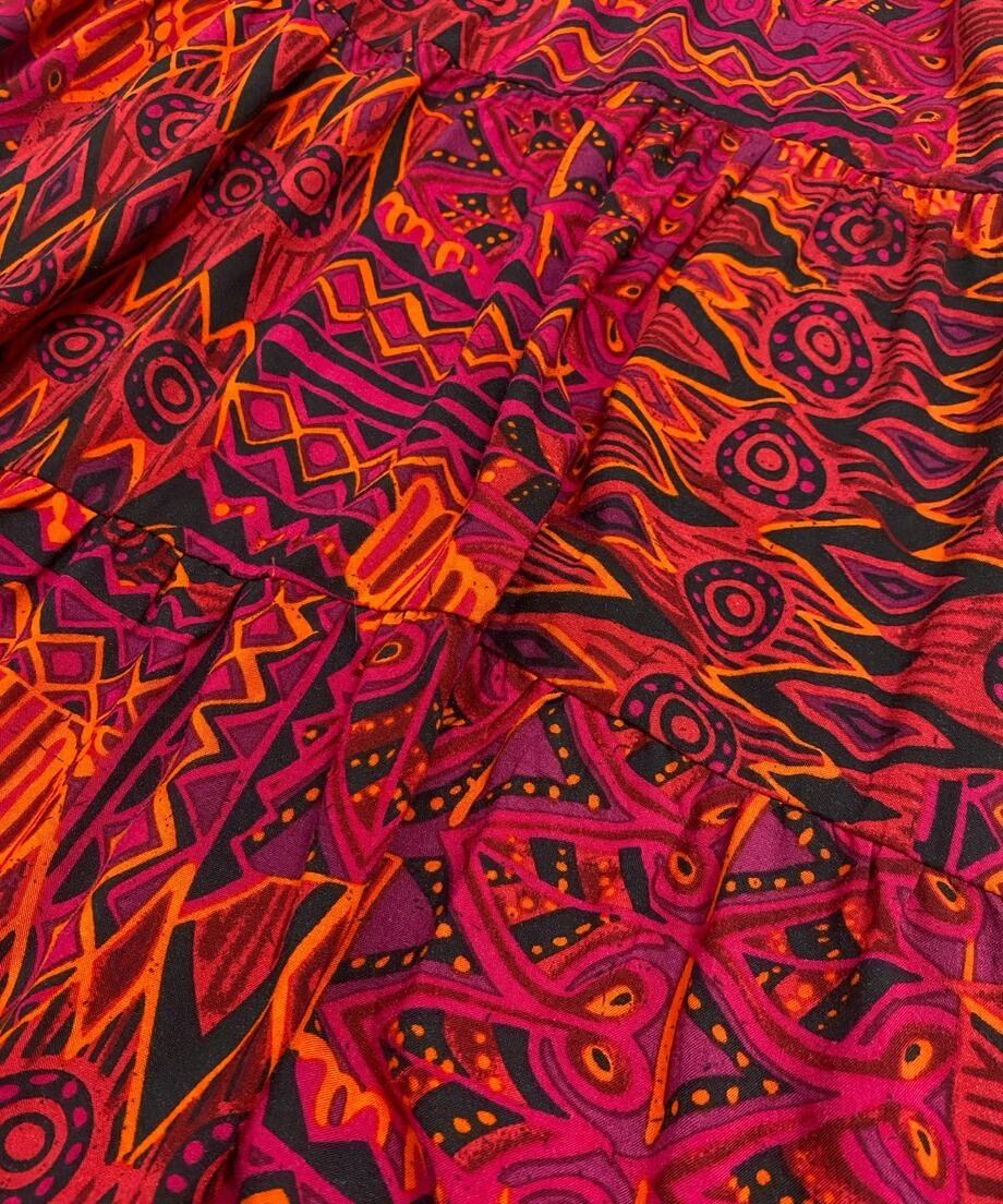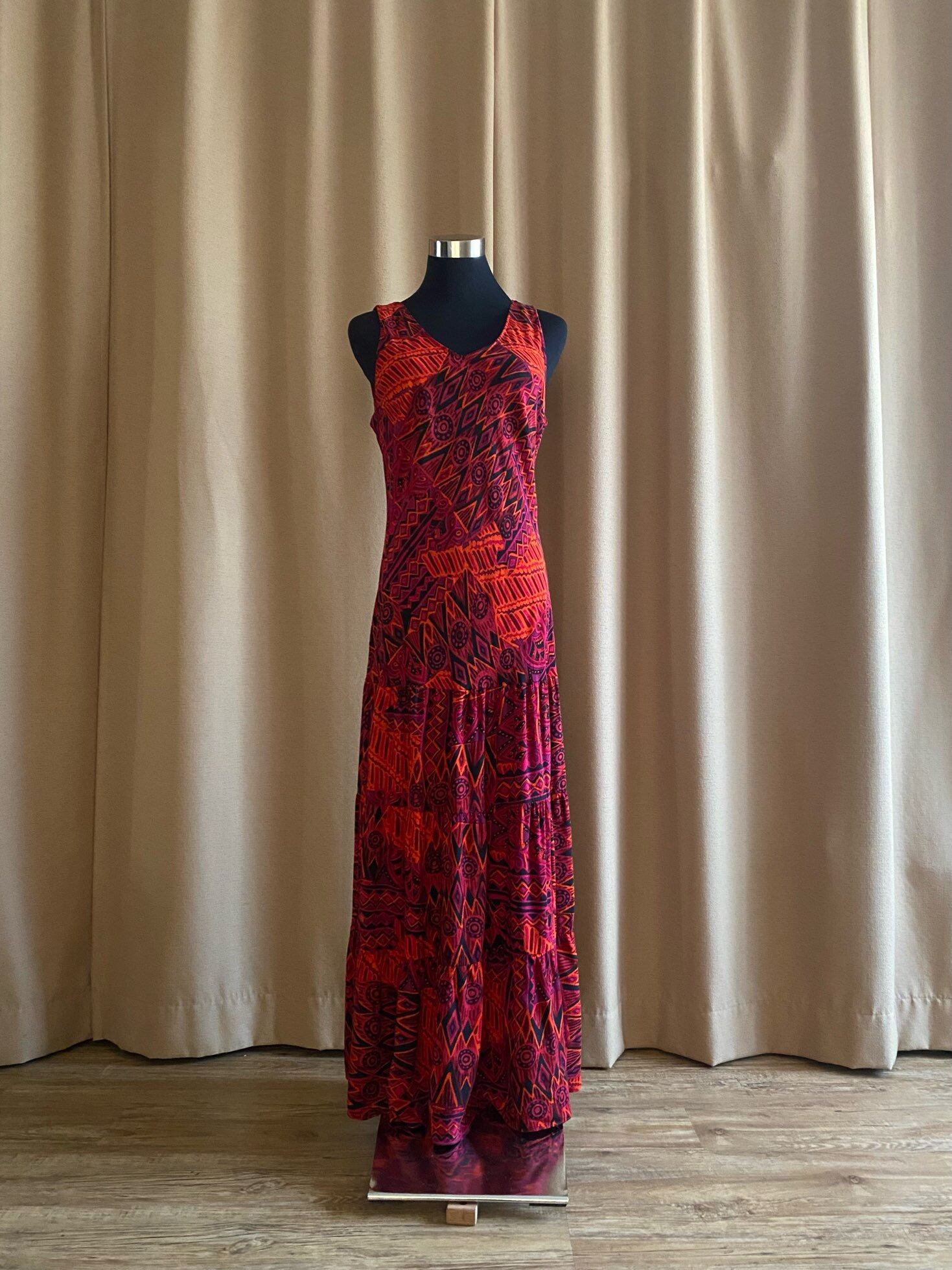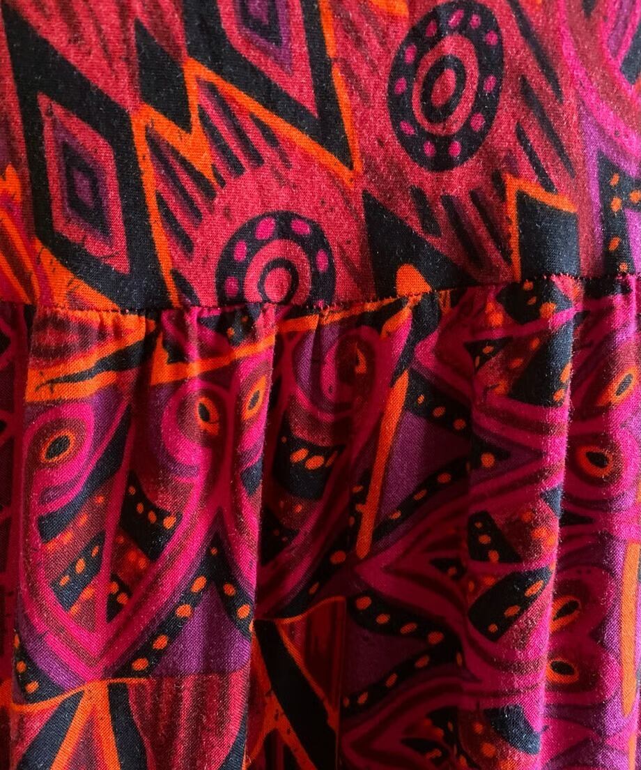 ビビッドな暖色カラーにエスニック柄がヴィンテージムード漂うインポートワンピース。