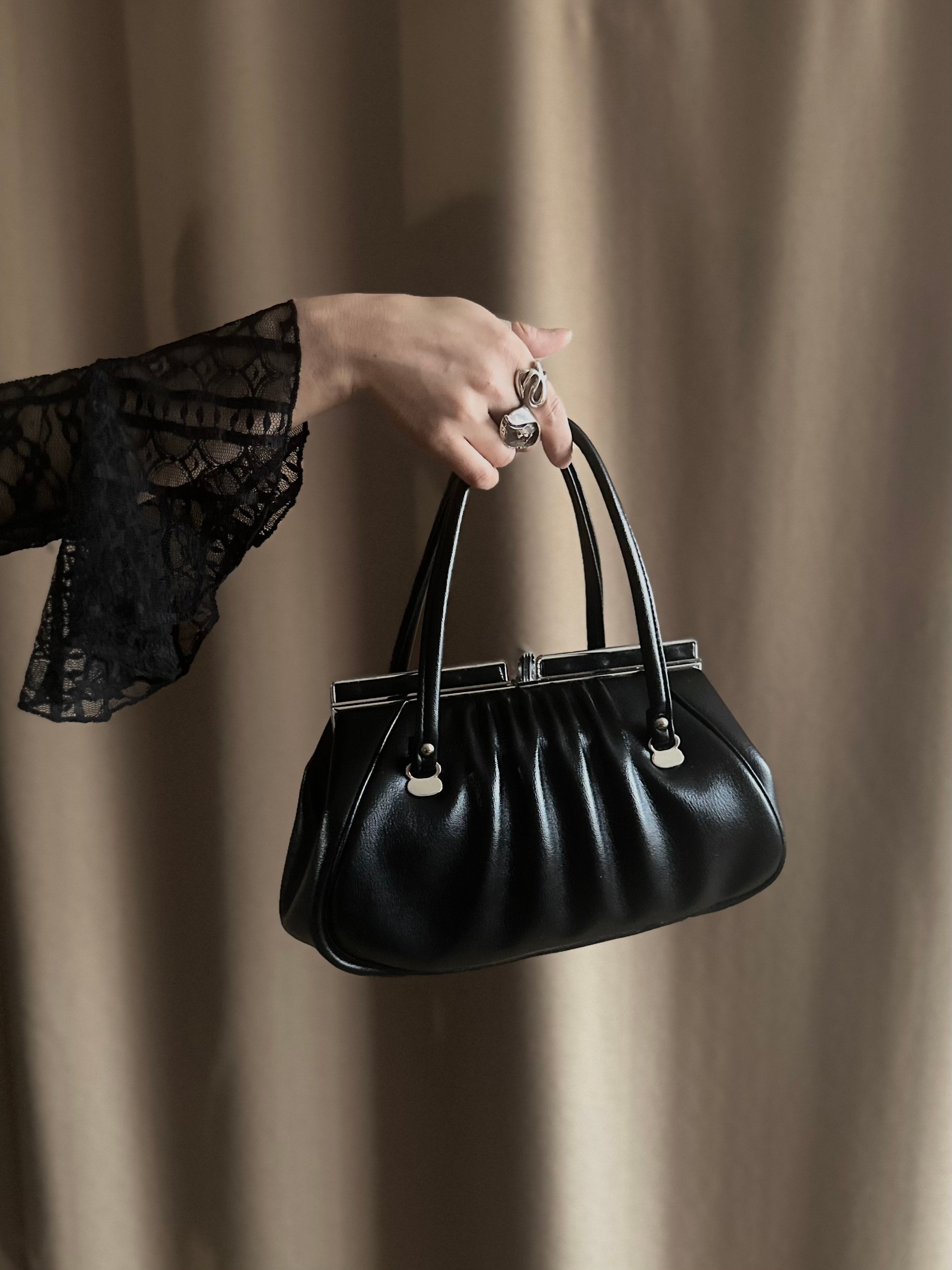 black leather hand bag-4217-6