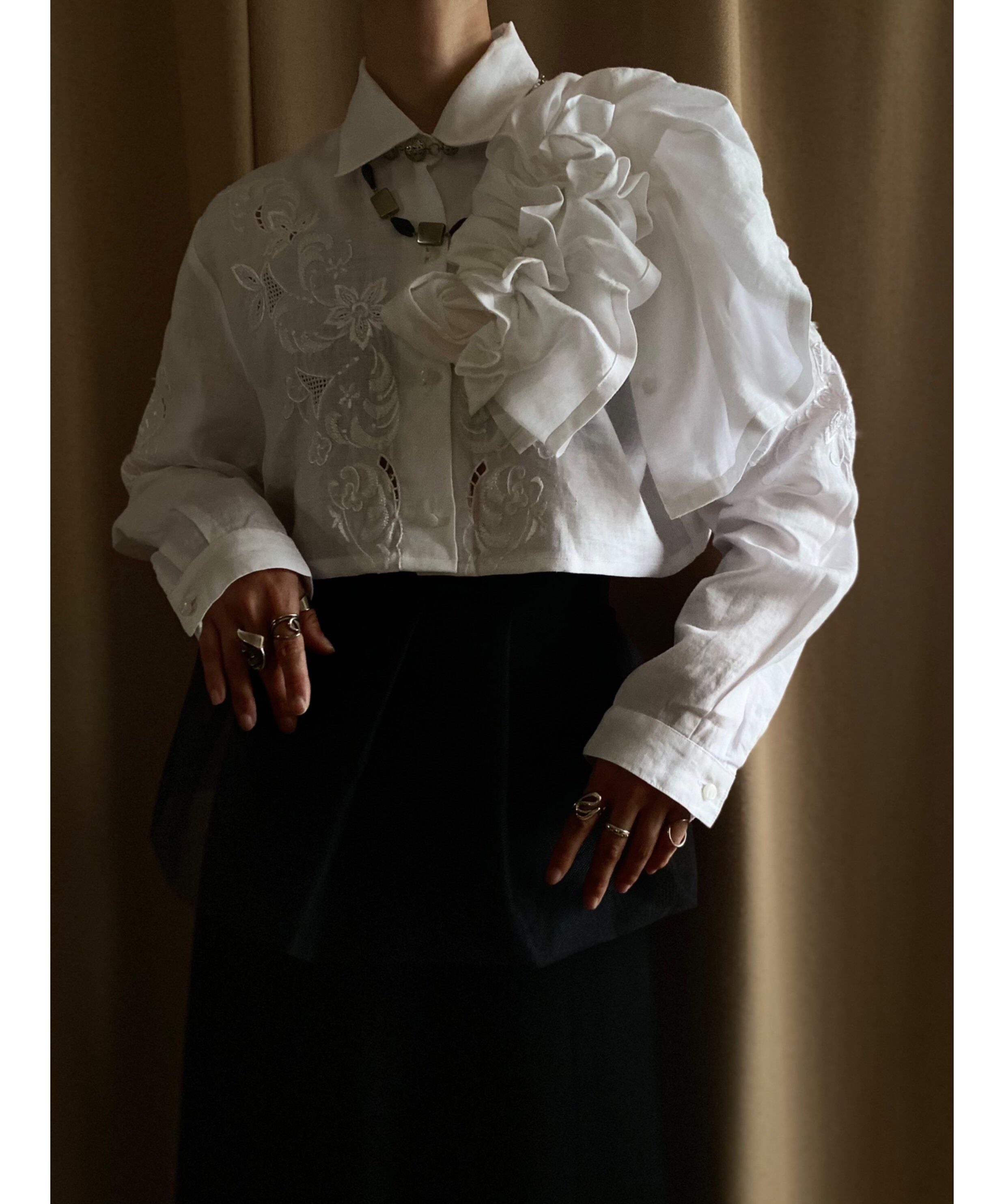 フロントと袖の繊細な刺繍柄が美しくも涼しげな印象で◎
