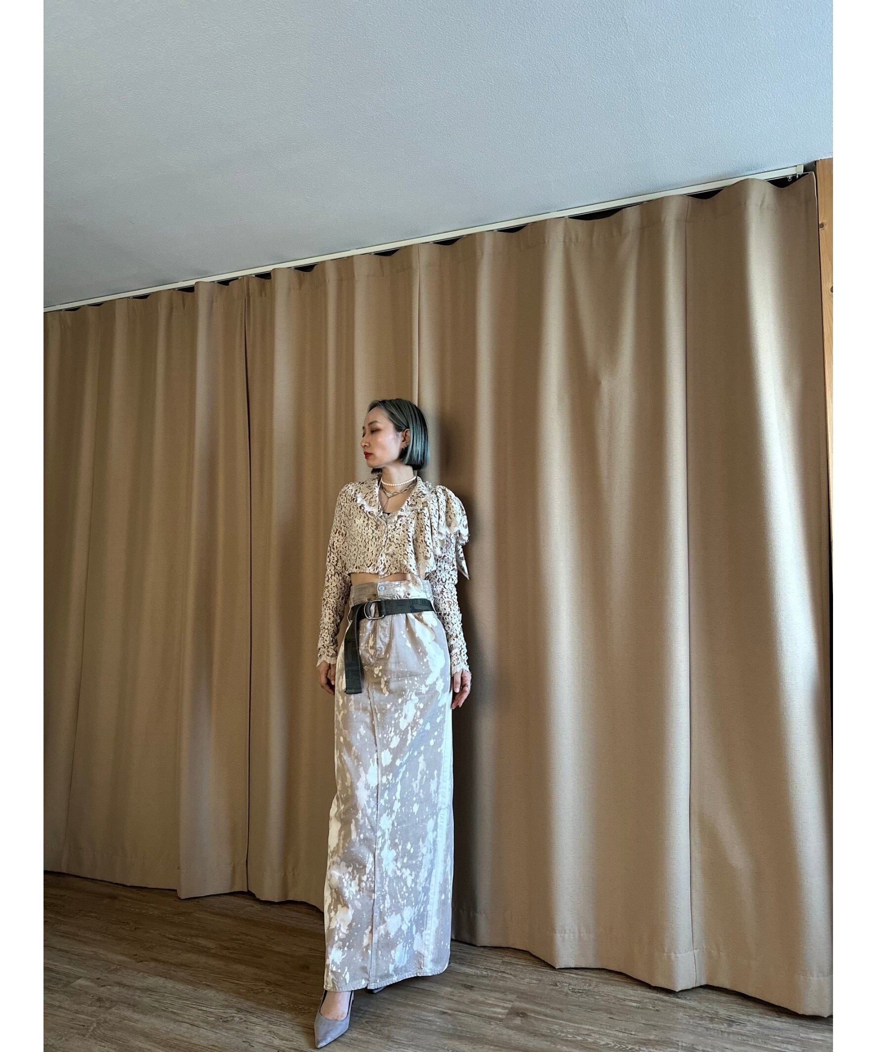レースファブリックならではのセンシュアルな透け感にヌーディーなーベージュカラーが大人の雰囲気を醸し出す一着に。