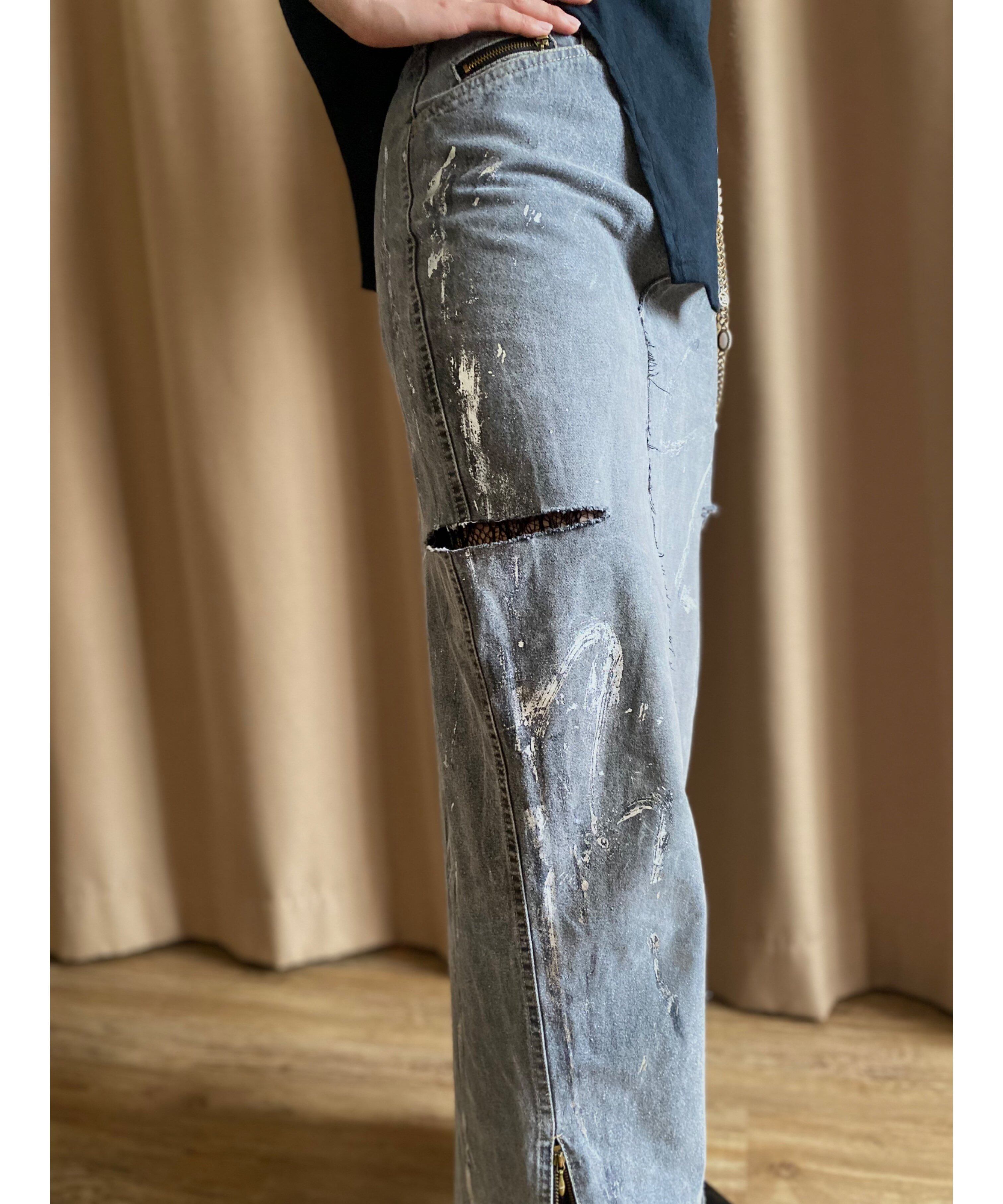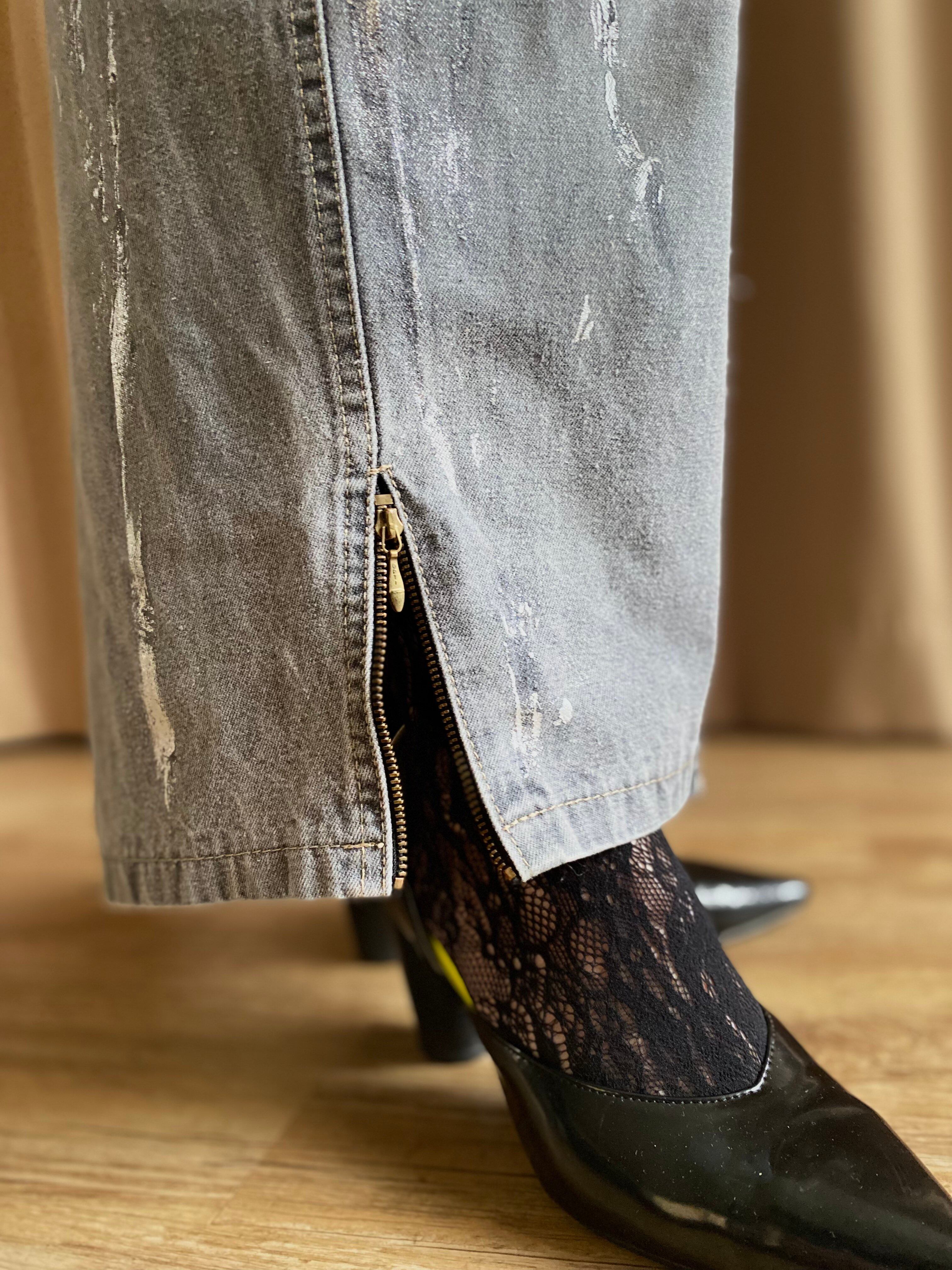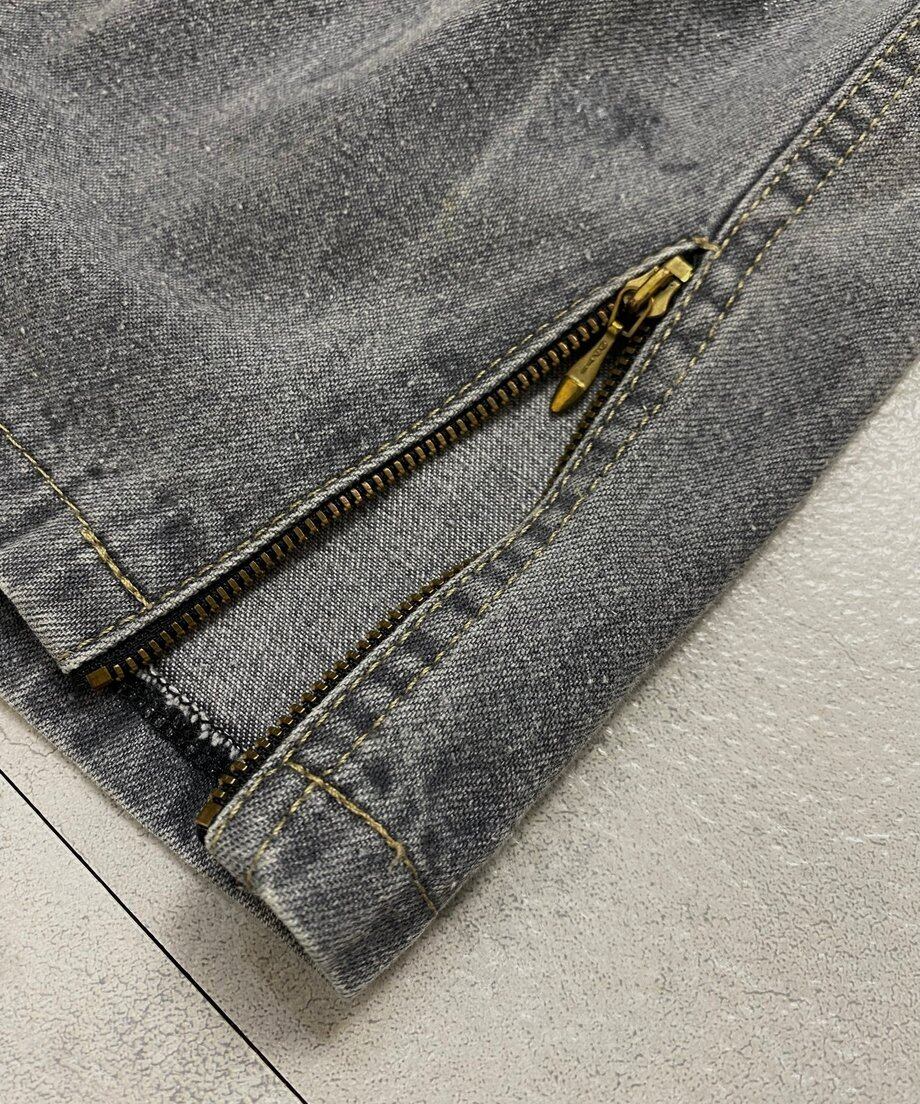 こなれ感抜群なダメージカッティングに、裾ファスナーのデザインポイントがトレンドライクな印象◎