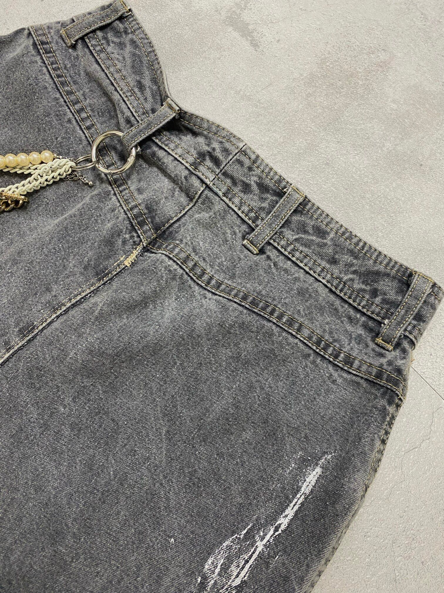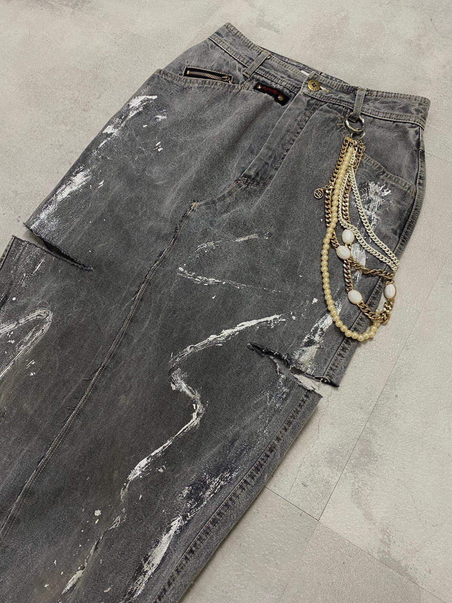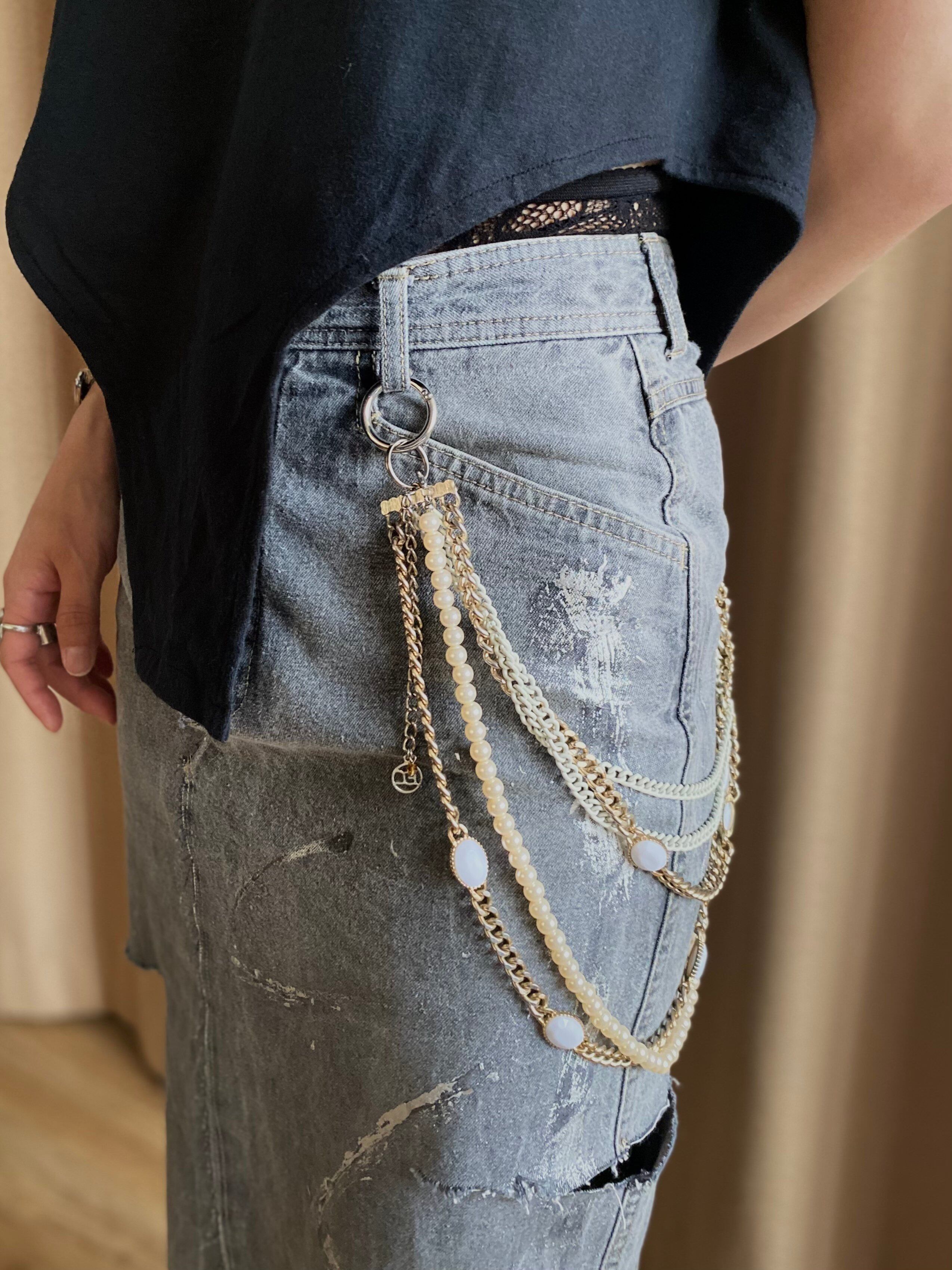 こなれ感抜群なダメージカッティングに、裾ファスナーのデザインポイントがトレンドライクな印象◎