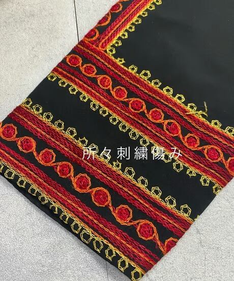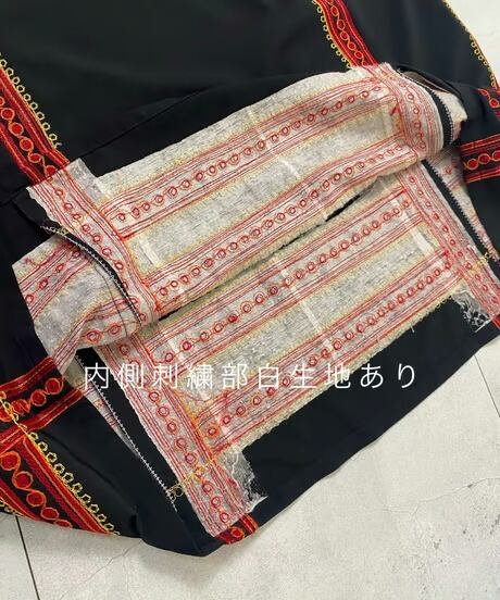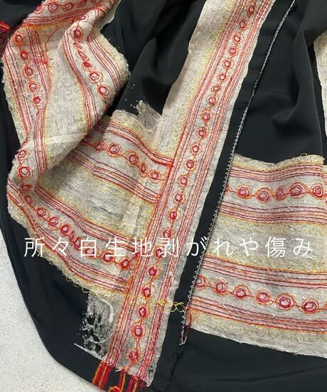 【B】所々テカリ線あり、所々刺繍毛羽立ちや傷みあり、内側縫製・処理が甘いです、内側白生地剥がれや傷みあり