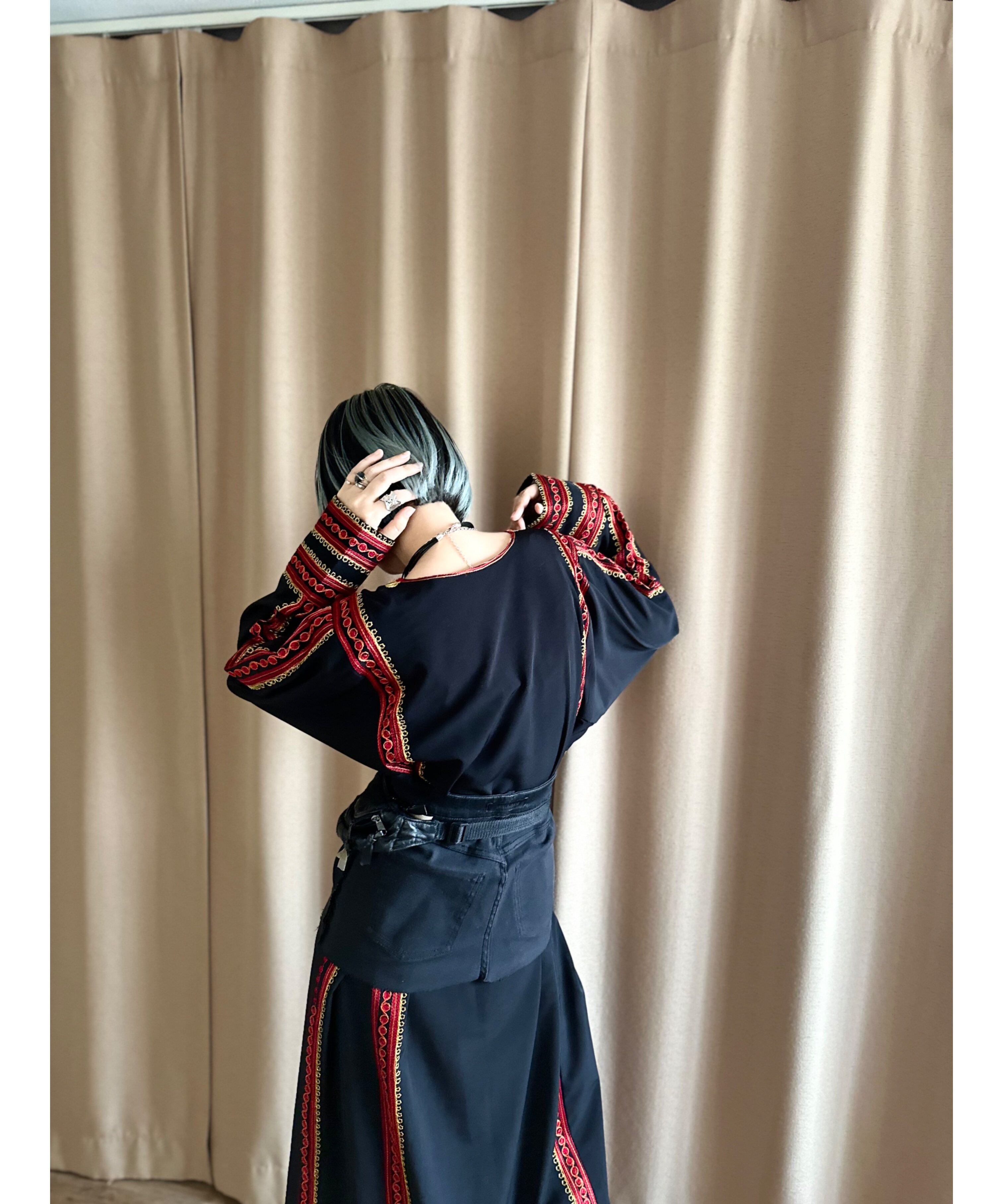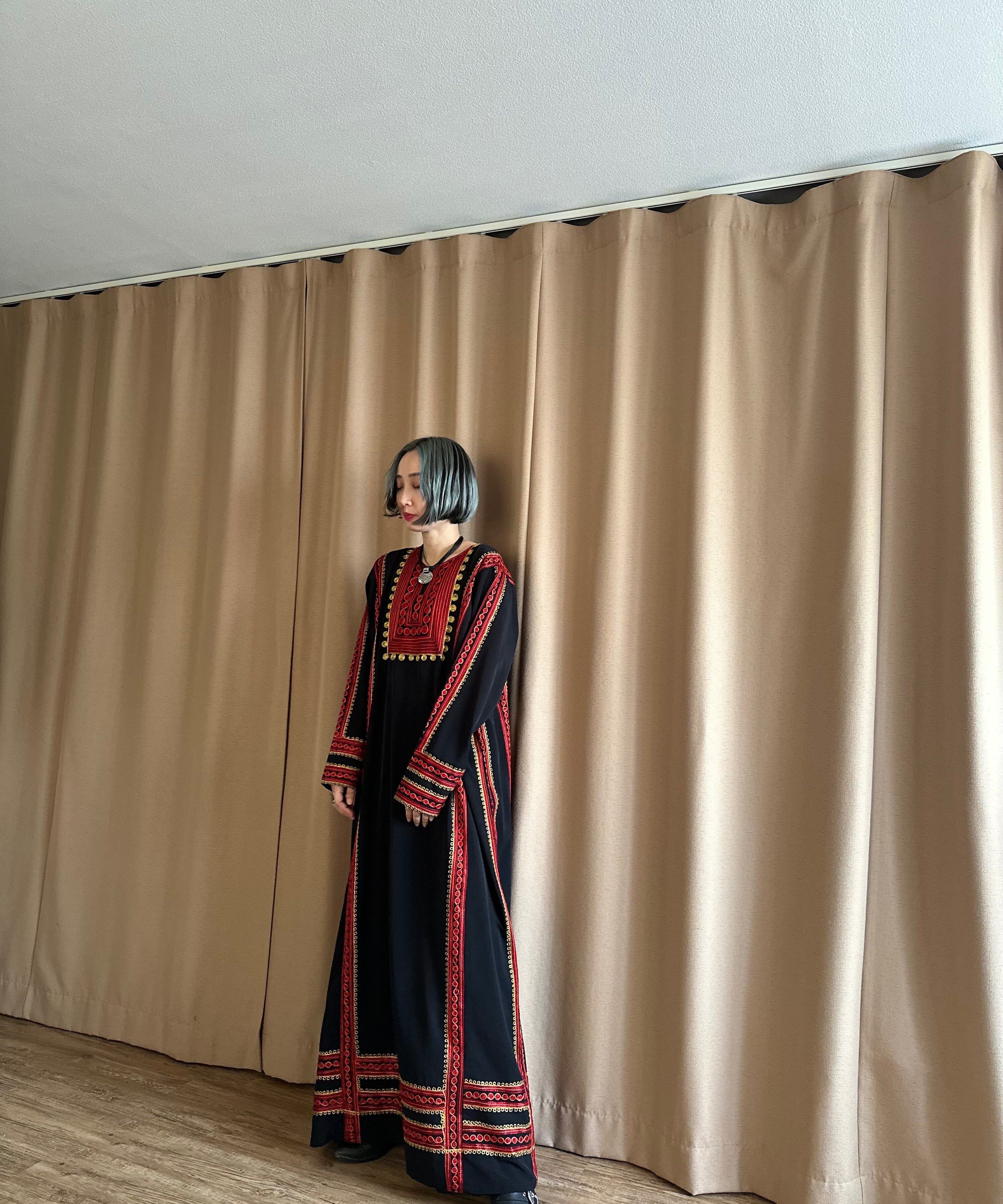 贅沢に施された刺繍デザインがエキゾチックに目を惹きつけるロングワンピース。
