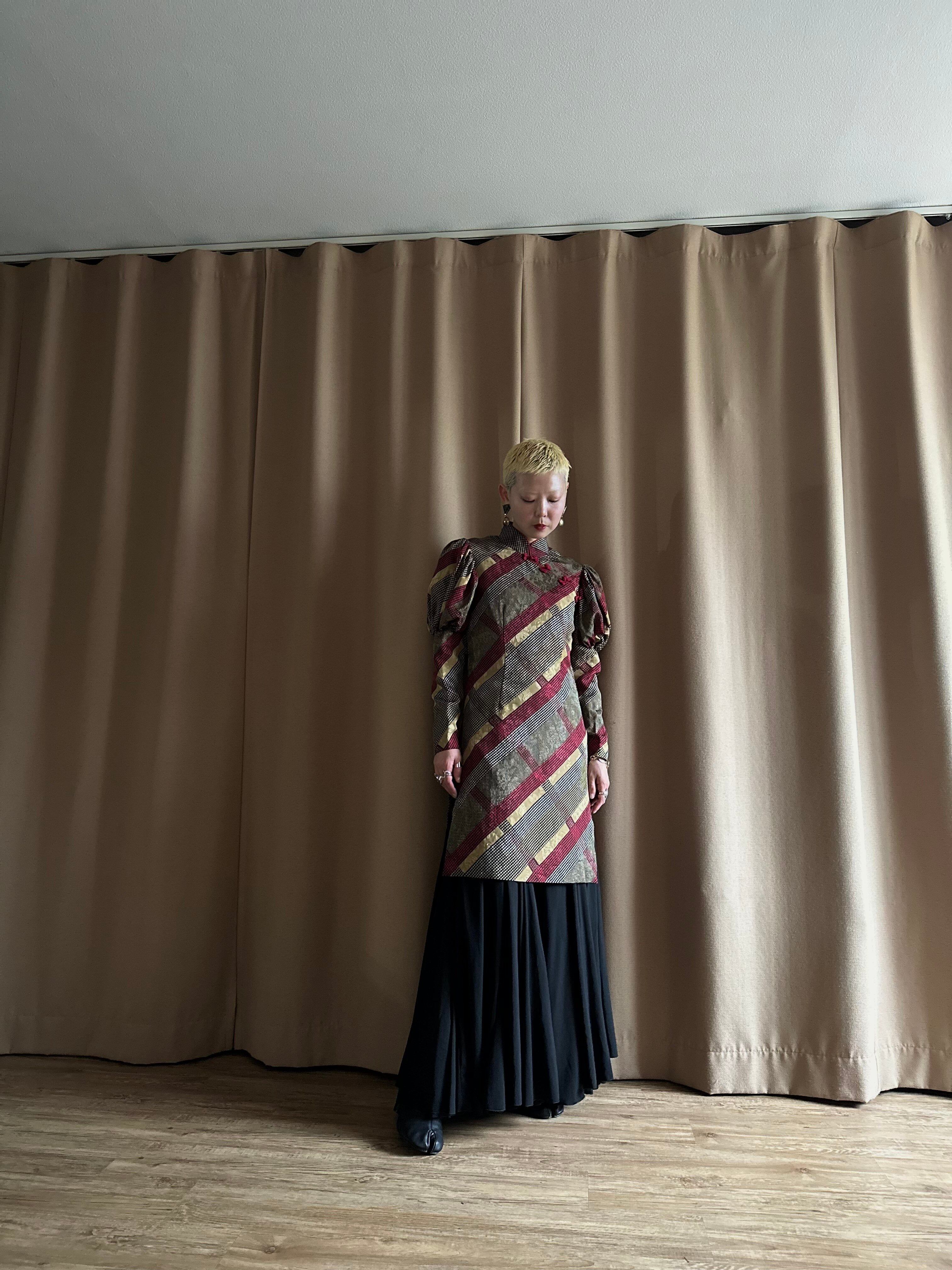 異国情緒溢れるチャイナデザインにレトロモードな柄が存在感を放つ一着。