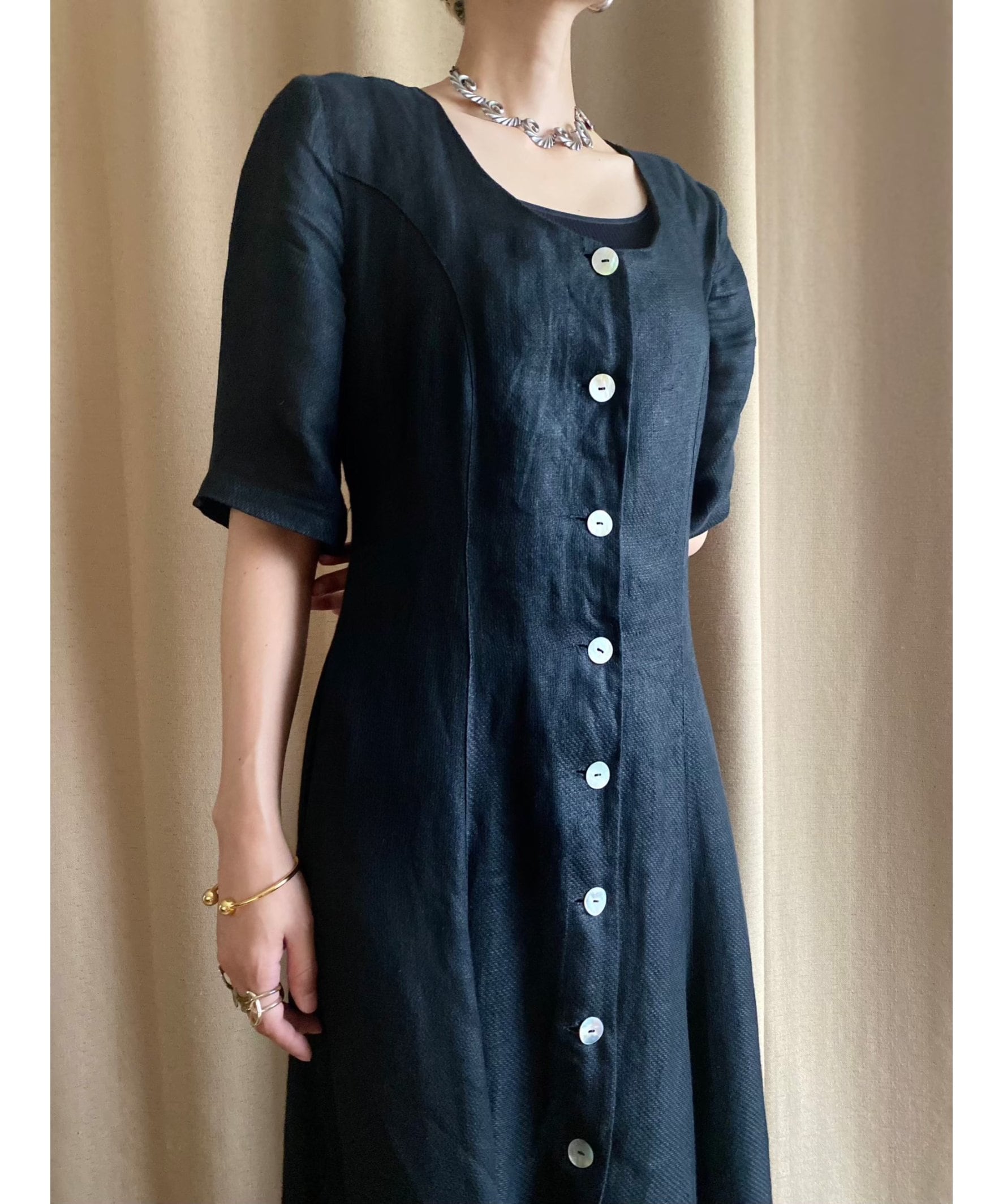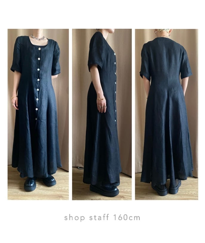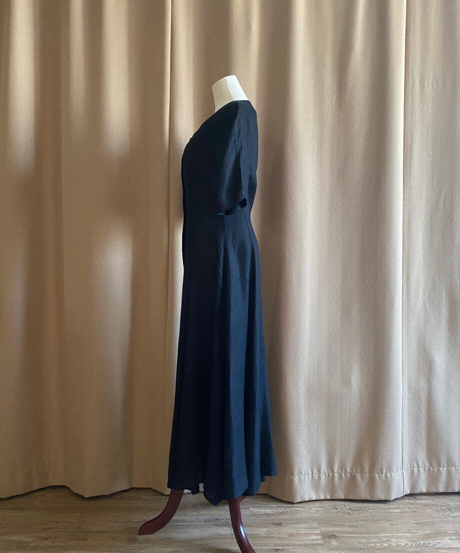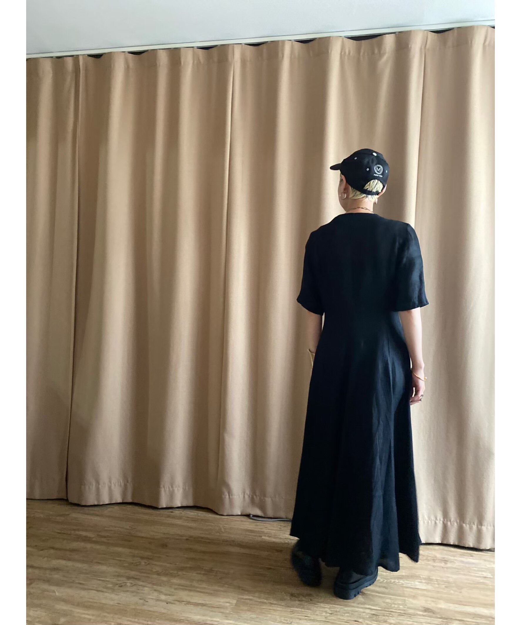 リネンファブリックならではのナチュラルな風合いでブラックでも重たくなりすぎず柔らかな印象に◎