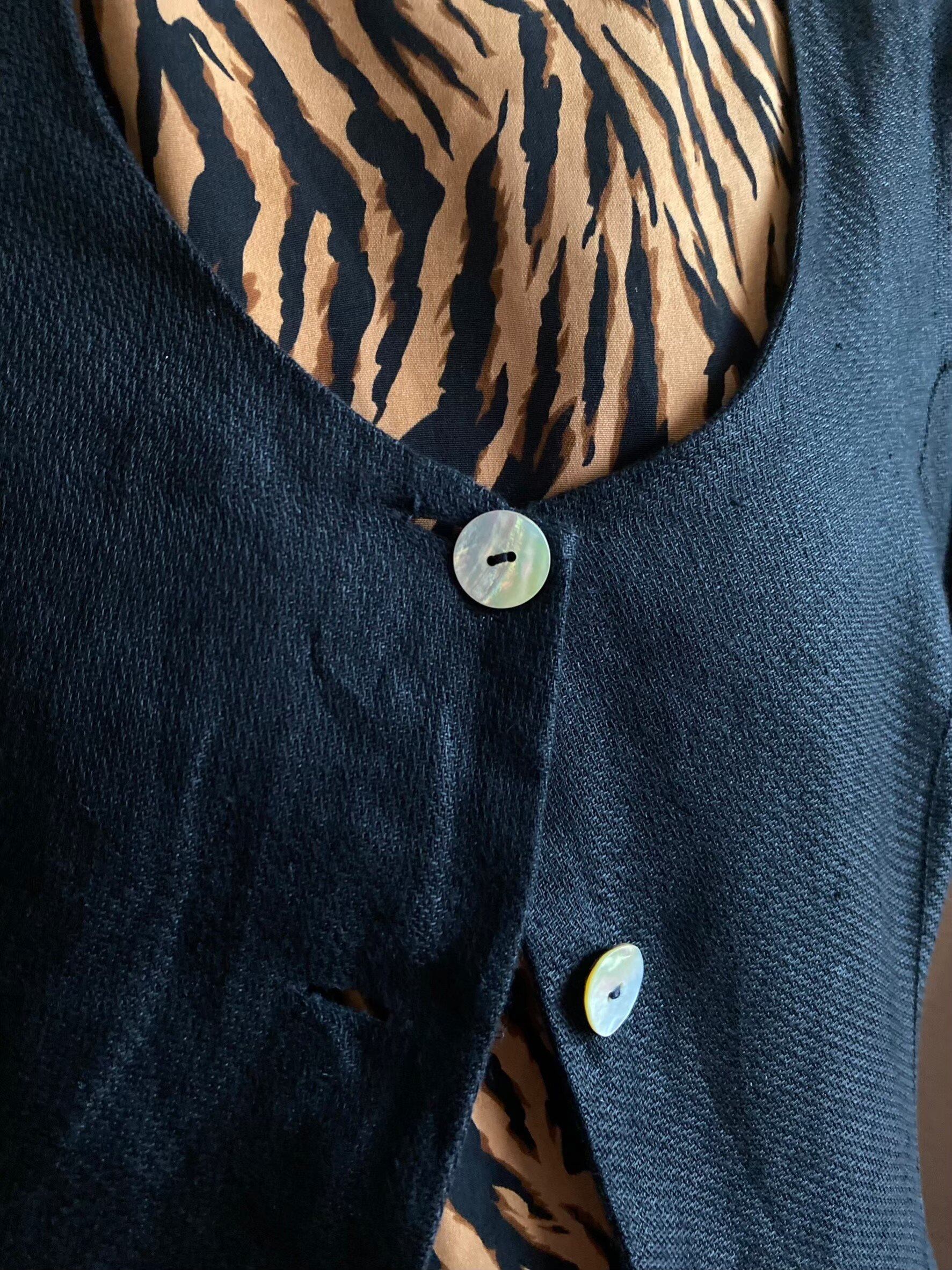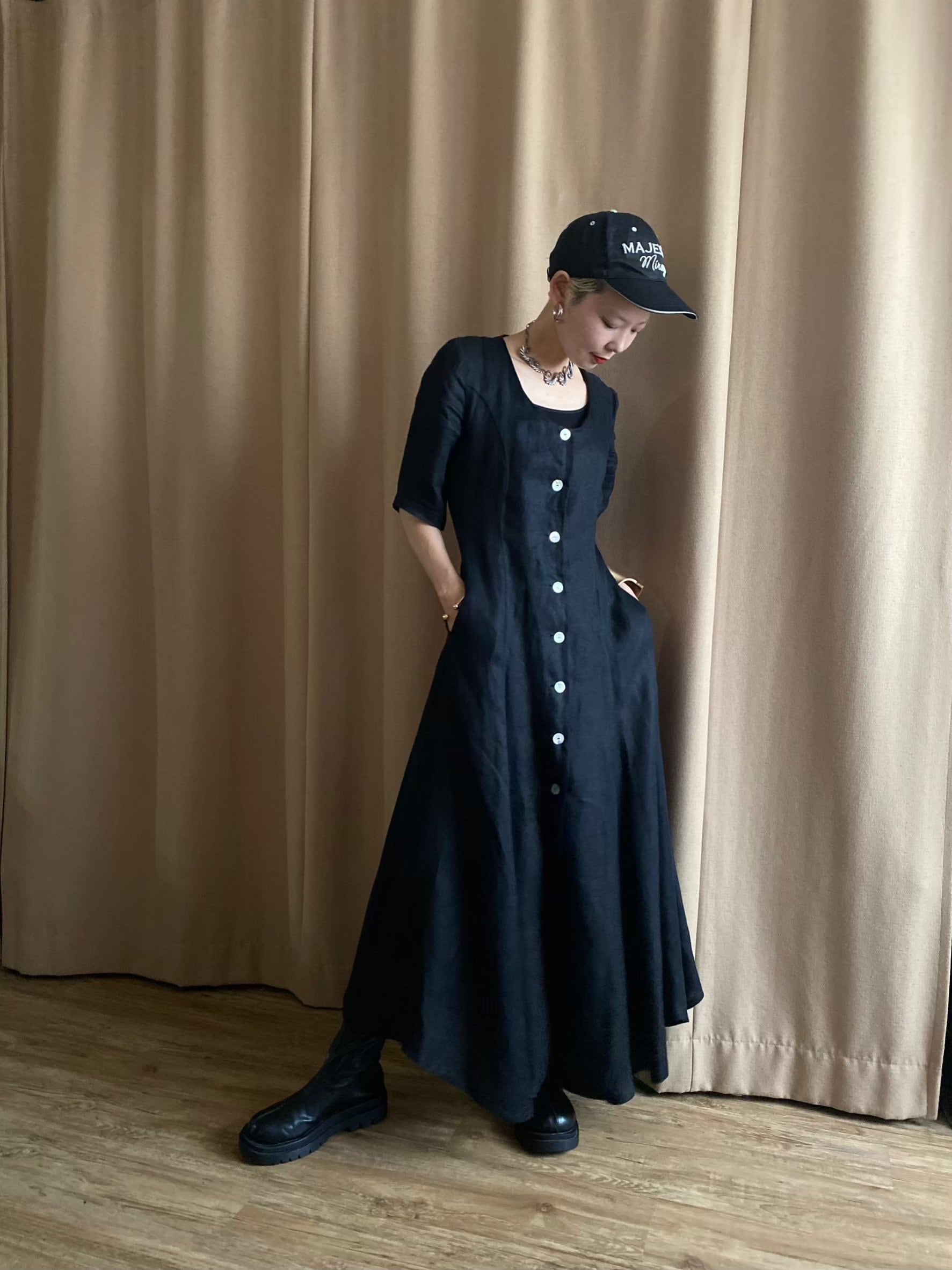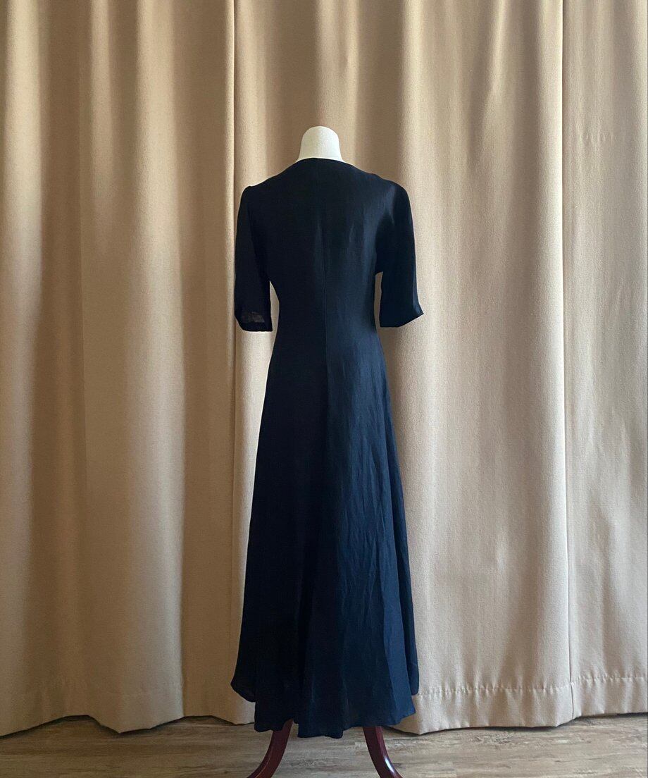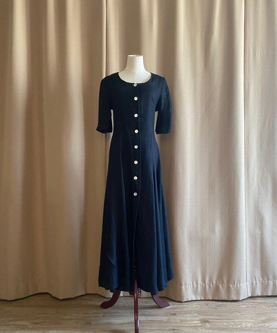 リネンファブリックならではのナチュラルな風合いでブラックでも重たくなりすぎず柔らかな印象に◎