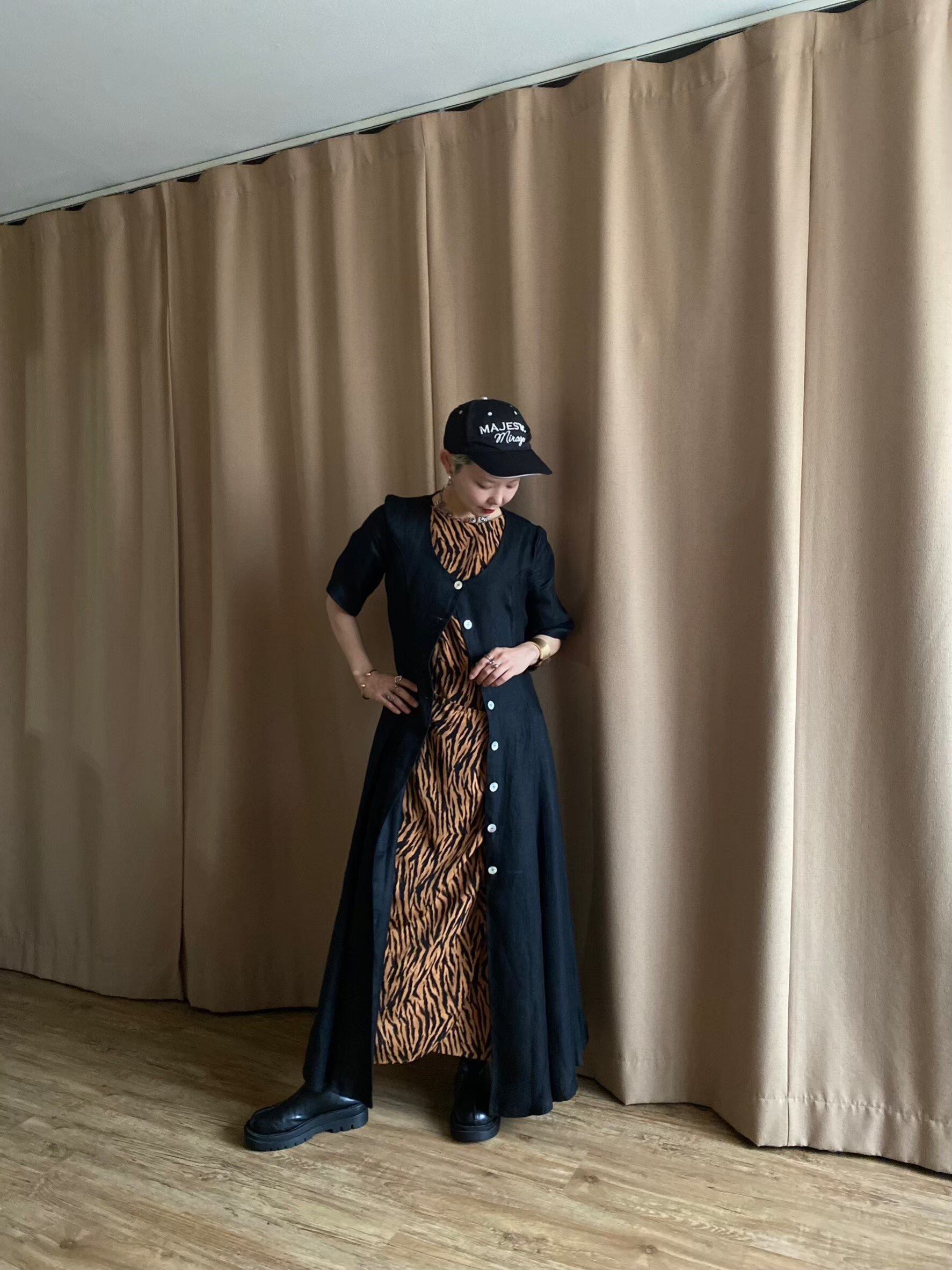 単体使いは勿論、着用画像のようにワンピース同士を組み合わせレイヤードスタイルでアニマル柄をチラ見せしたスタイリングもお勧めです。