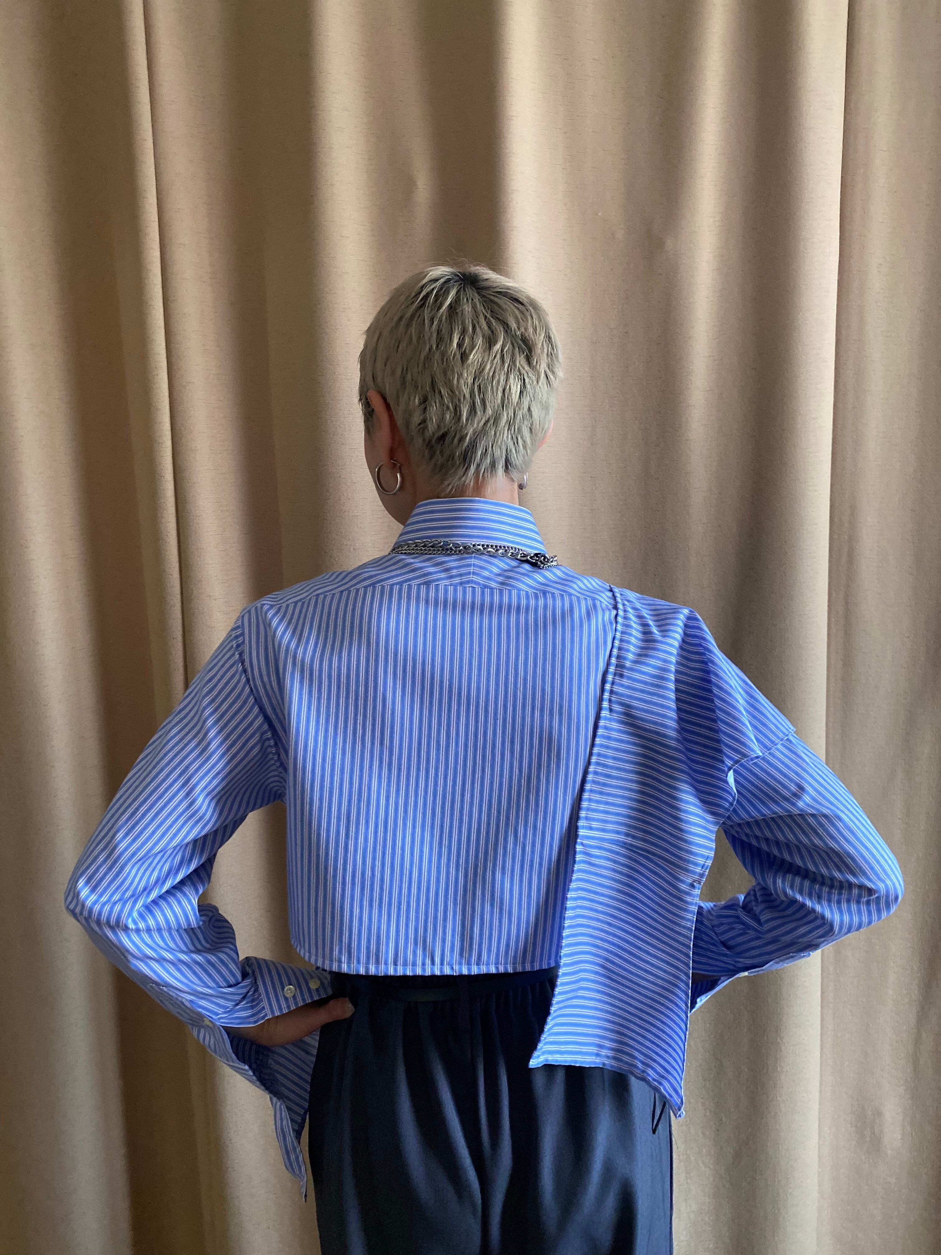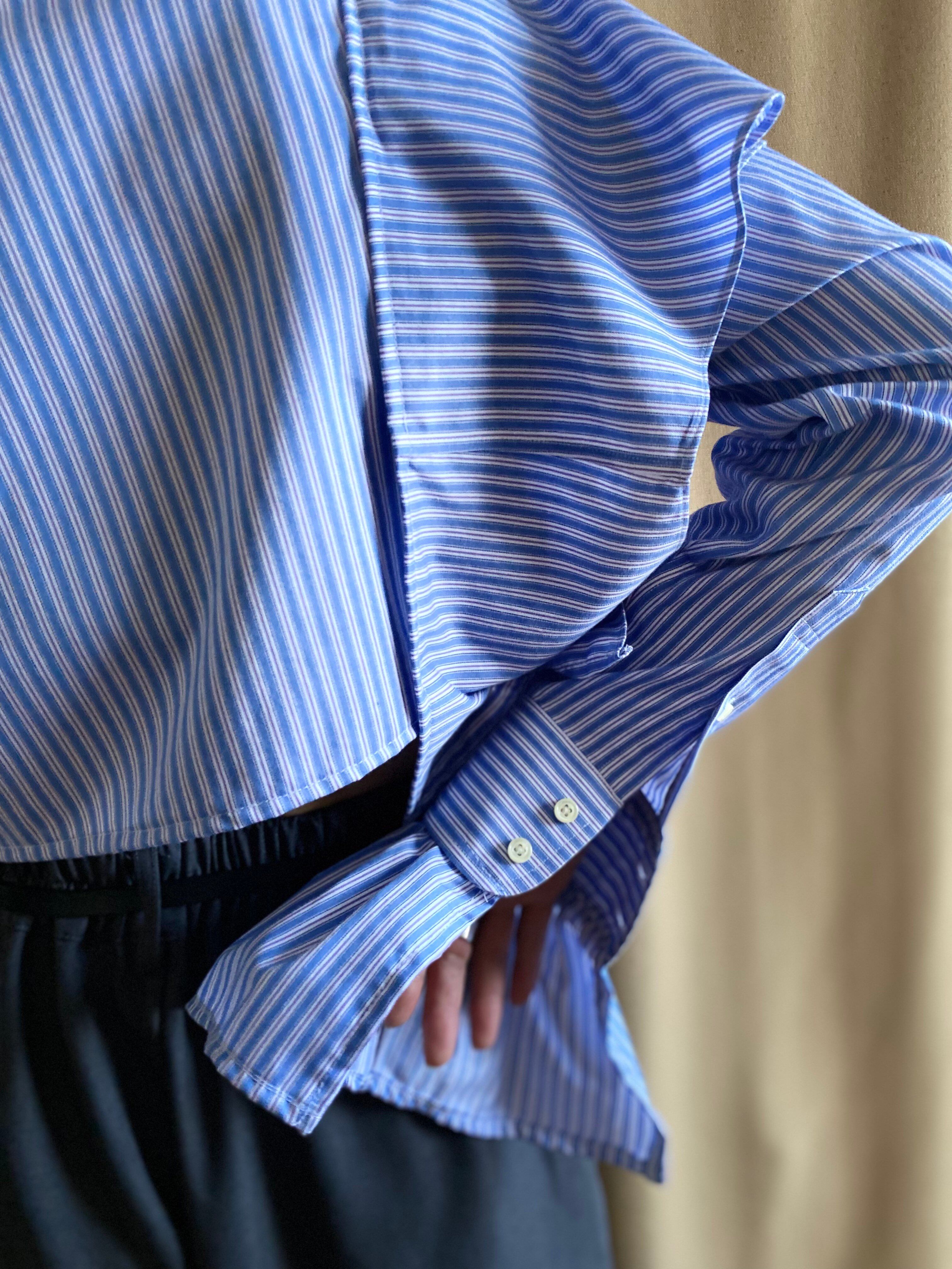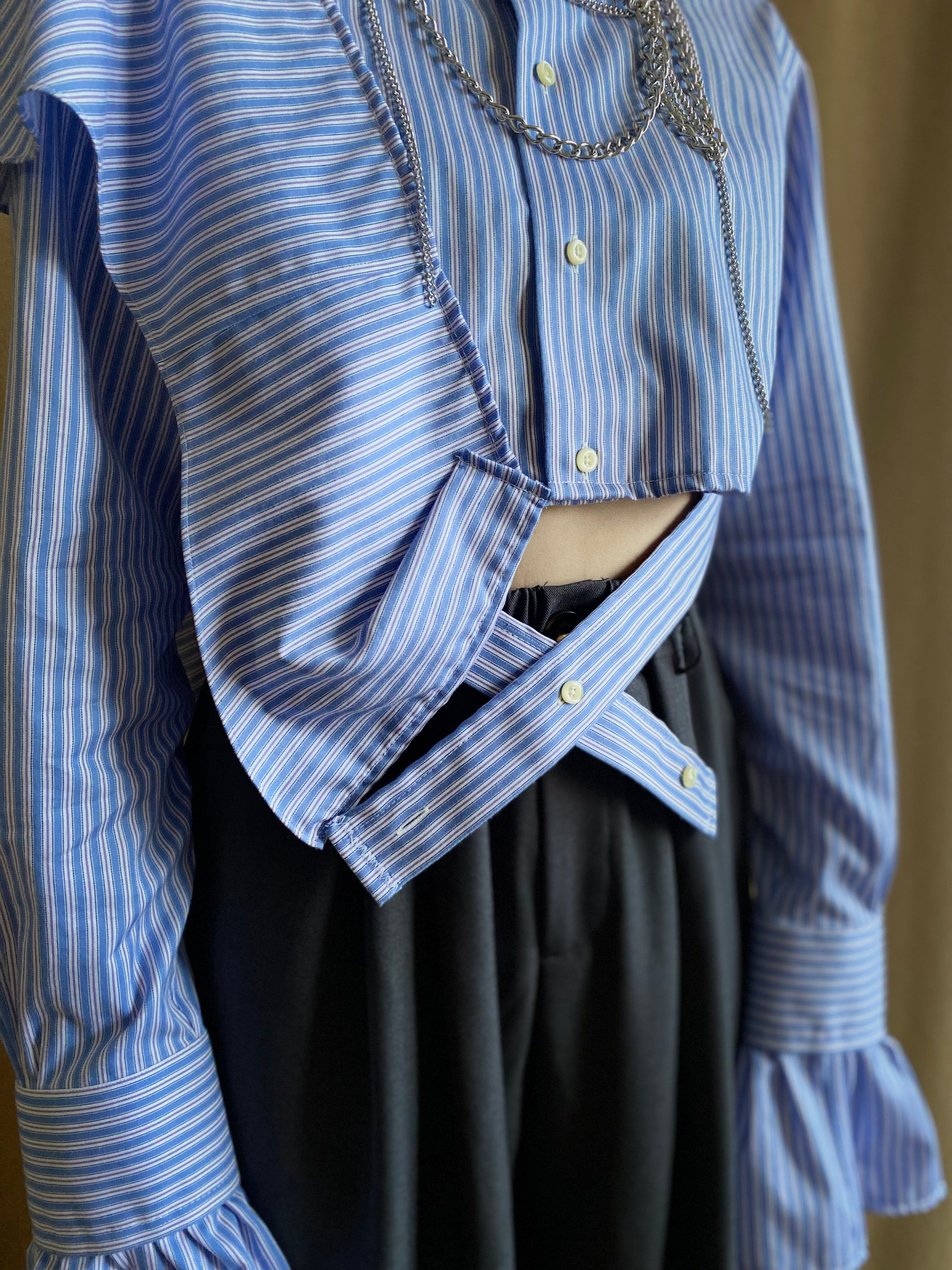 blue stripe frill remake shirt-3960-1
