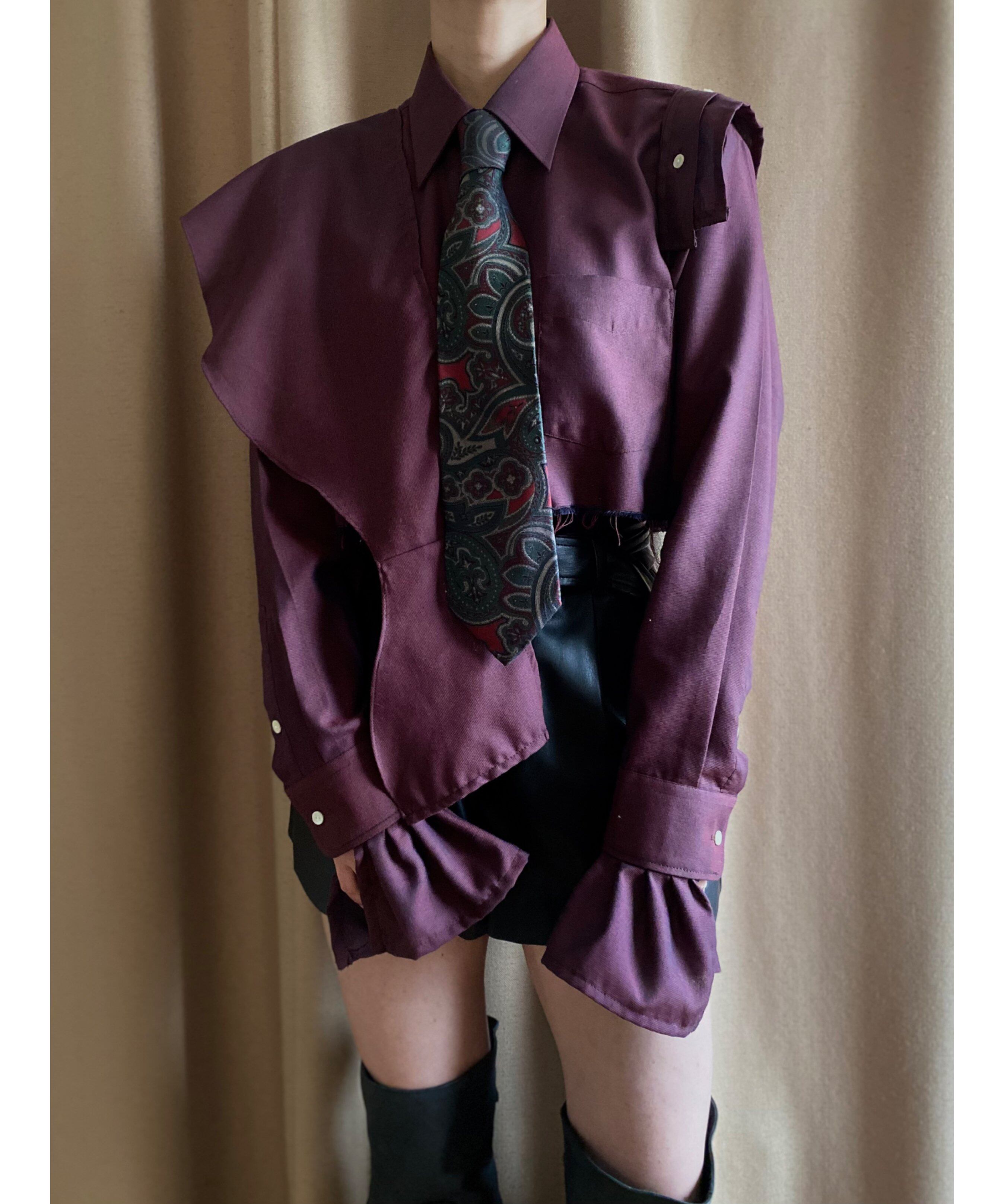 wine color frill remake shirt-3956-1