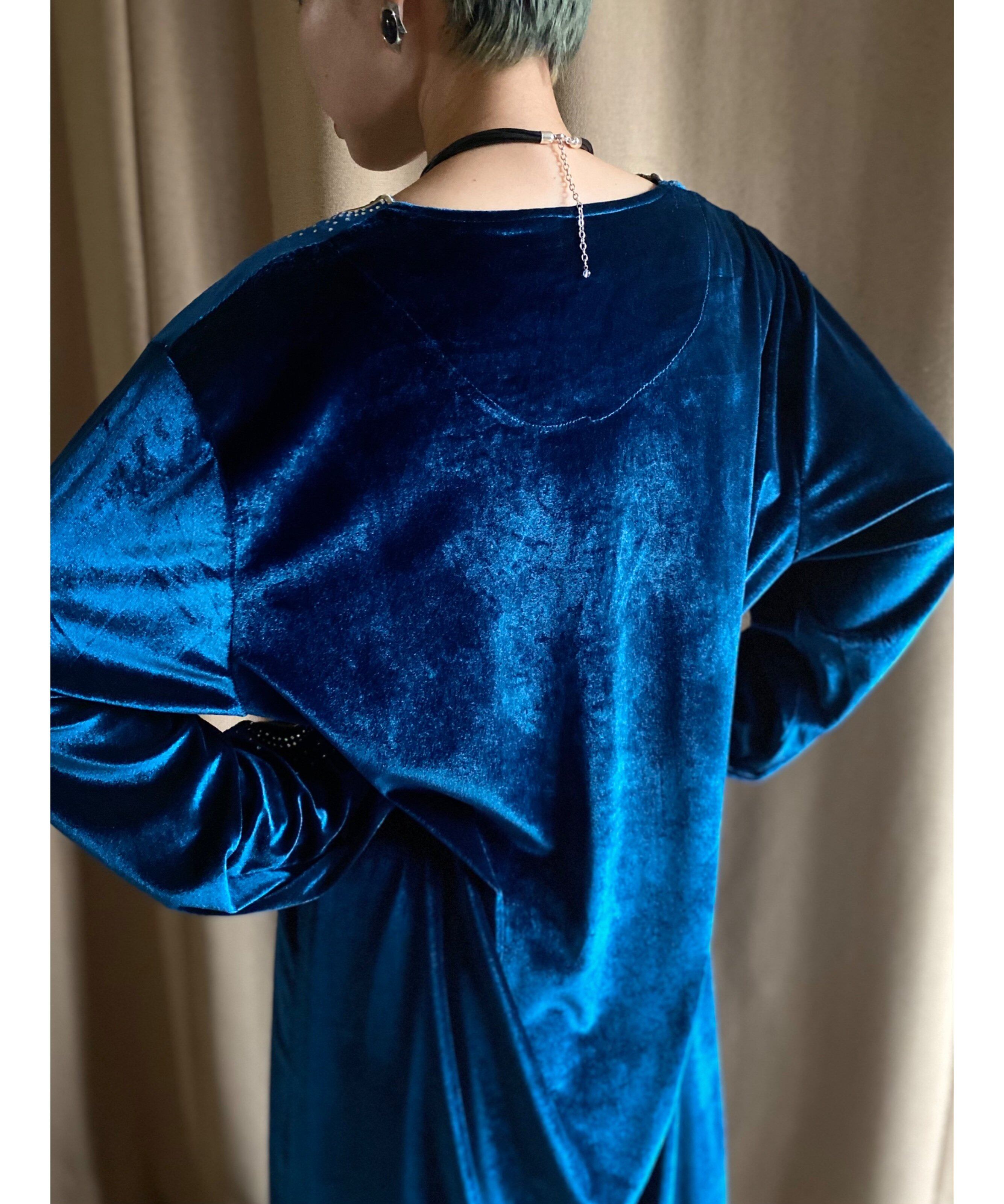 ベロアならではの上品な光沢と柔らかなテクスチャーに、伸縮性のあるストレスフリーな着心地が魅力。