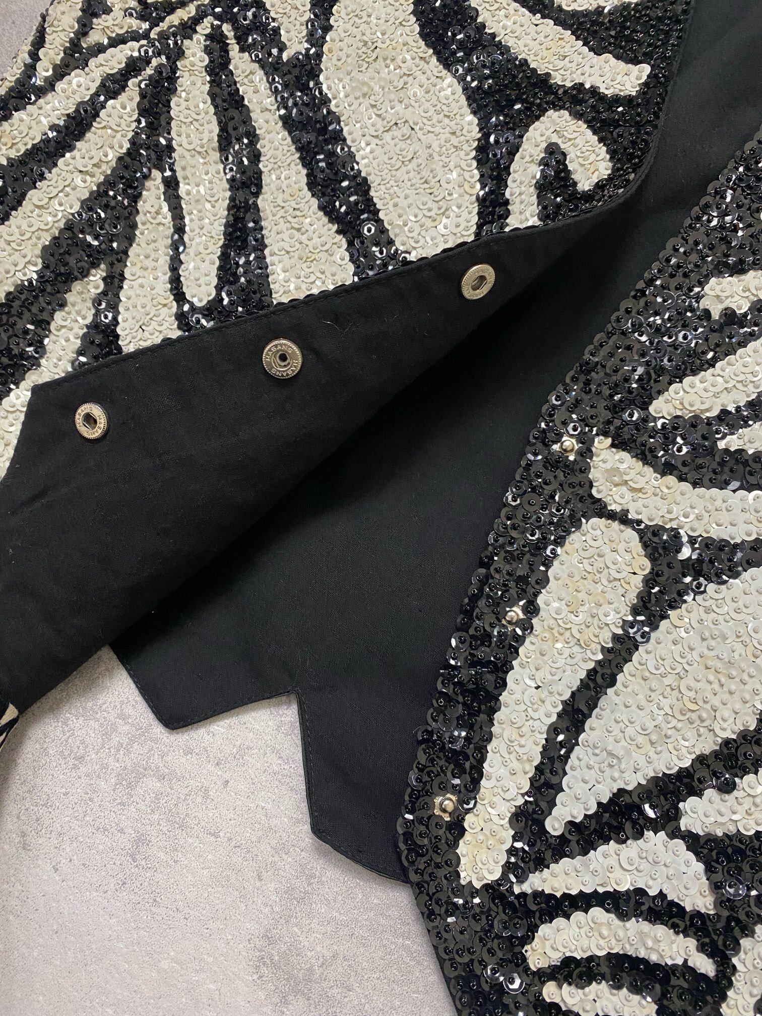 80-90s szebra pattern sequin beads vest-3788-12