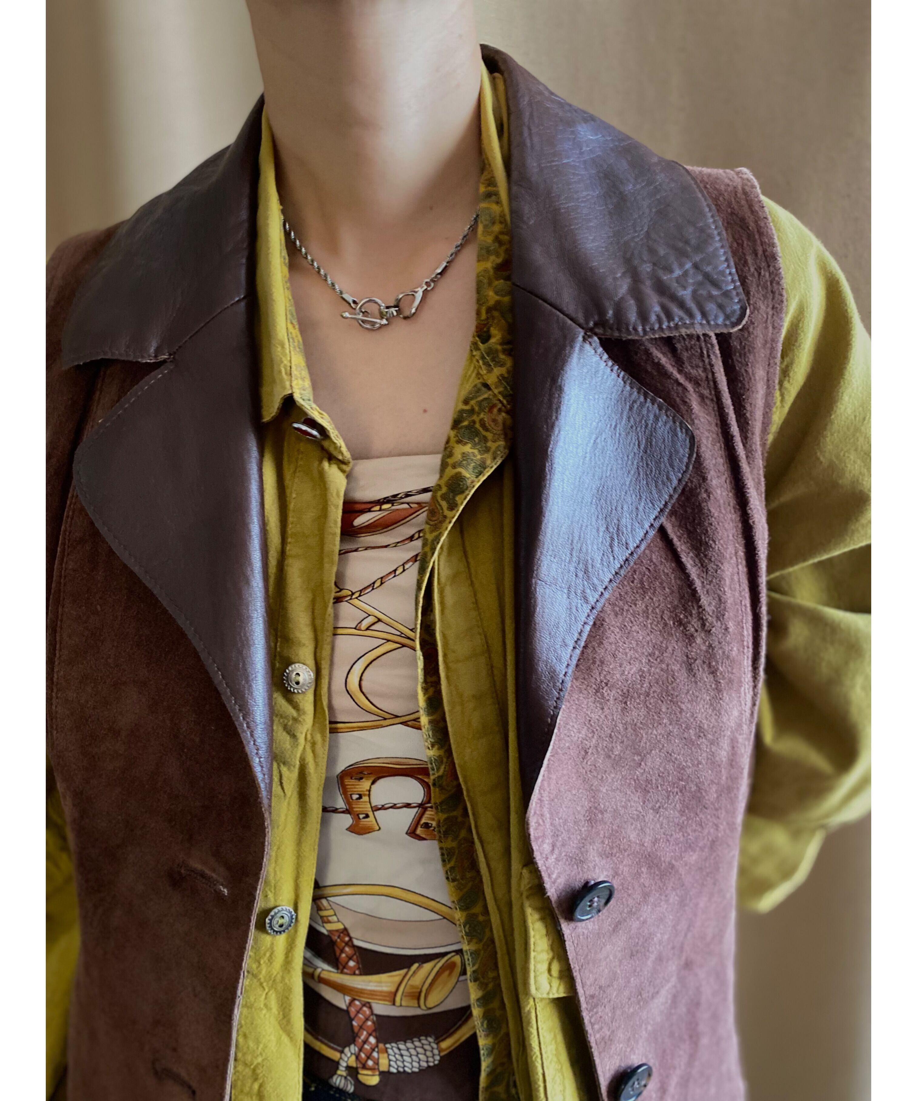 リアルピッグスエードを使用した高級感のあるテーラードカラーベスト。