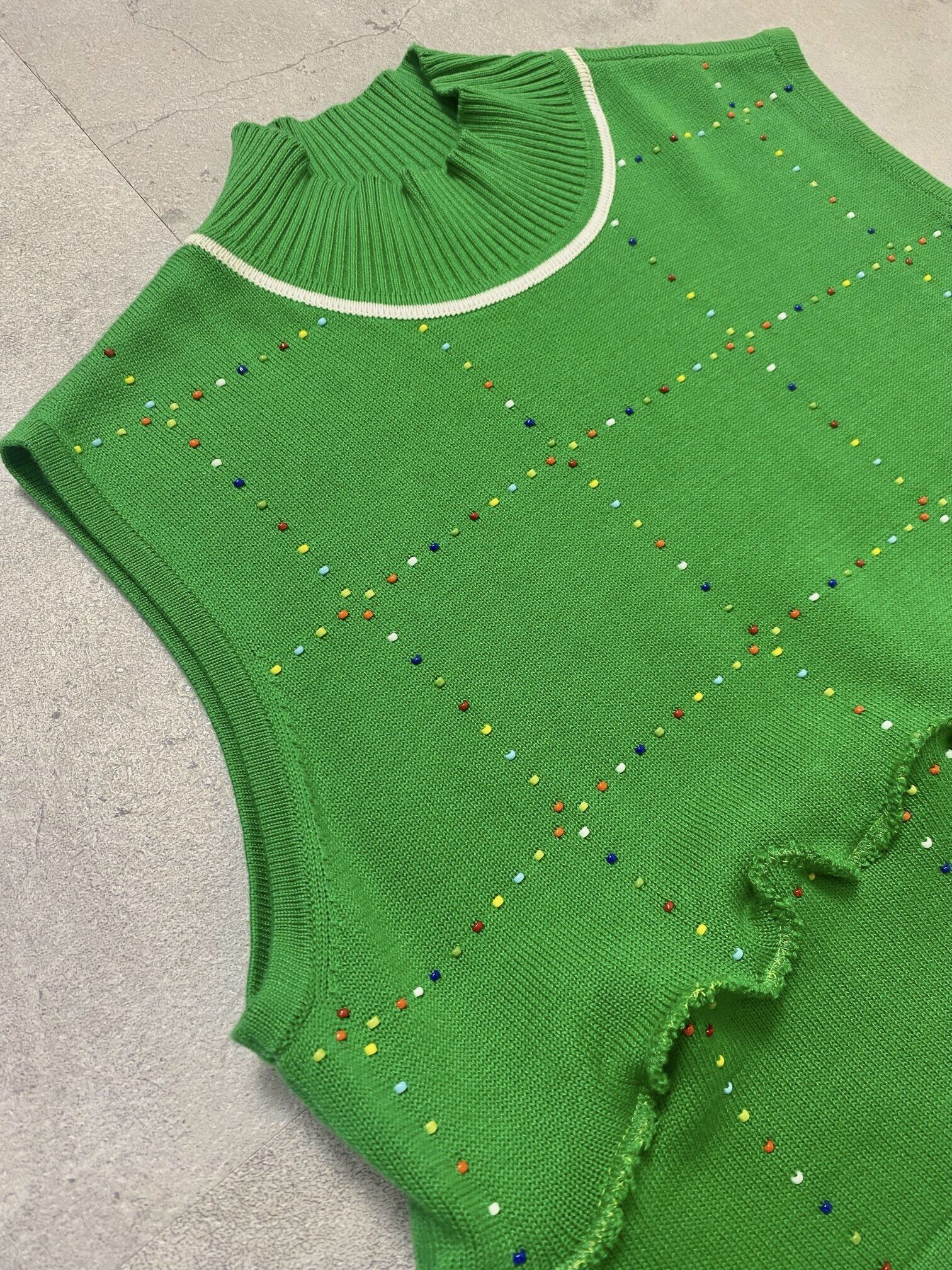 色鮮やかなグリーンカラーがお洒落度上がるリメイクニット。