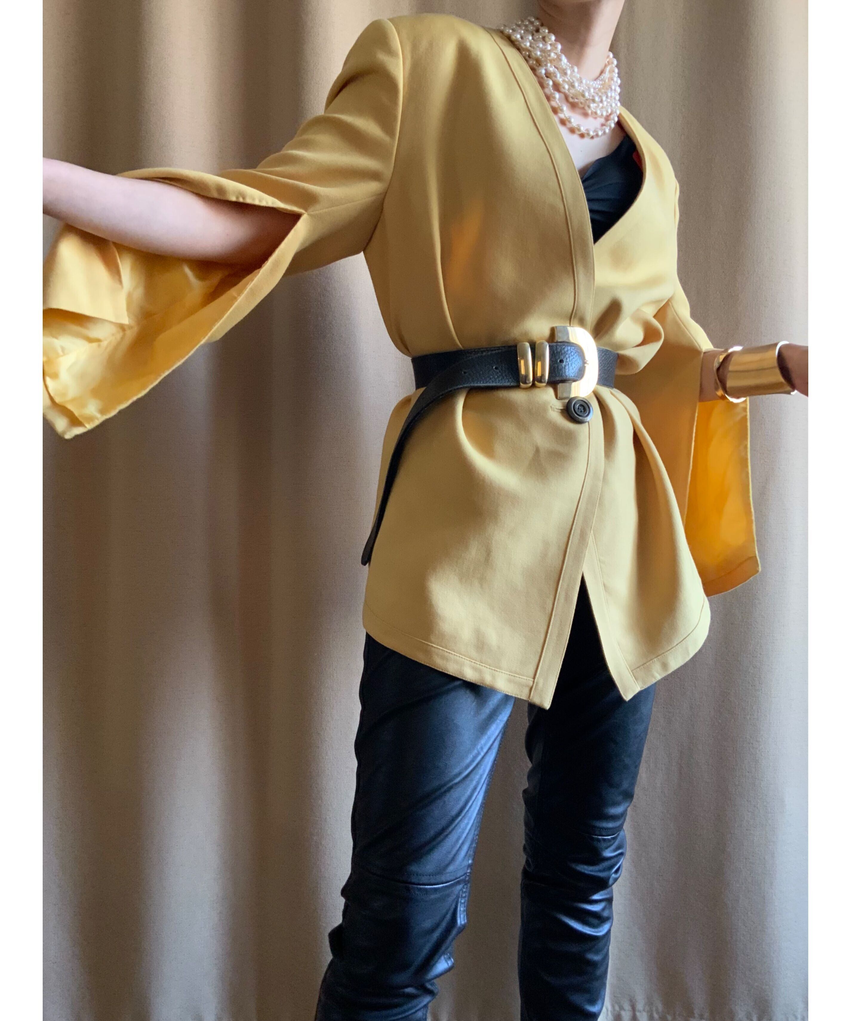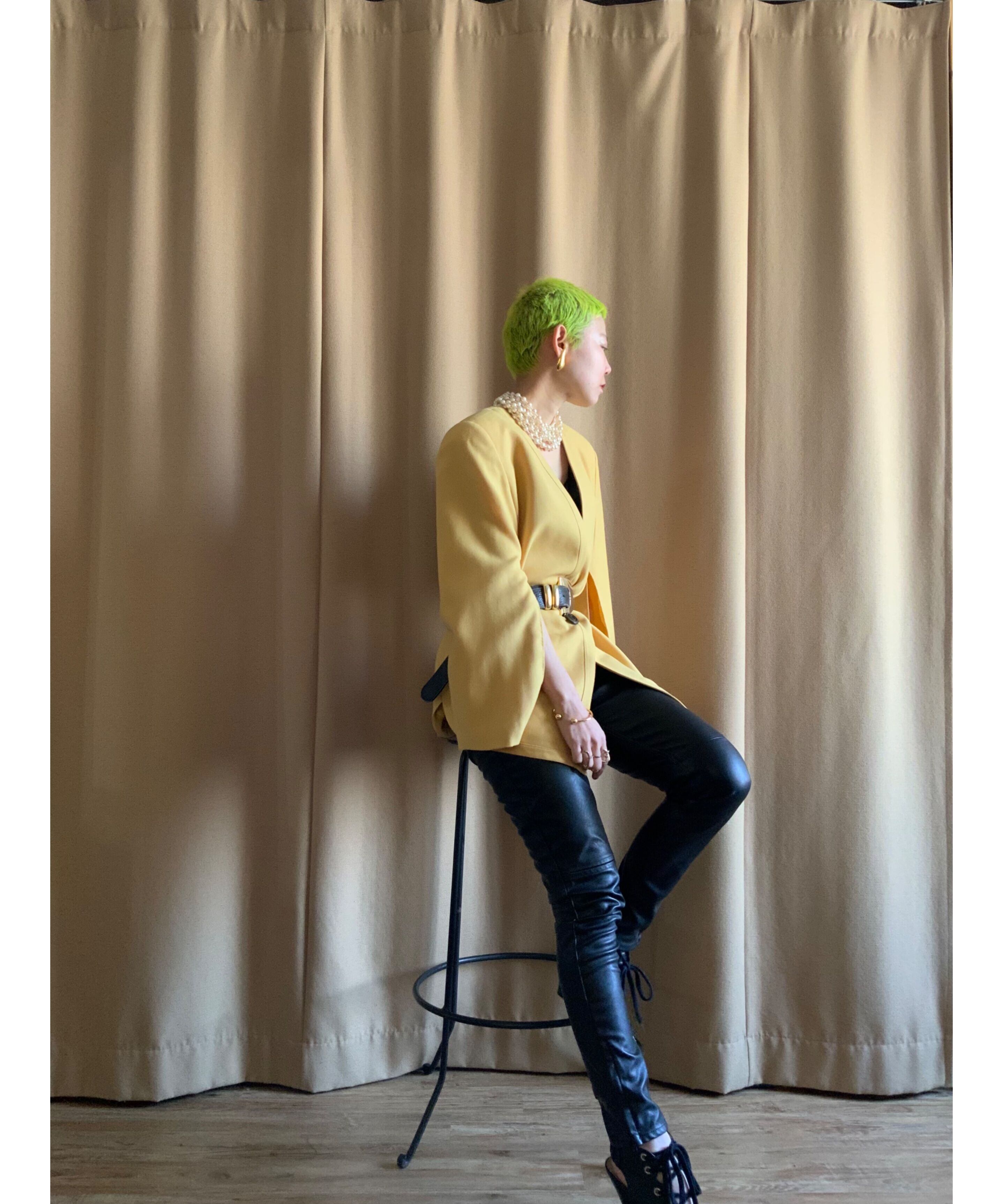 肩パッド入りのパワーショルダーにオーバーサイズシルエットが存在感を与えてくれるリメイクジャケット。