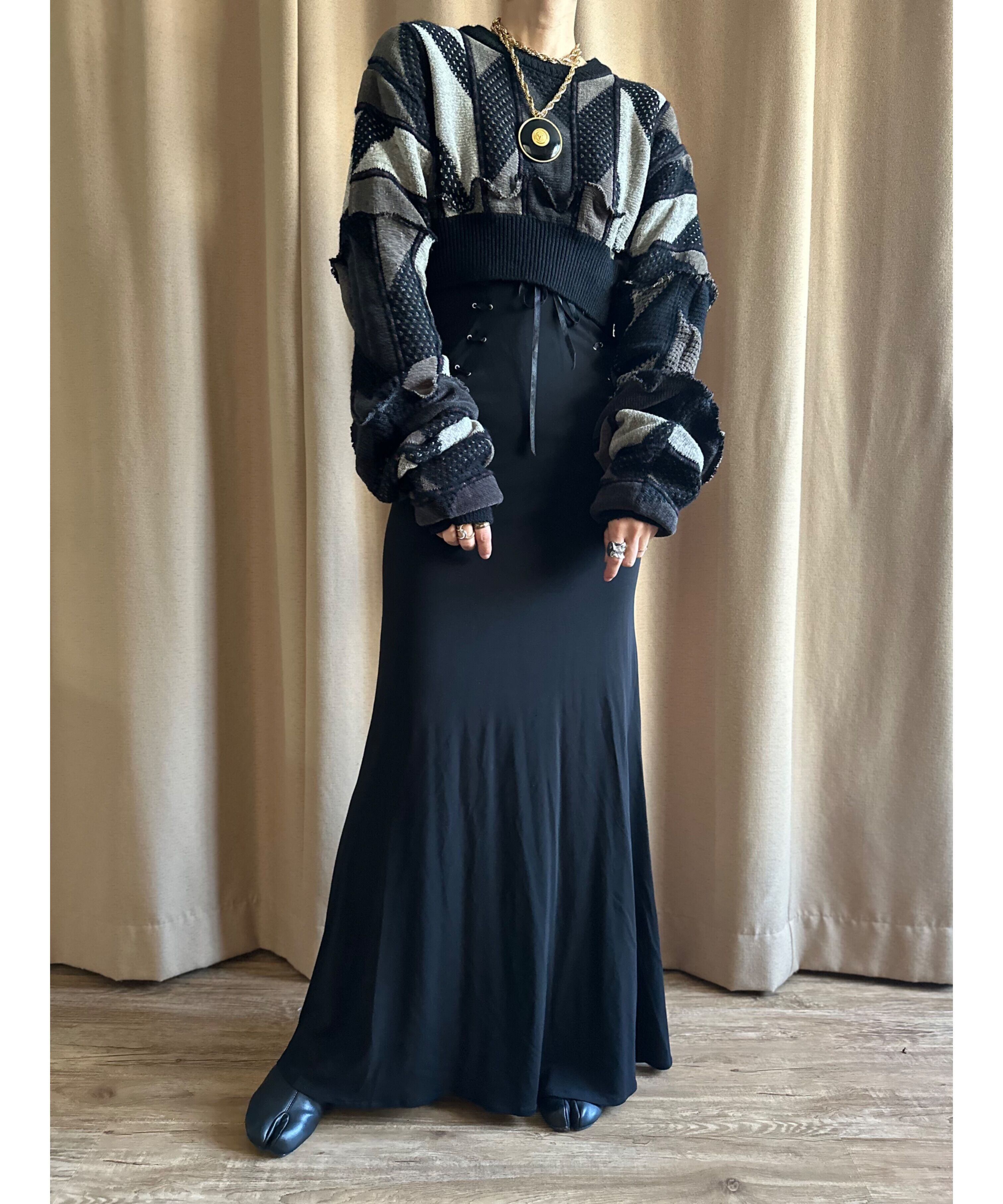 大人気の3Dニットをクロップド丈でトレンドライクに仕上げたリメイクニット。