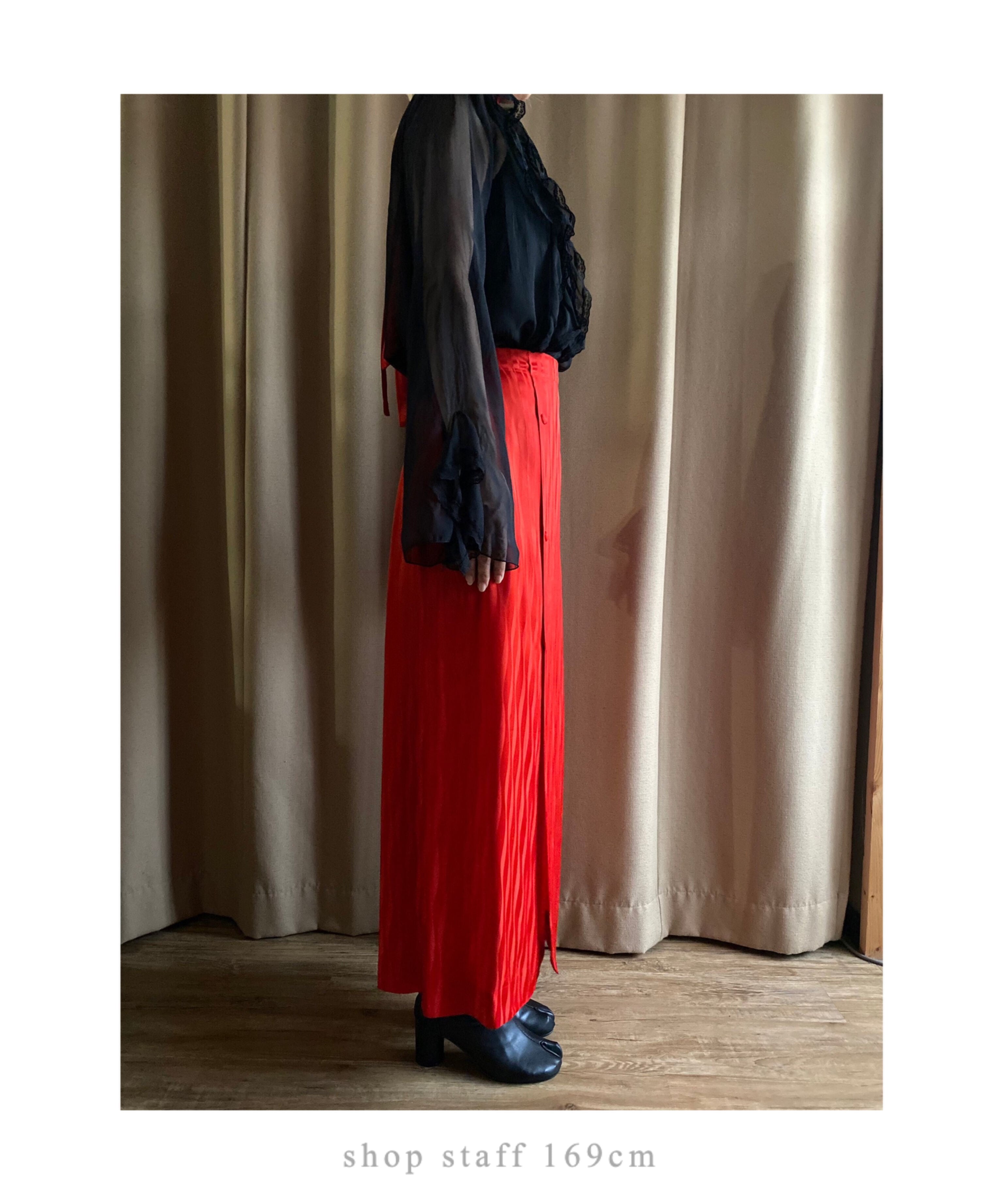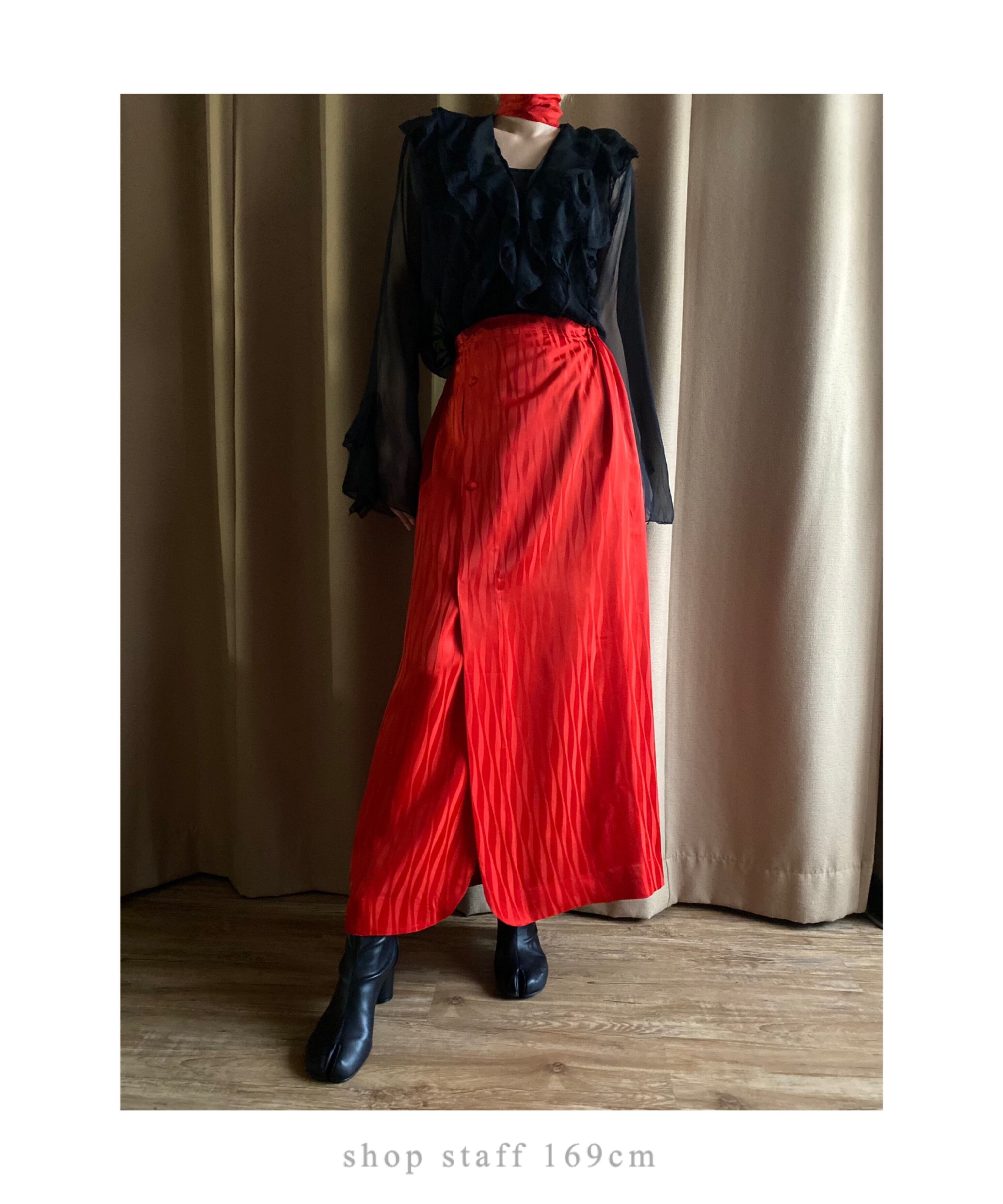 ■その他 ウエスト飾りボタン2、隠しスナップボタン2(ボタンを開けるとスリットののようなデザインになります)、ポケット1、後ろゴムギャザー入り