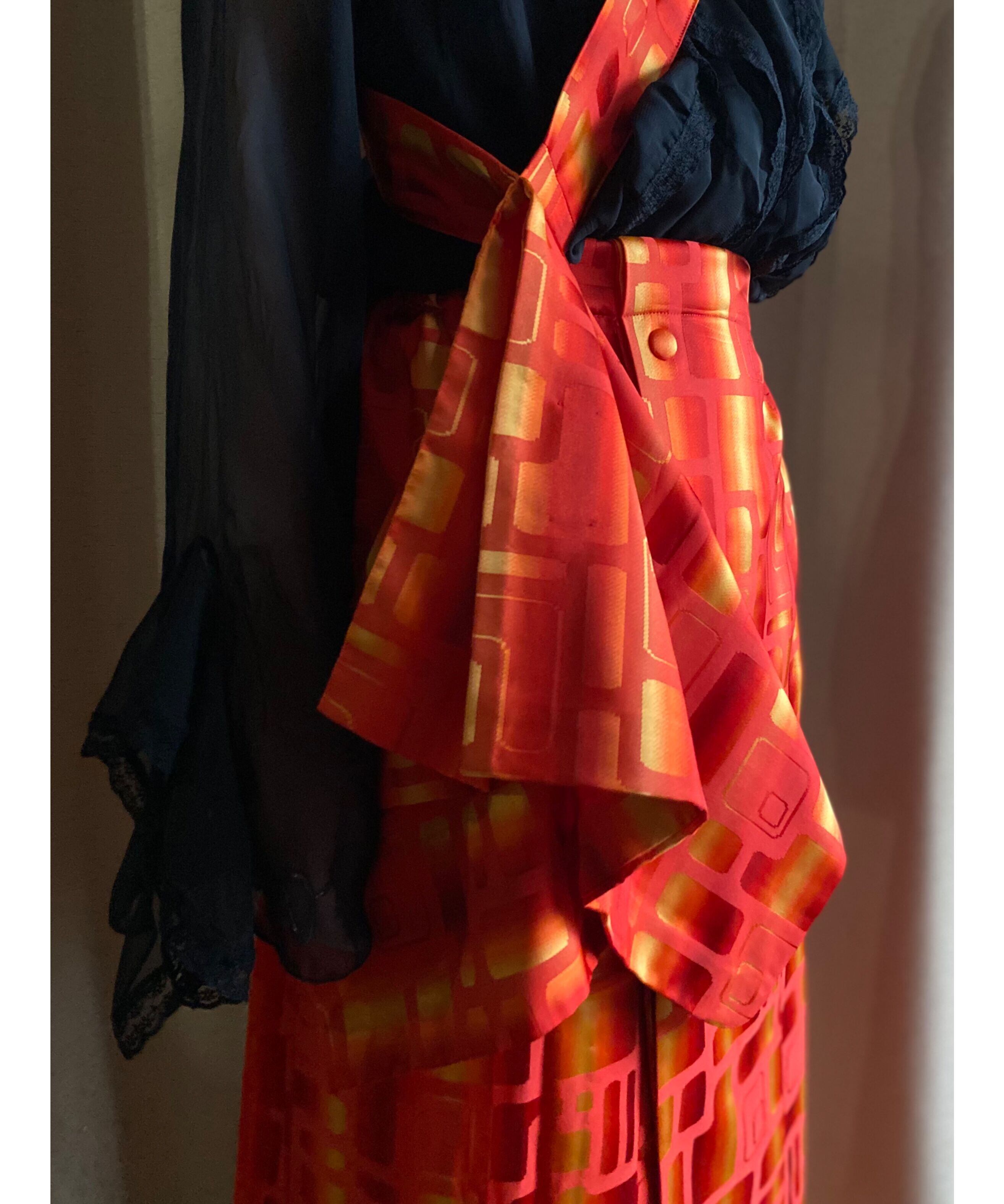日本の伝統的衣服である着物(雨コート)をリバイバルしたCOLLENTEオリジナルスカート 。