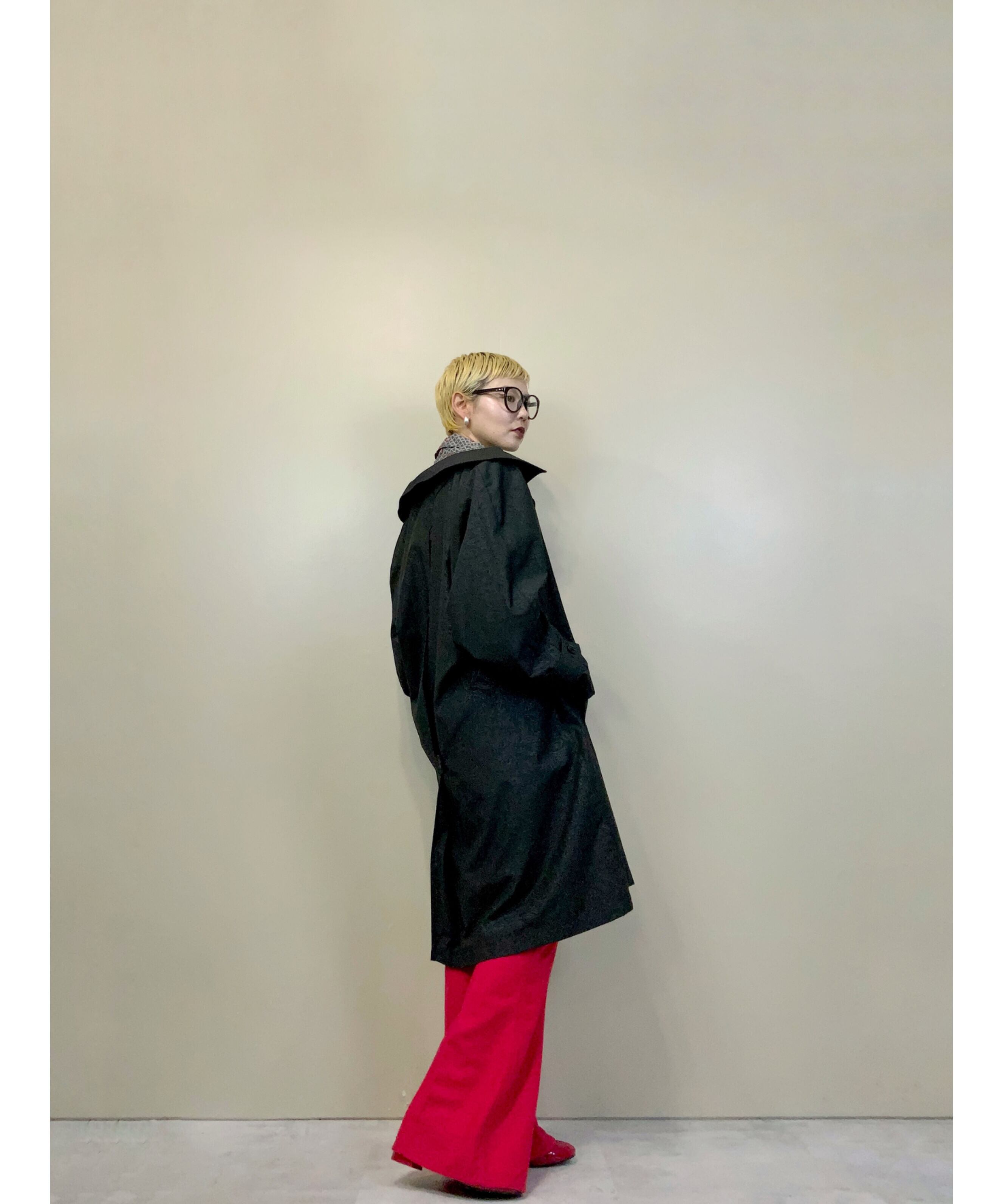 バックステッチデザインや個性的なスリーブストラップなど拘りのディテールが目を惹く一着です。