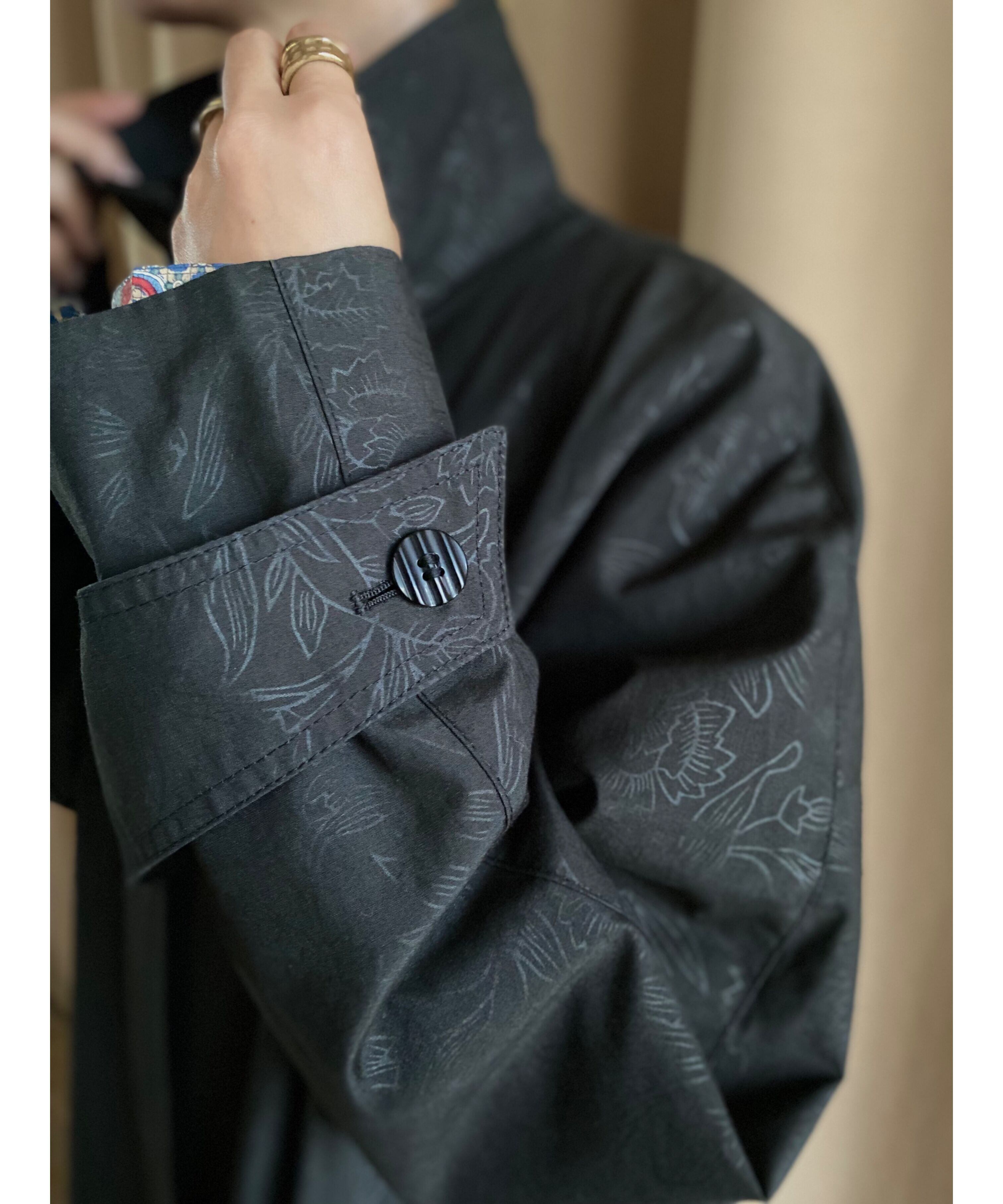 使い勝手抜群のブラックカラーにさり気なくデザインプリントされたフラワー柄が大人レトロな印象で。
