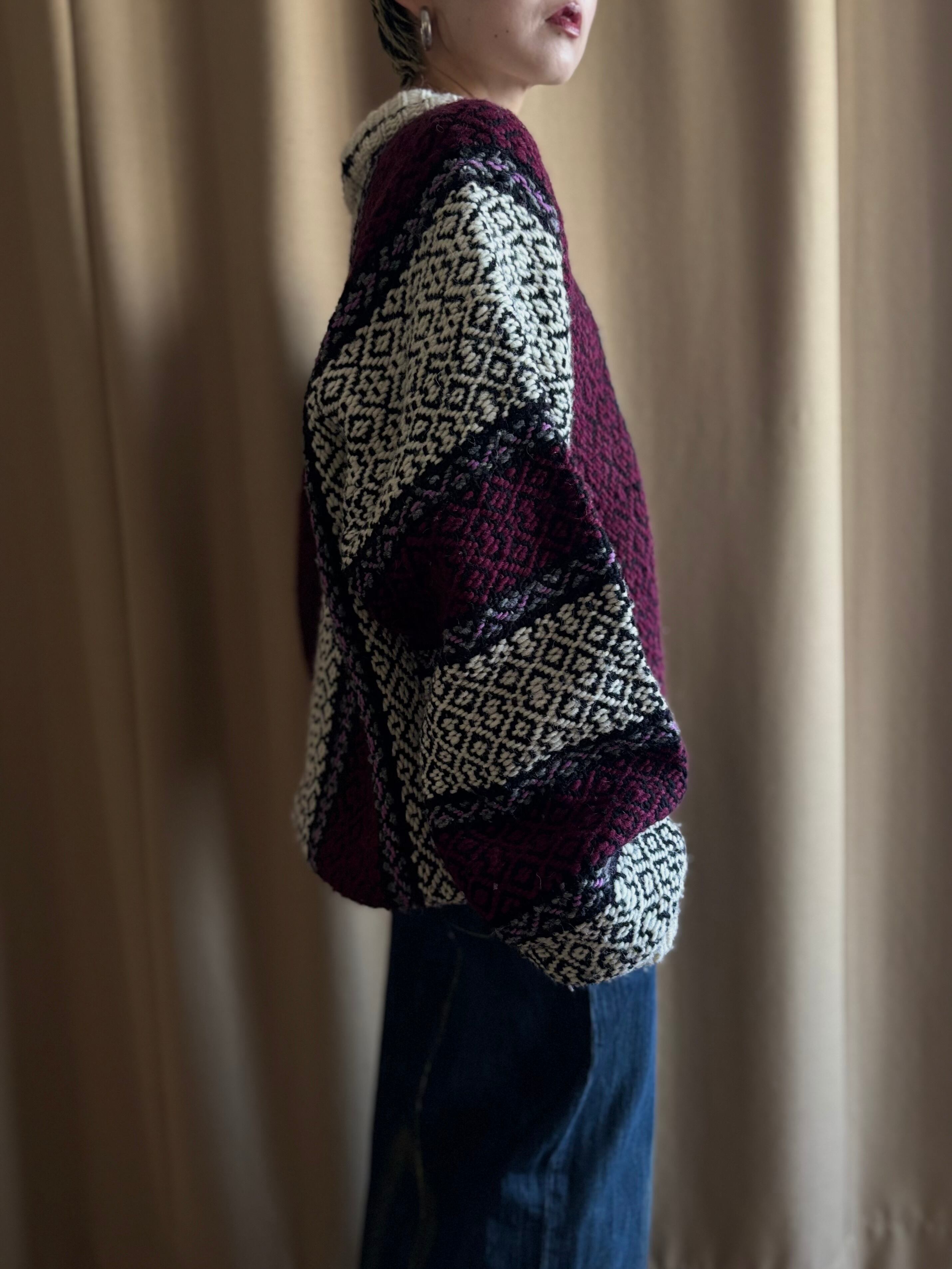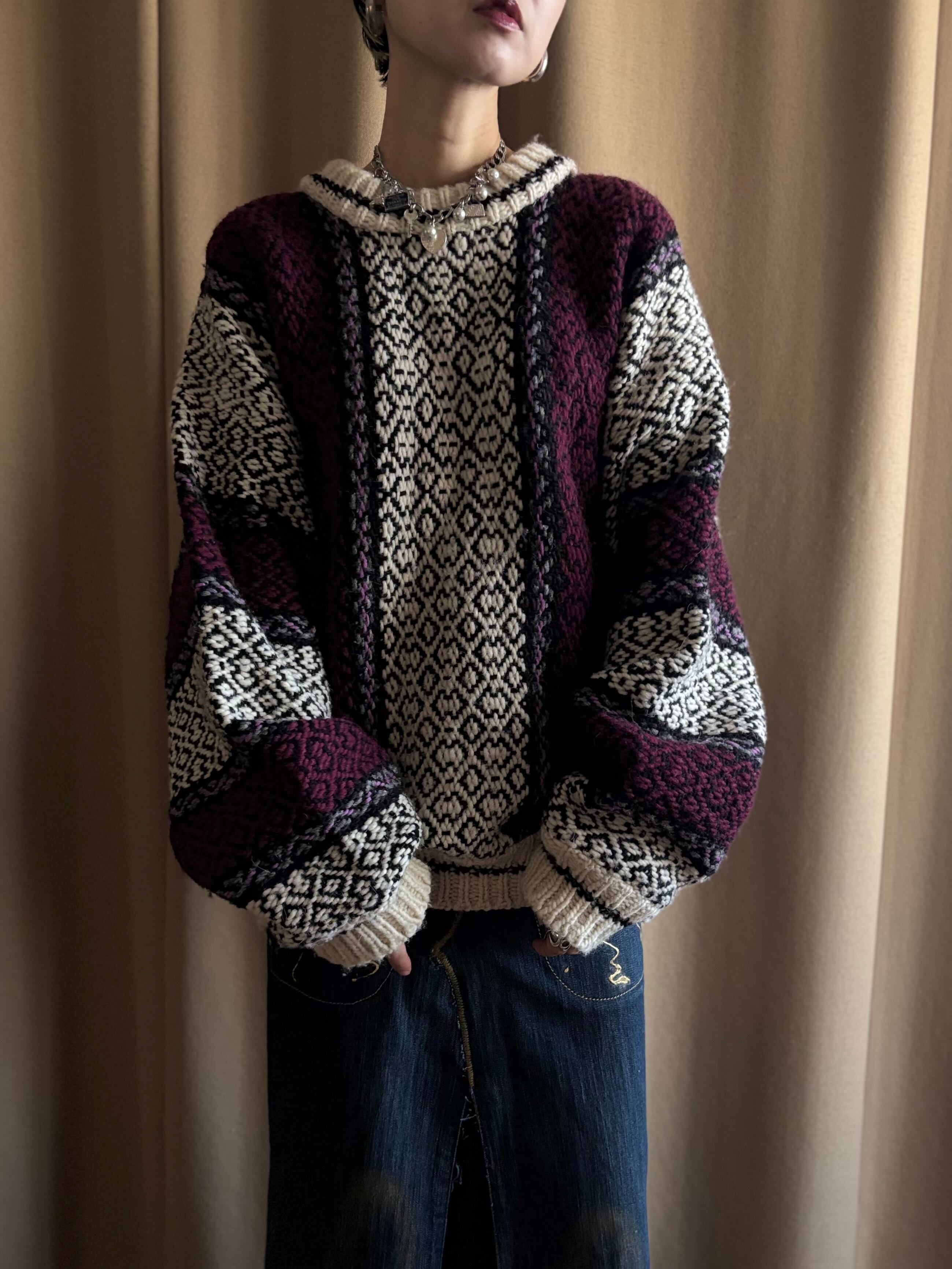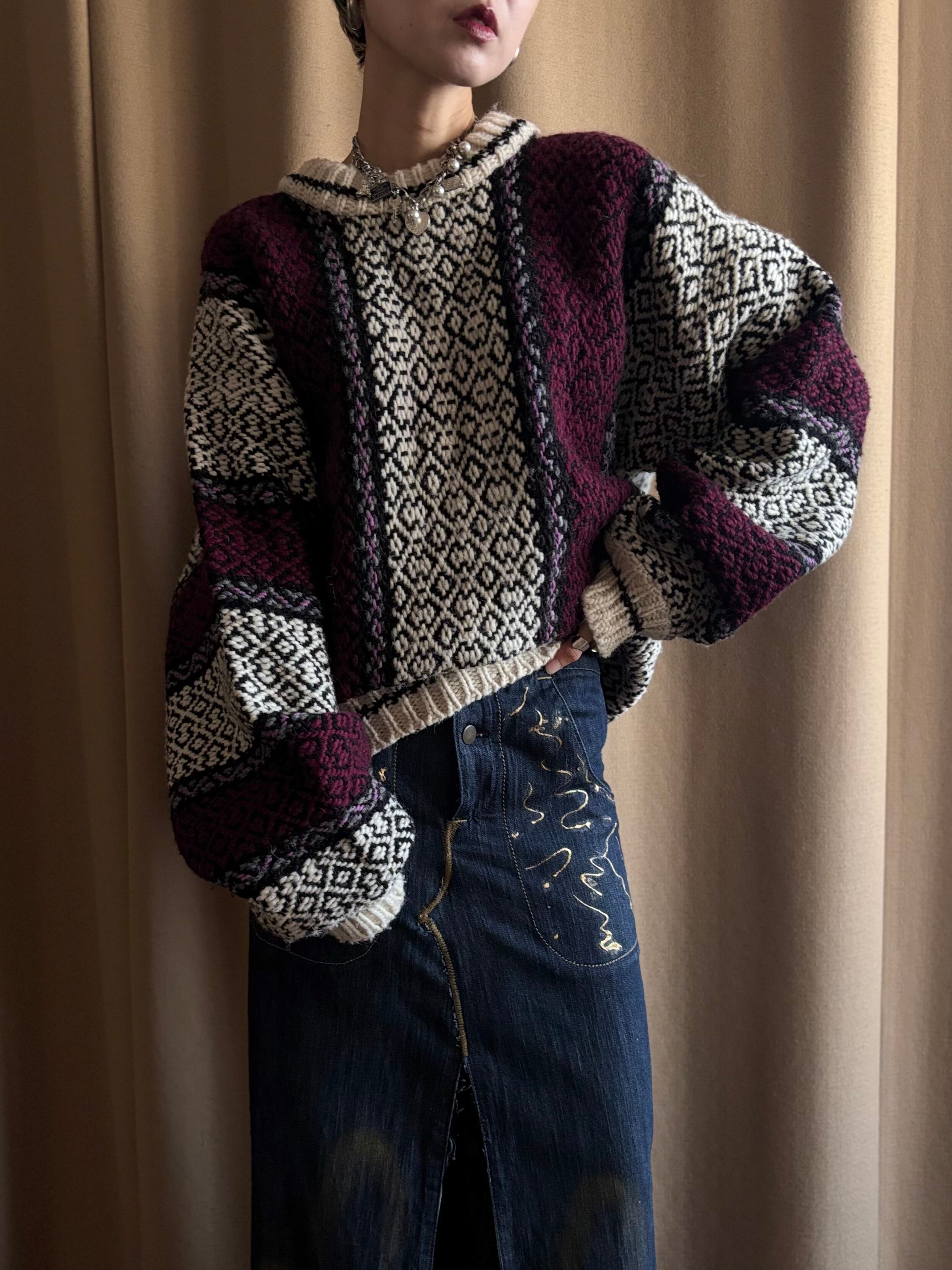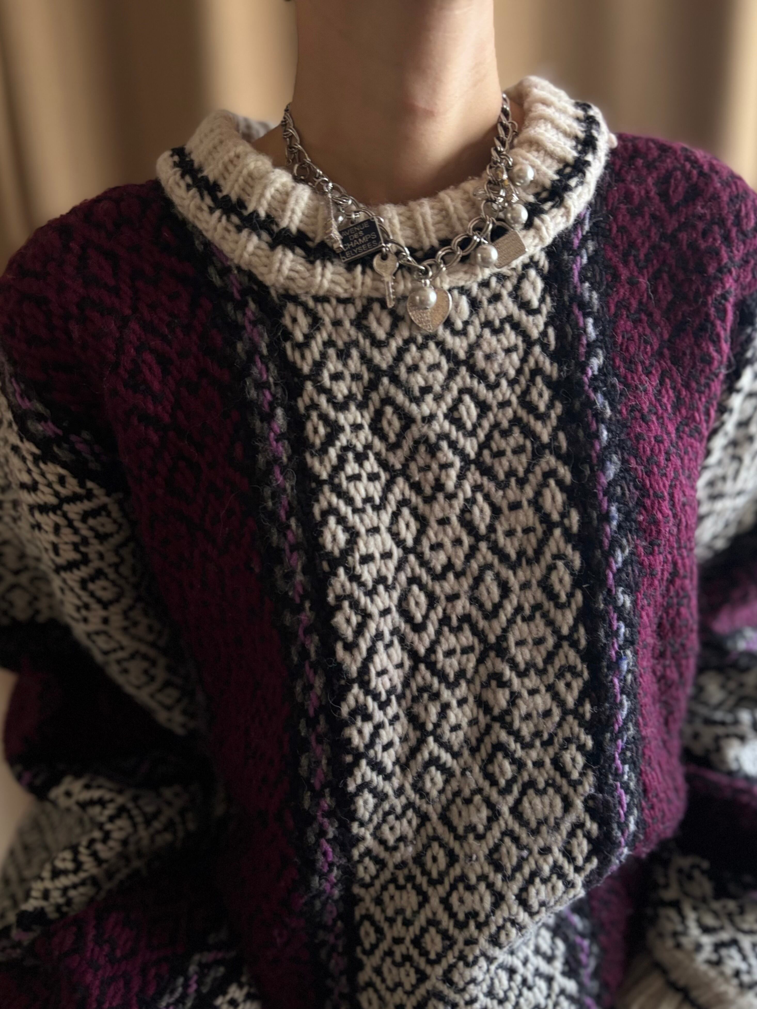 ノルディック調の幾何学パターンに、上品なカラーリングでシックにまとめあげた一着。