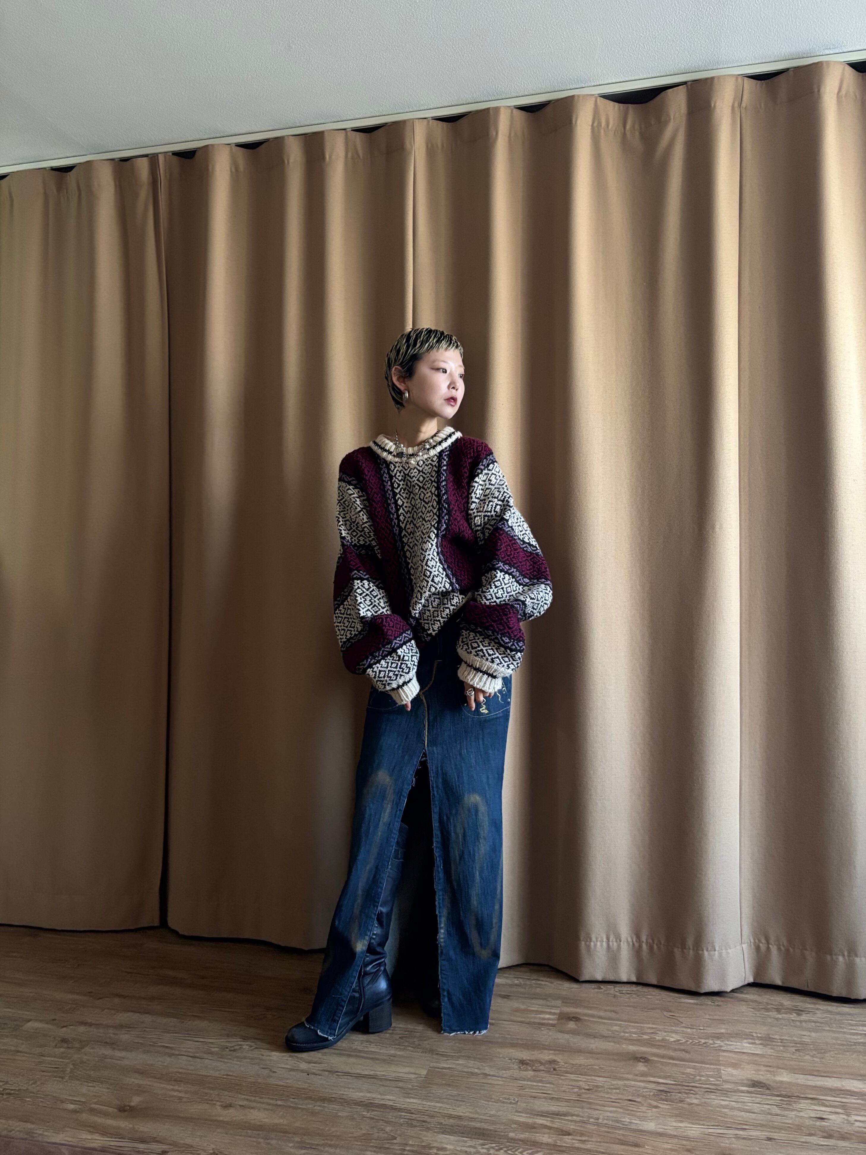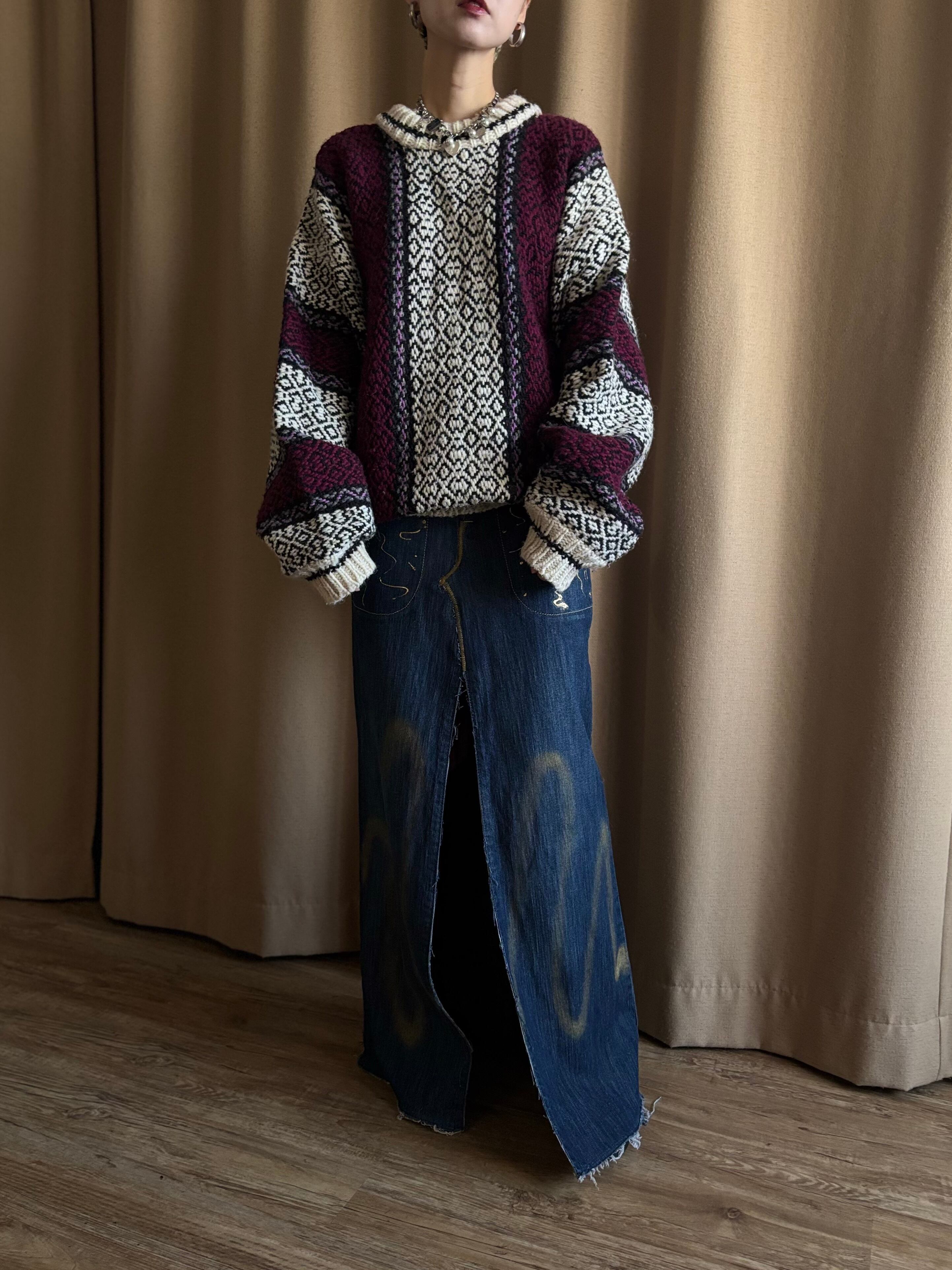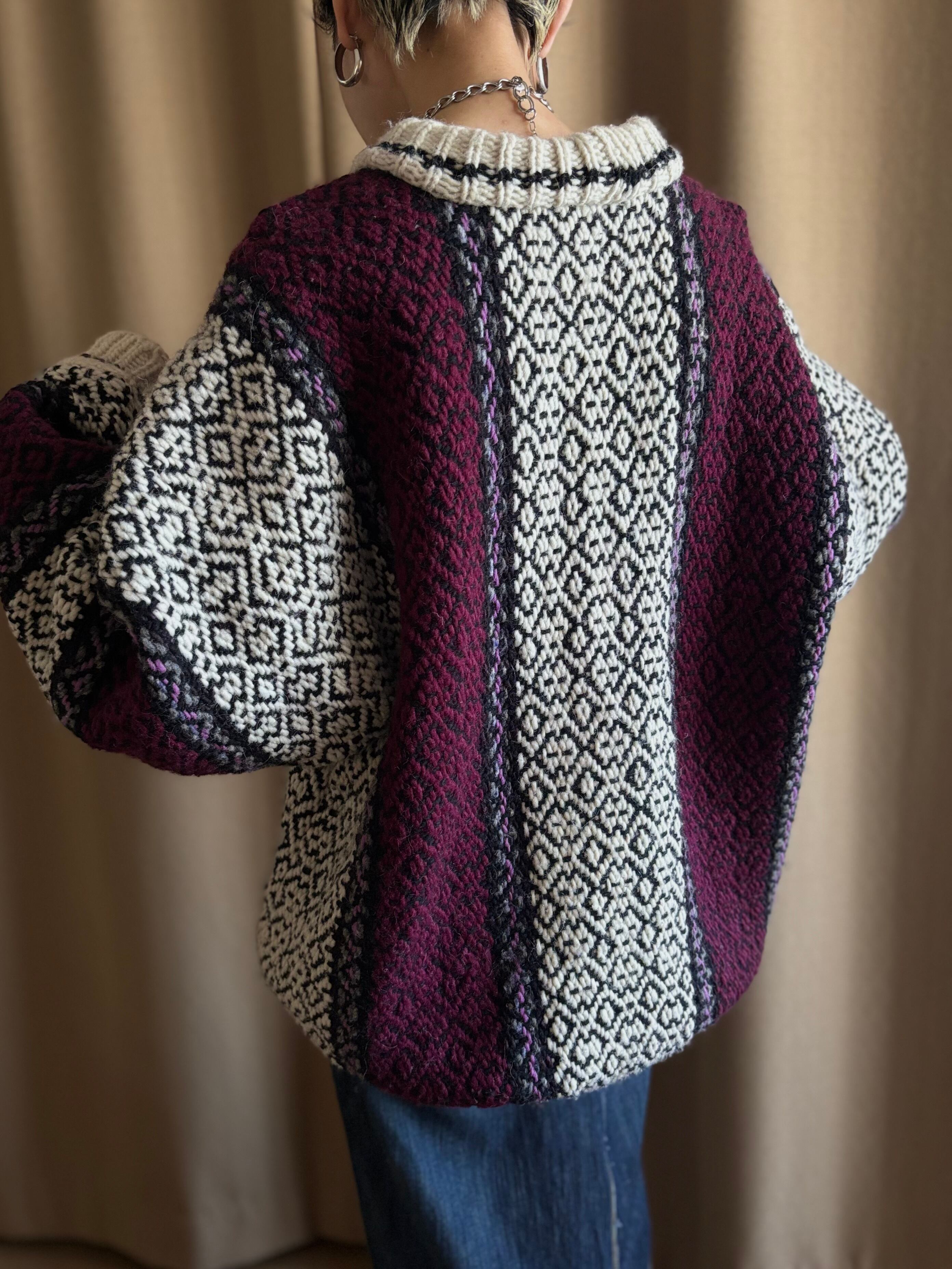ノルディック調の幾何学パターンに、上品なカラーリングでシックにまとめあげた一着。