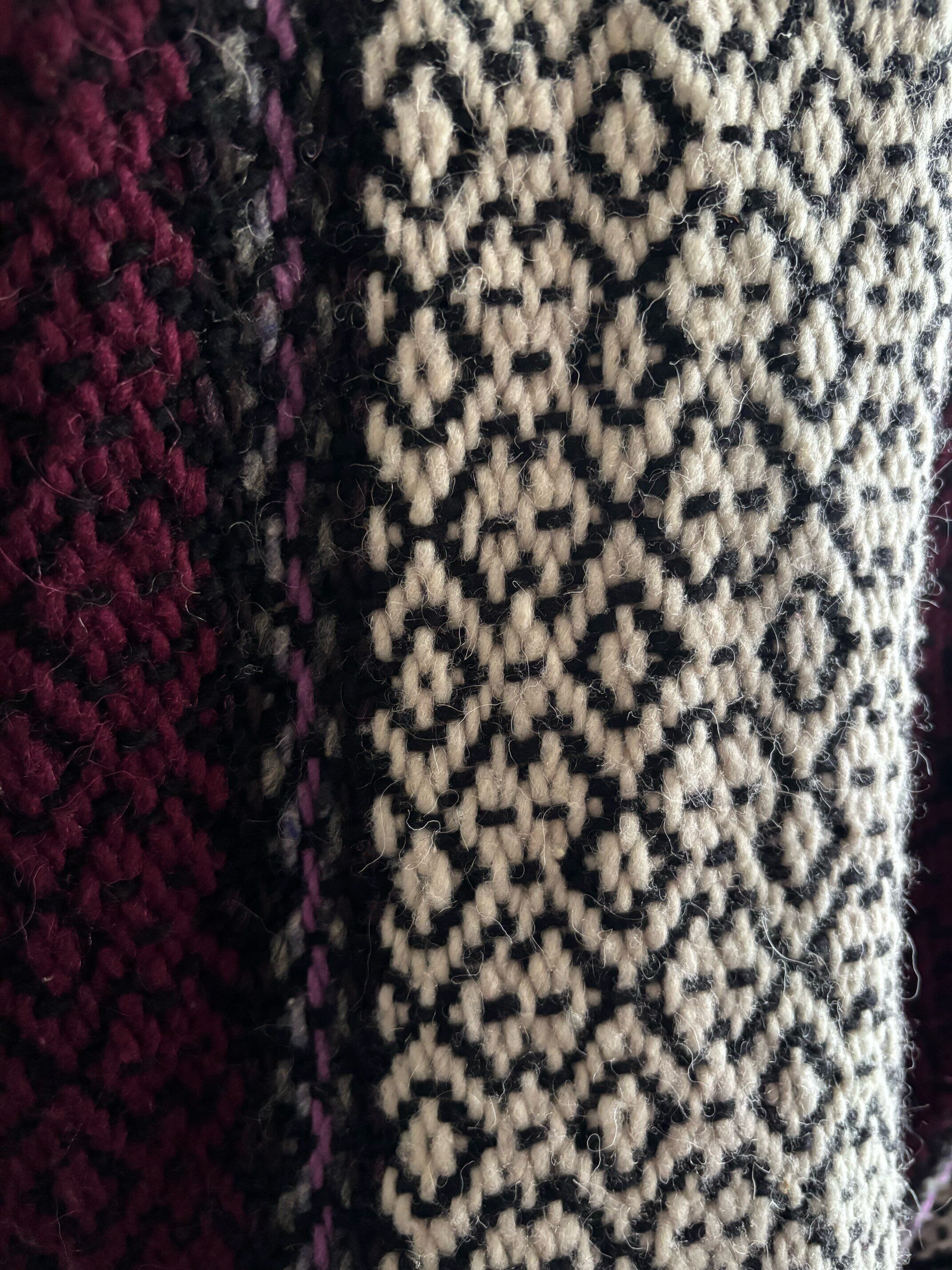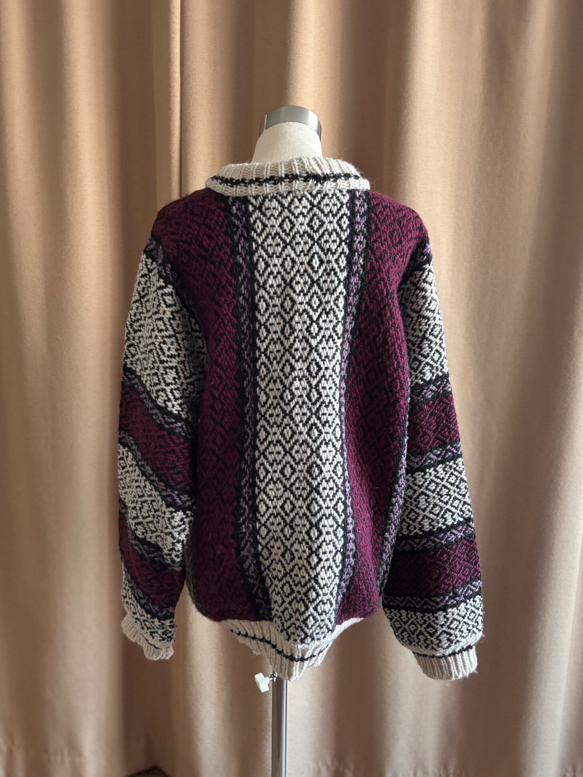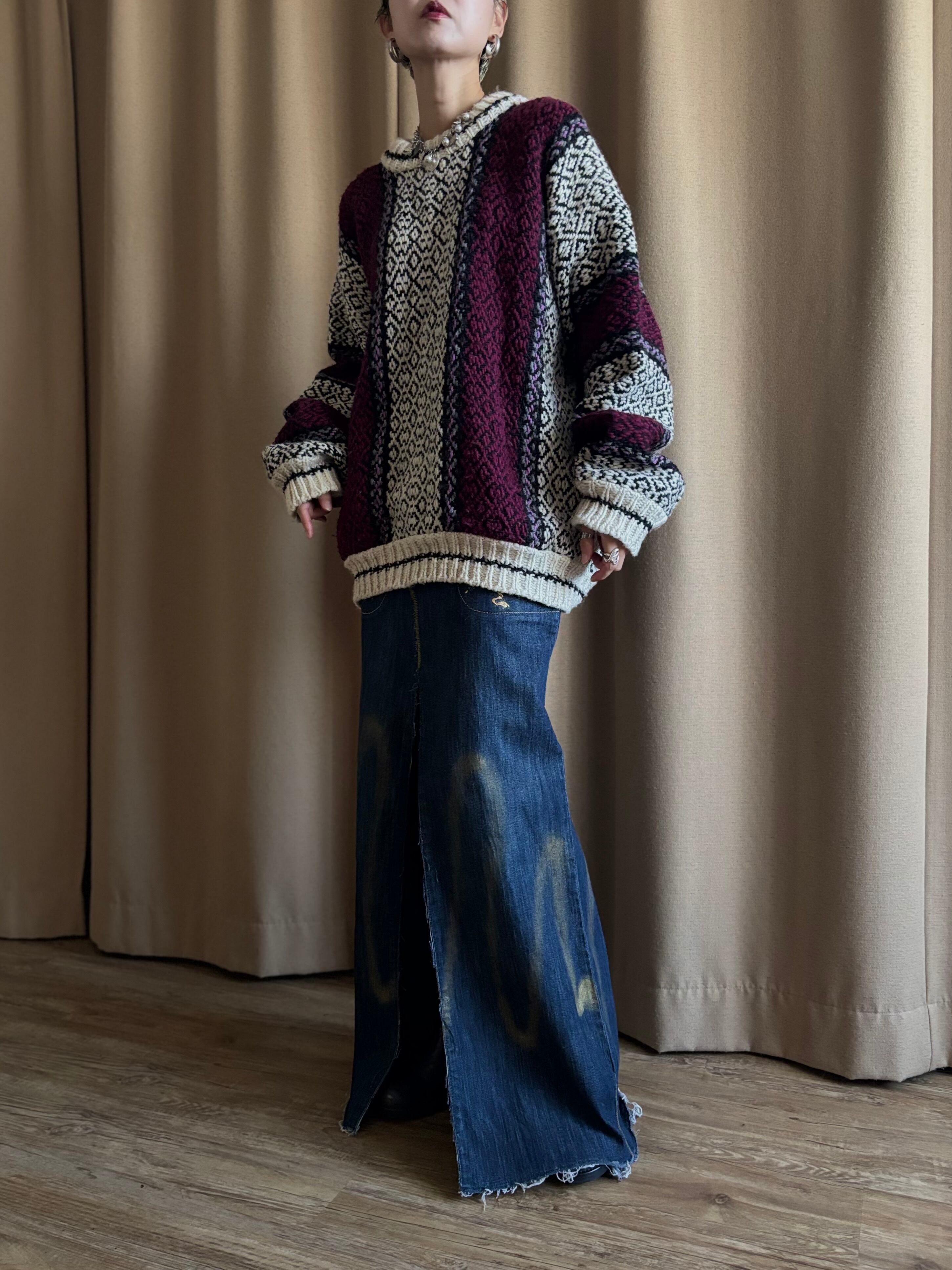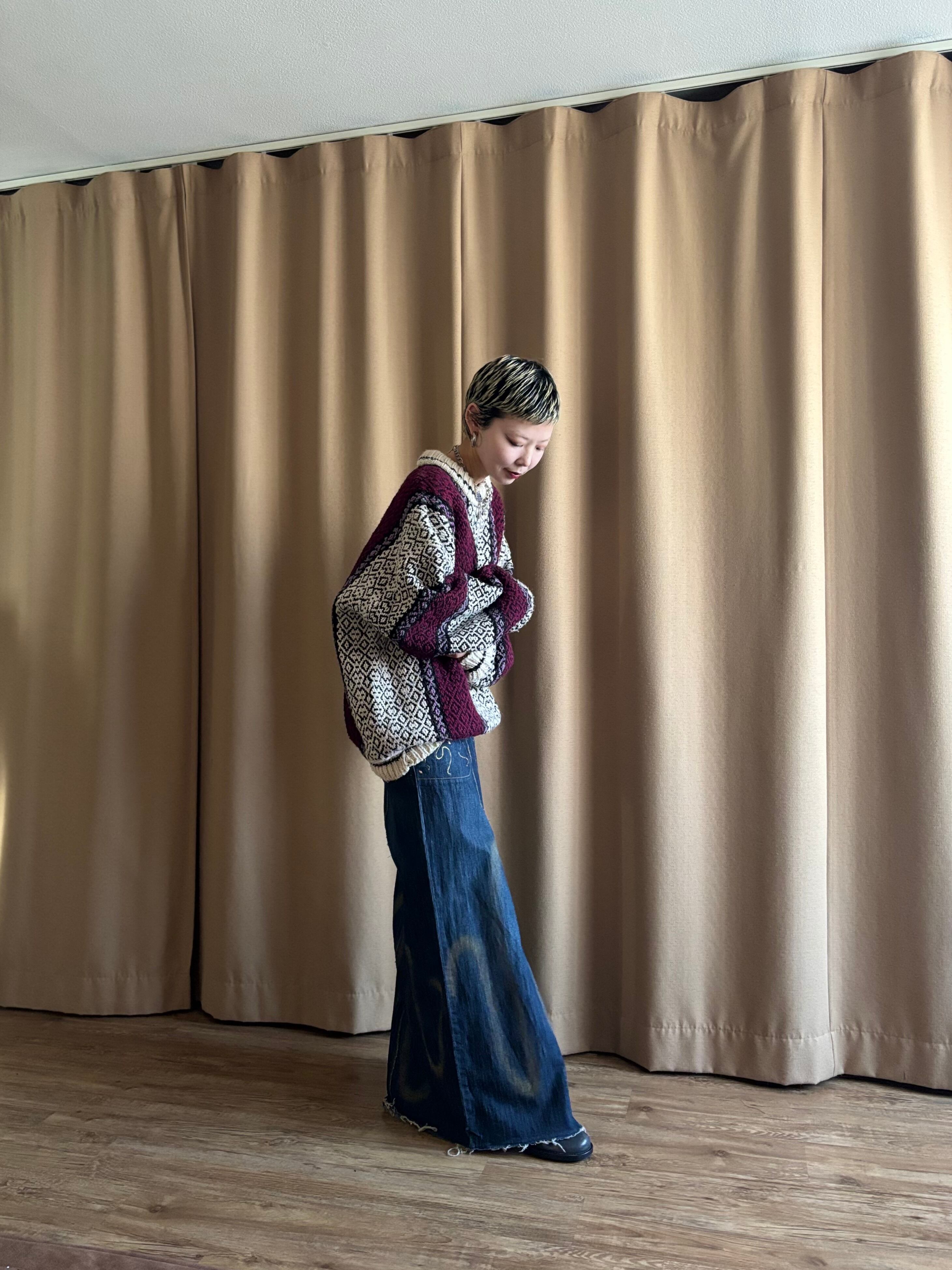 ノルディック調の幾何学パターンに、上品なカラーリングでシックにまとめあげた一着。