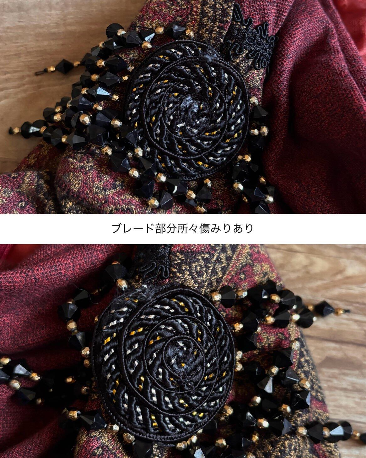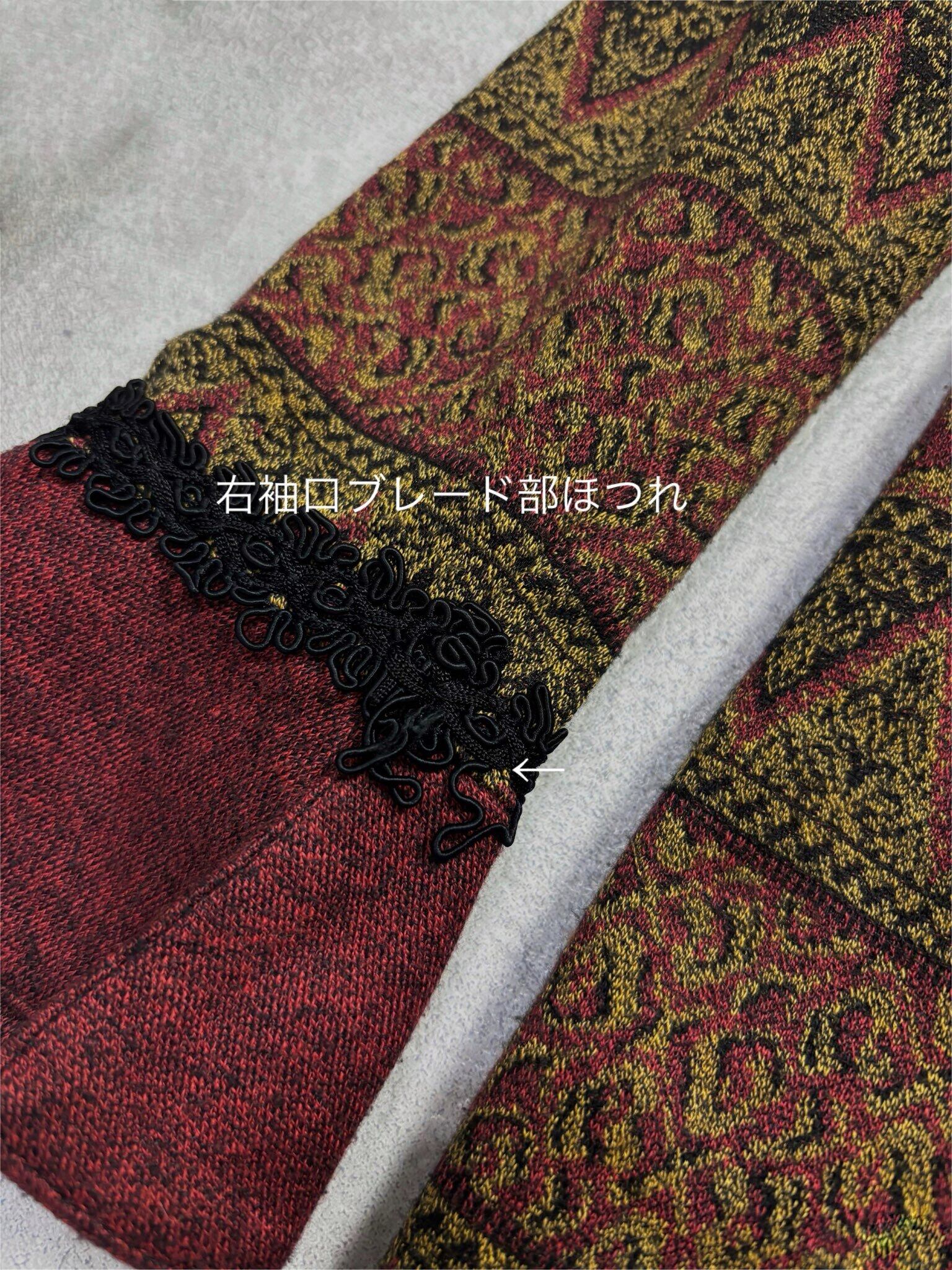 【B】両肩フロントブレード部分傷みあり、ビーズ色剥がれあり、後ろボタンフック傷みあり、右袖口ブレード部ほつれ箇所あり、裏地小さな傷みあり