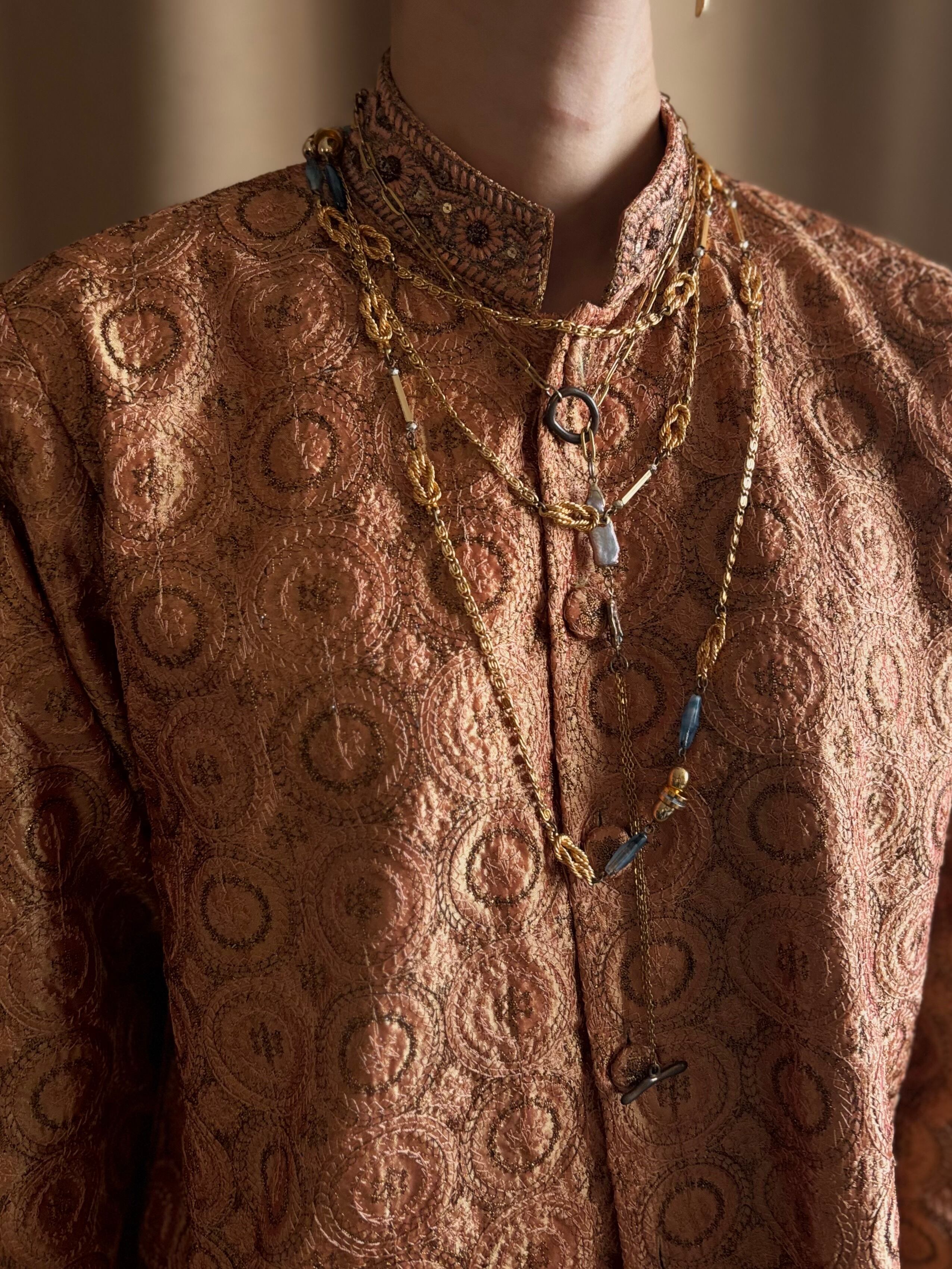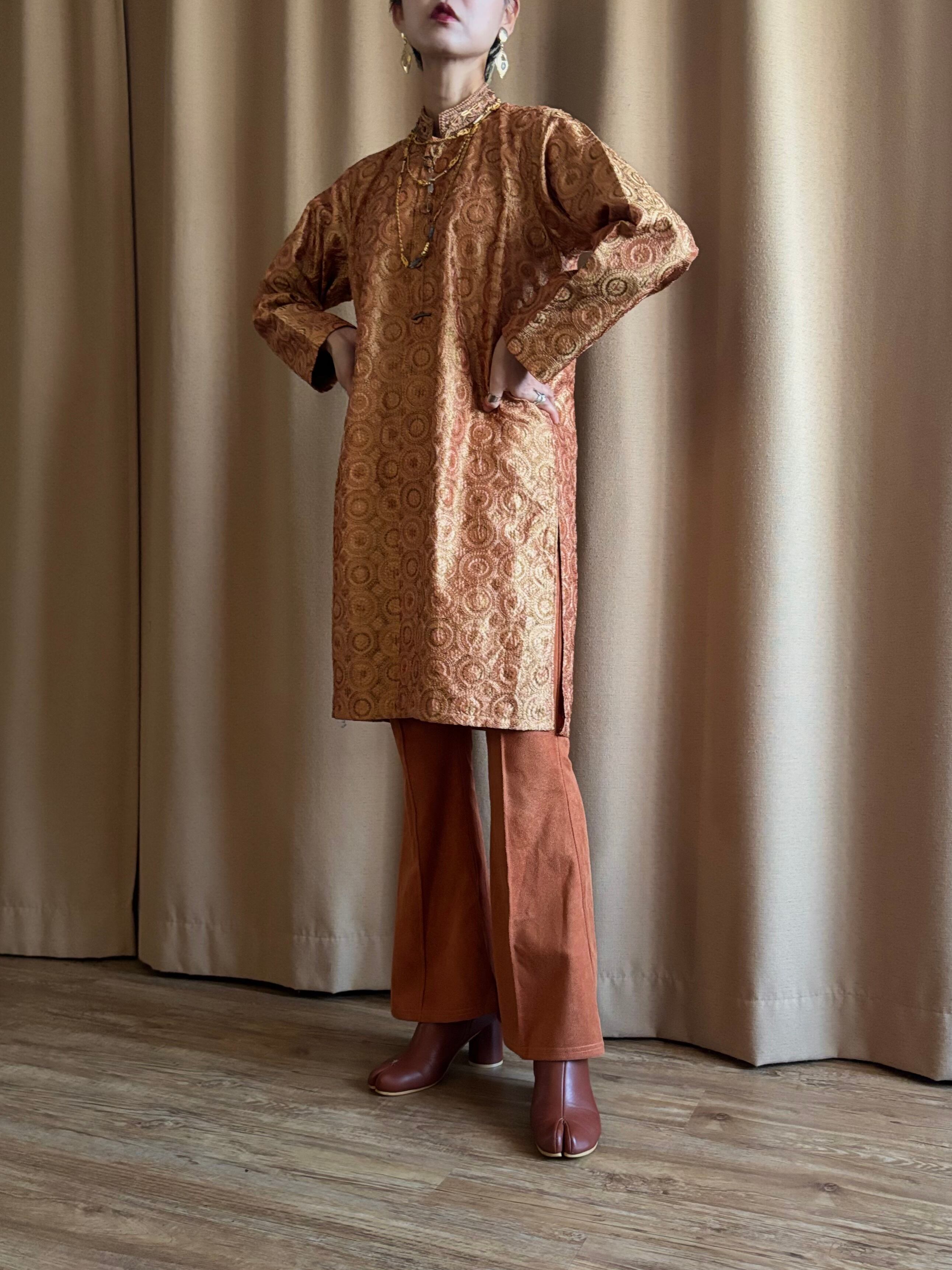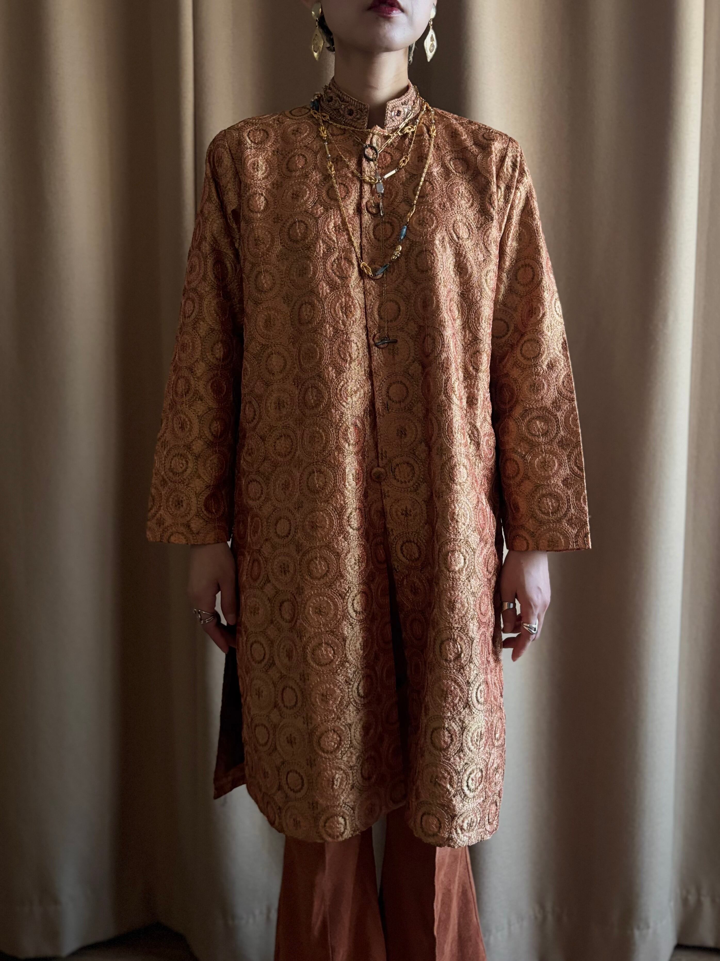 繊細な円形モチーフの刺繍を全面にあしらった、エスニックムード漂うインポートチュニック。
