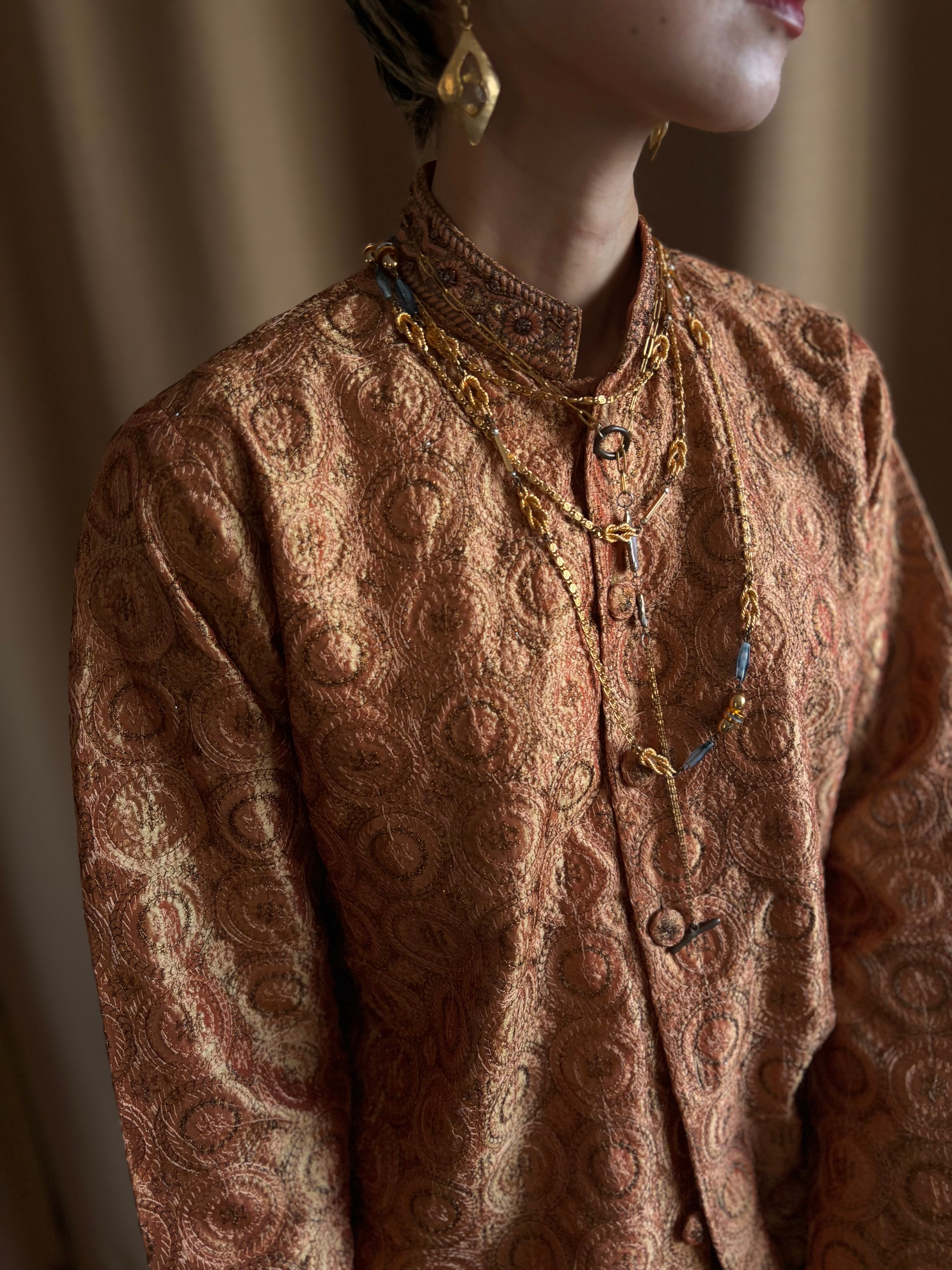 ■素材 不明(中厚地ラメ入り刺繍、裏地キュプラ系)