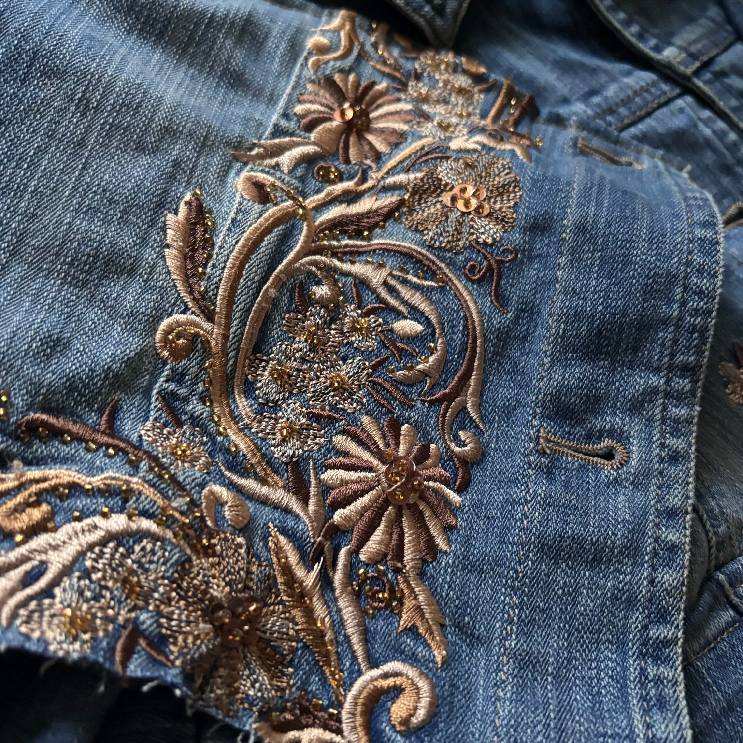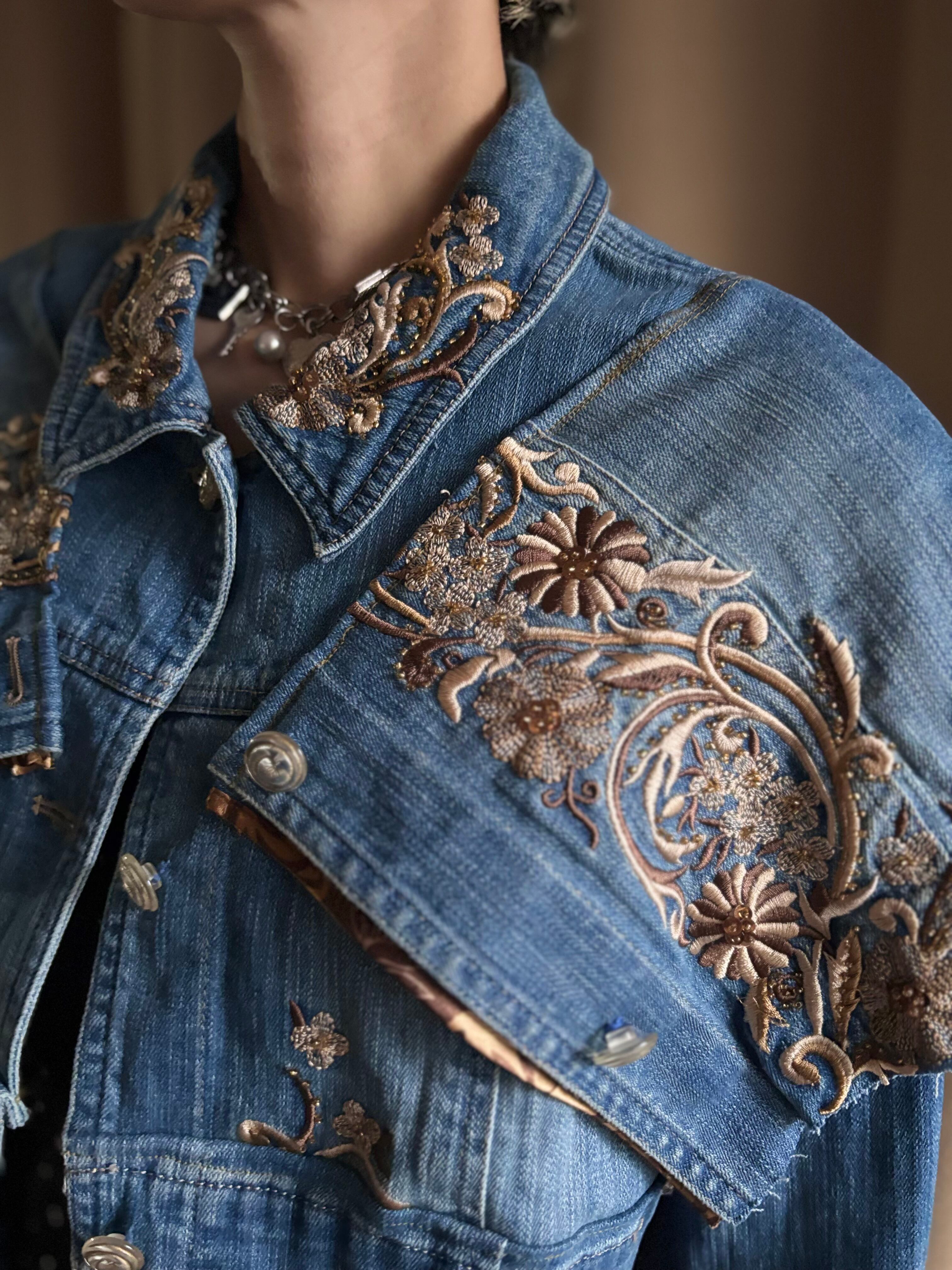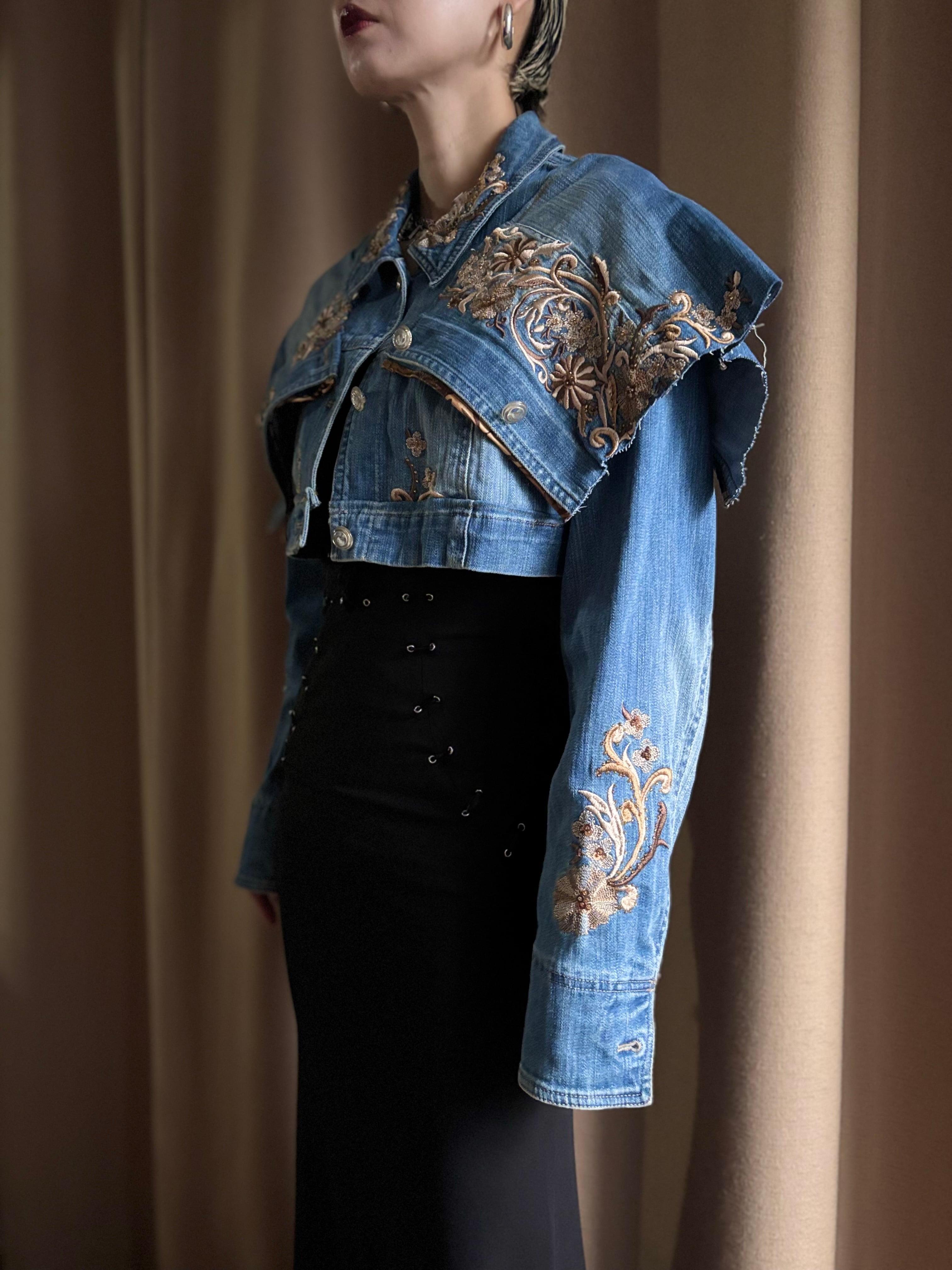 floral embroidery remake denim jacket-5075-11