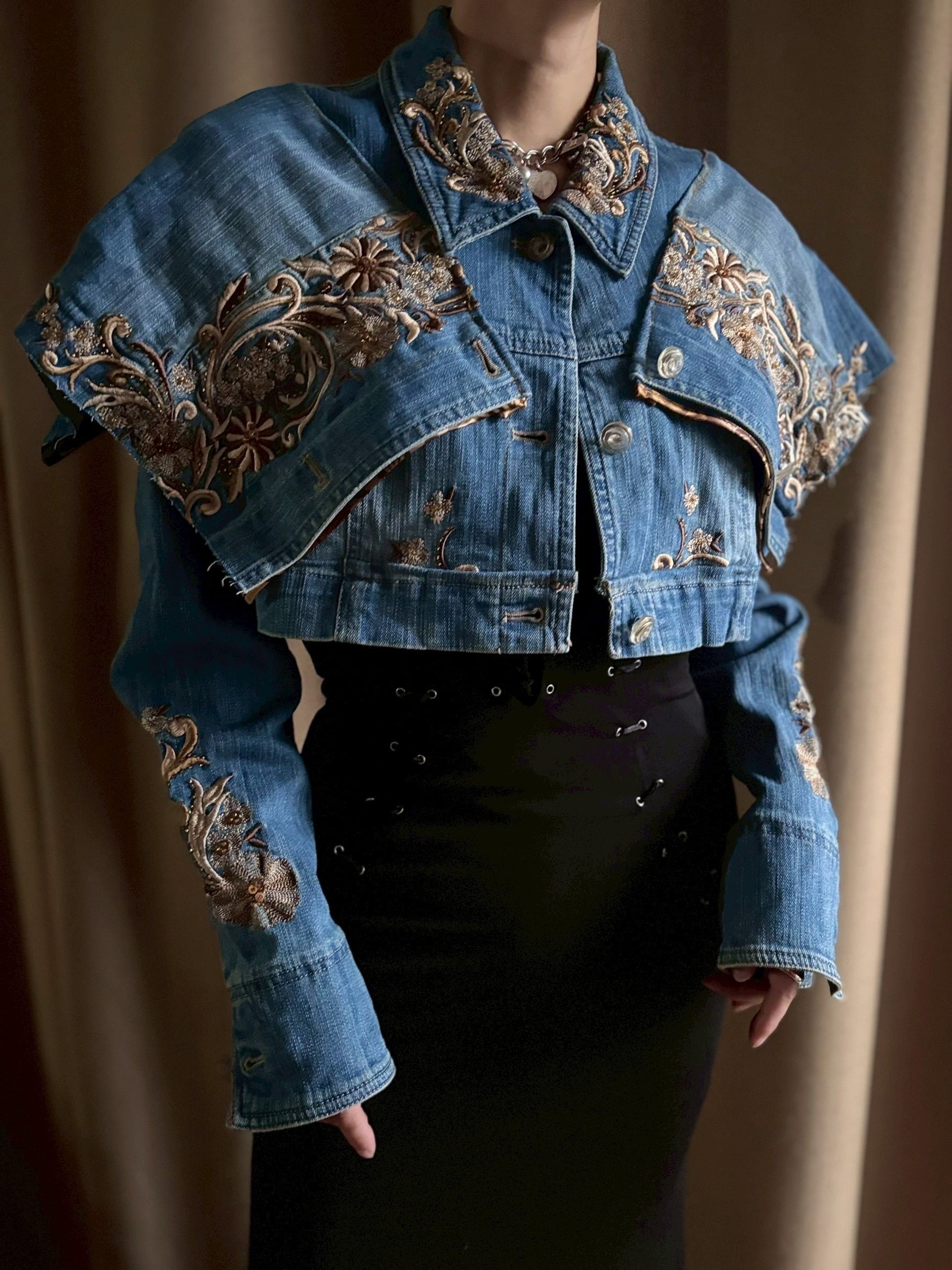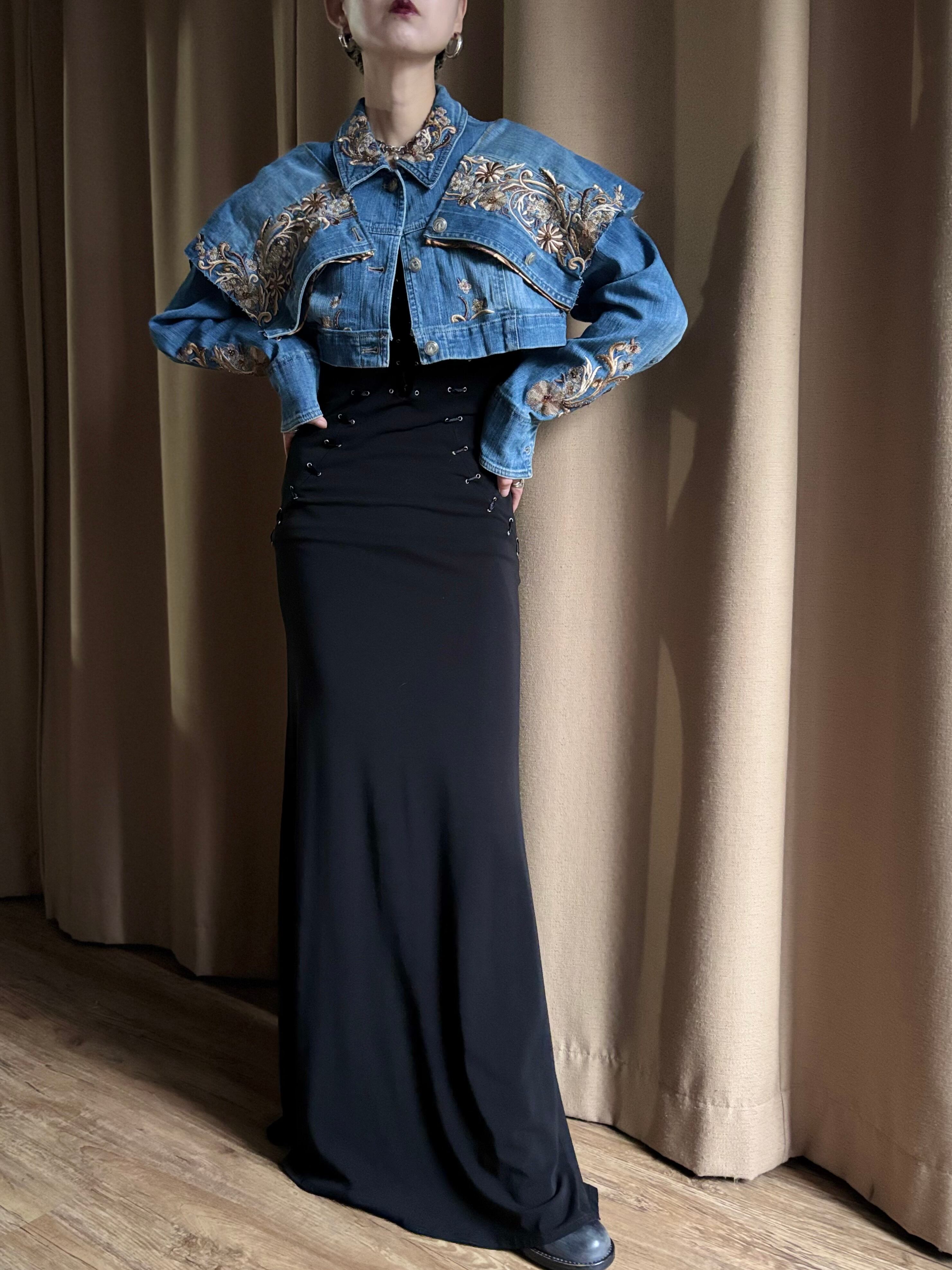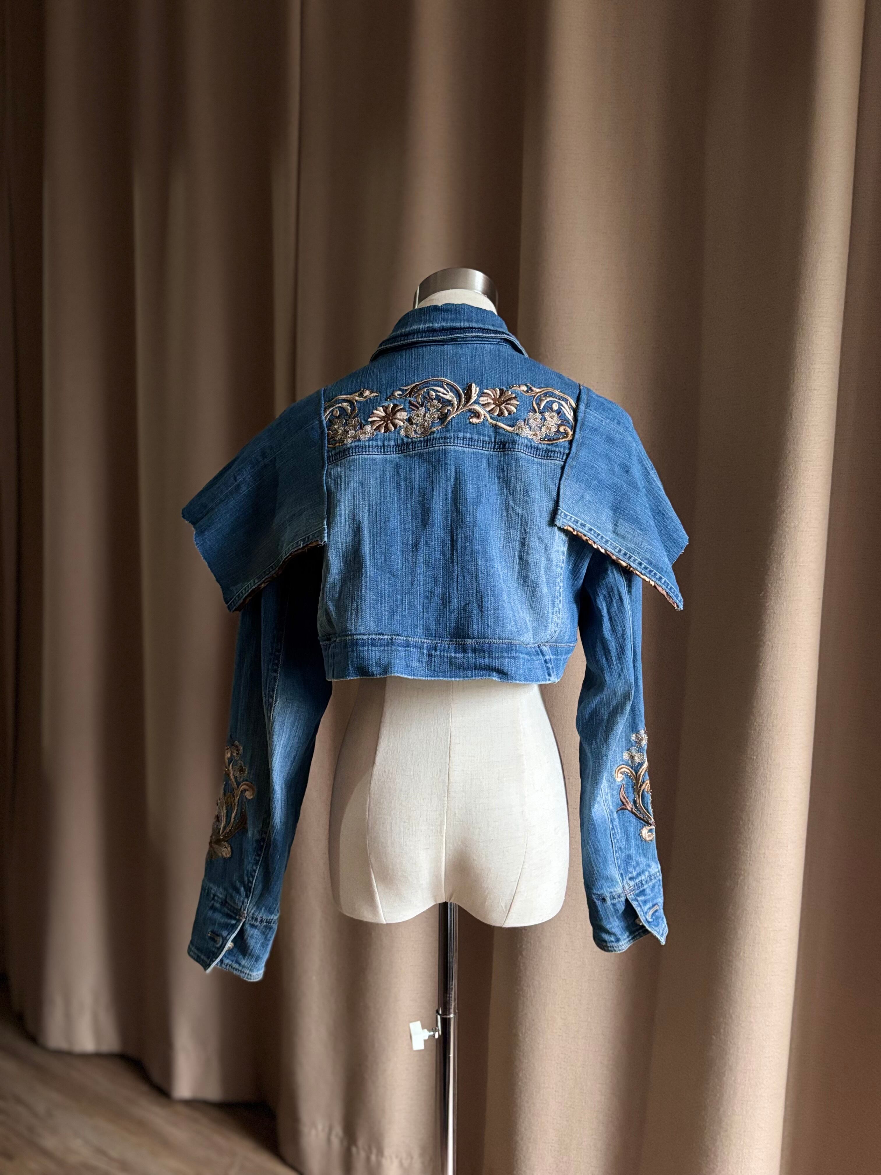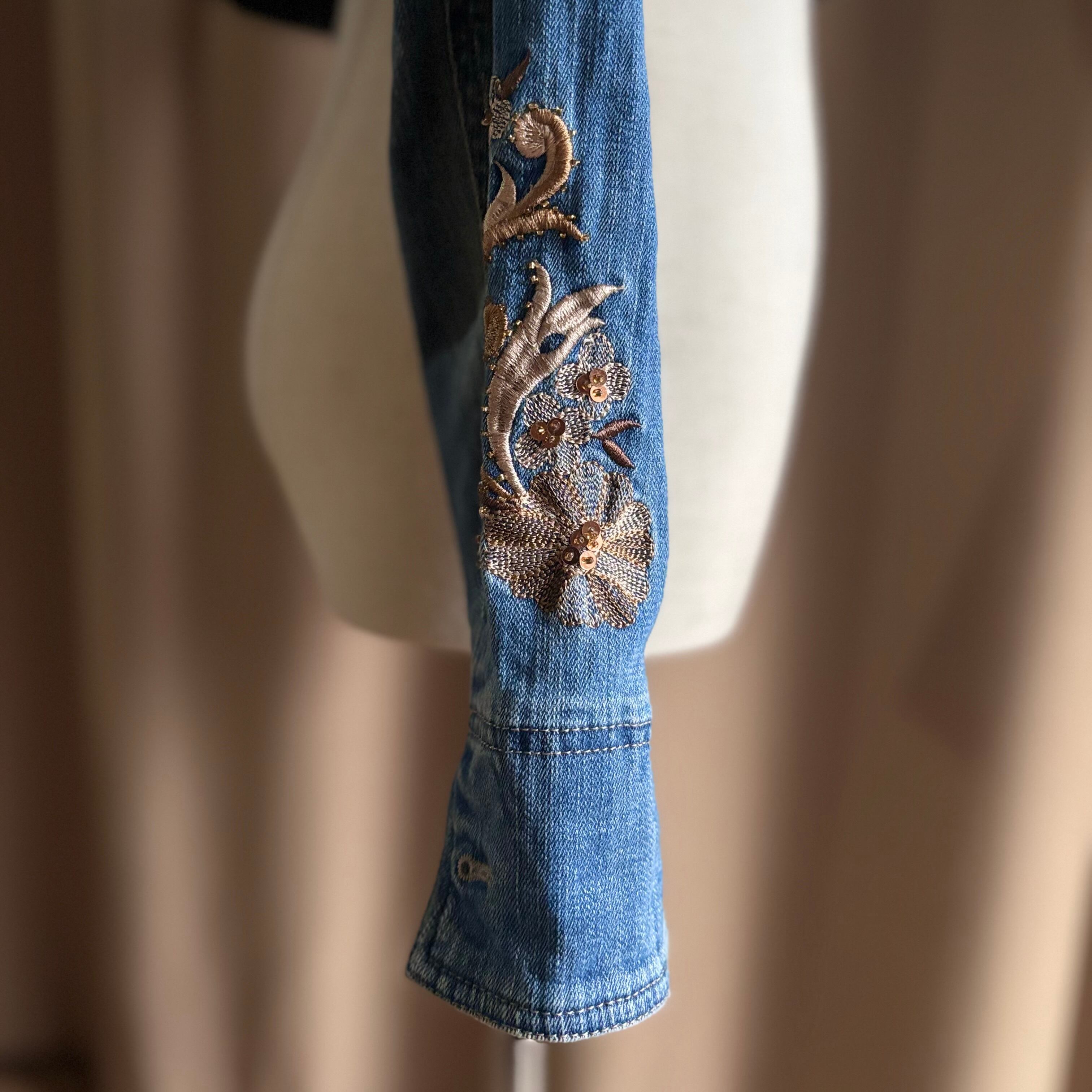 floral embroidery remake denim jacket-5075-11