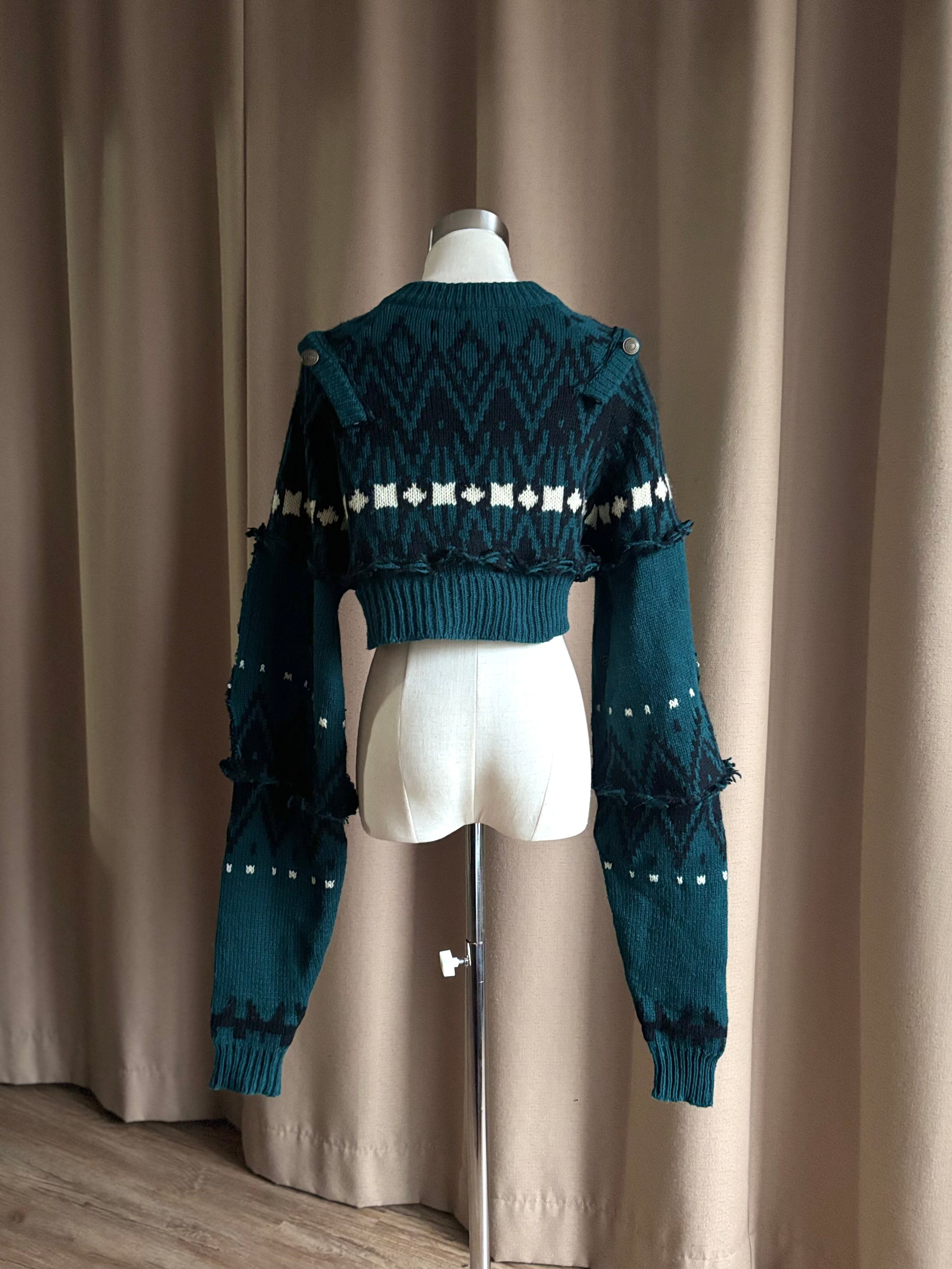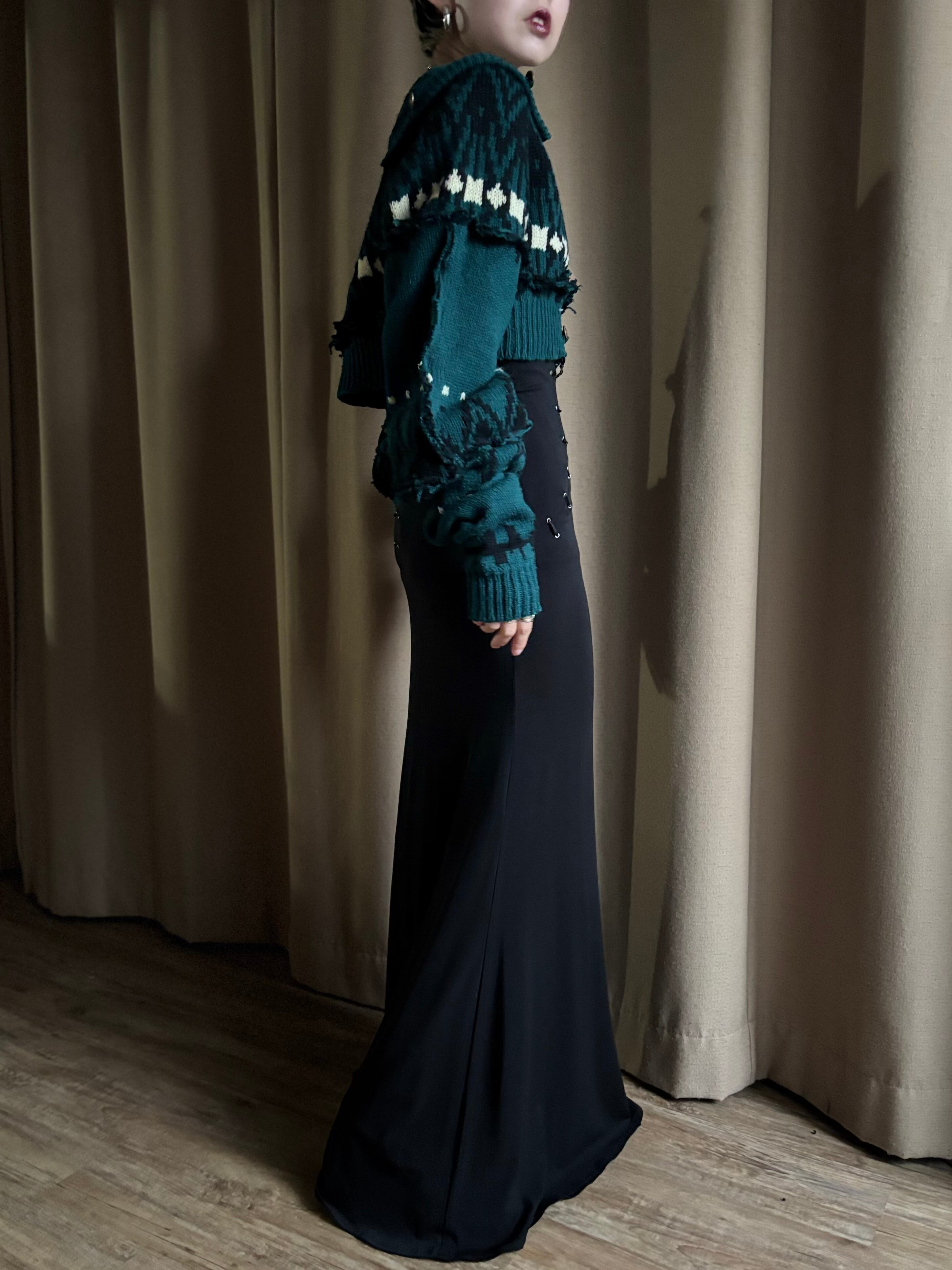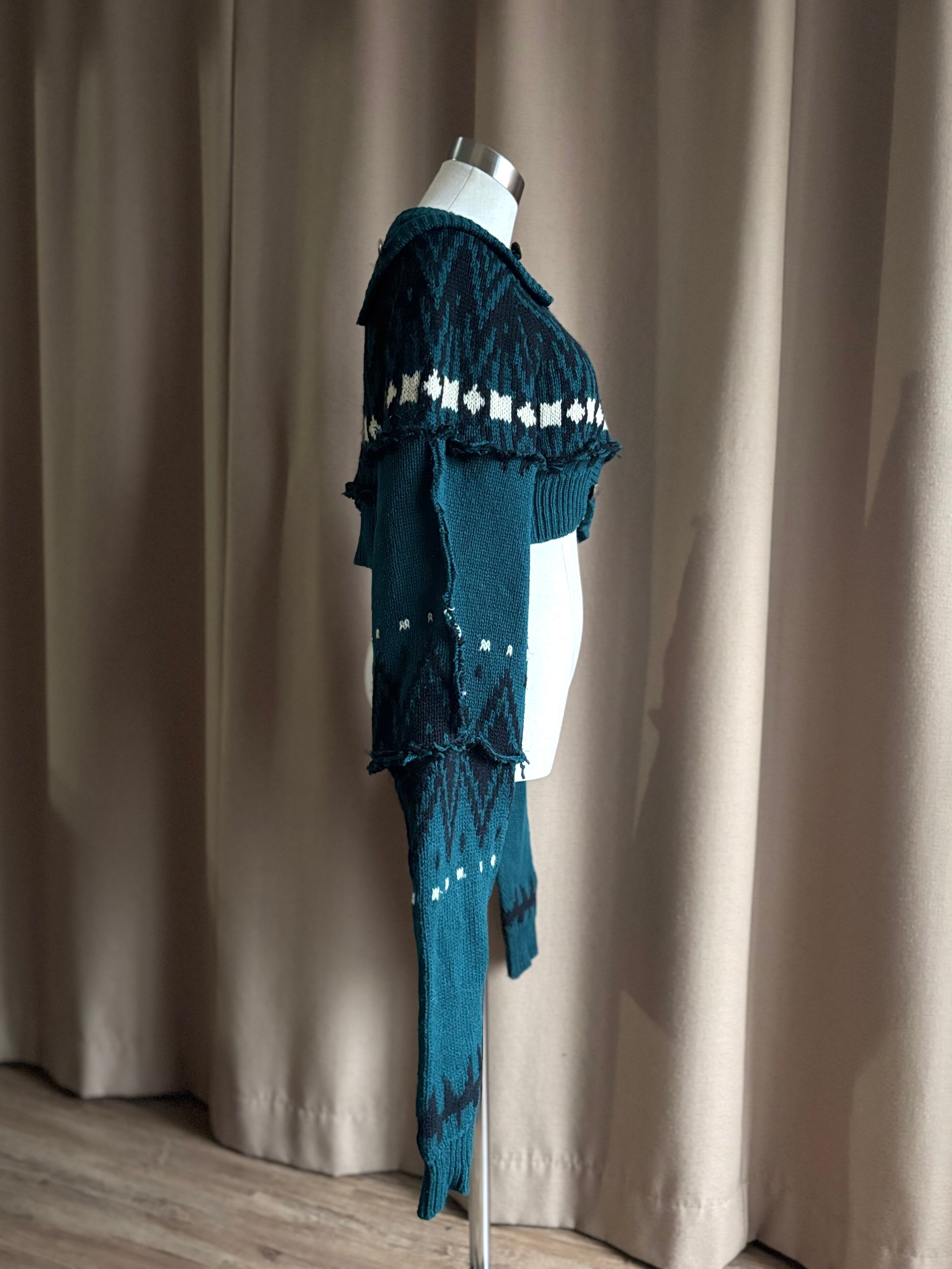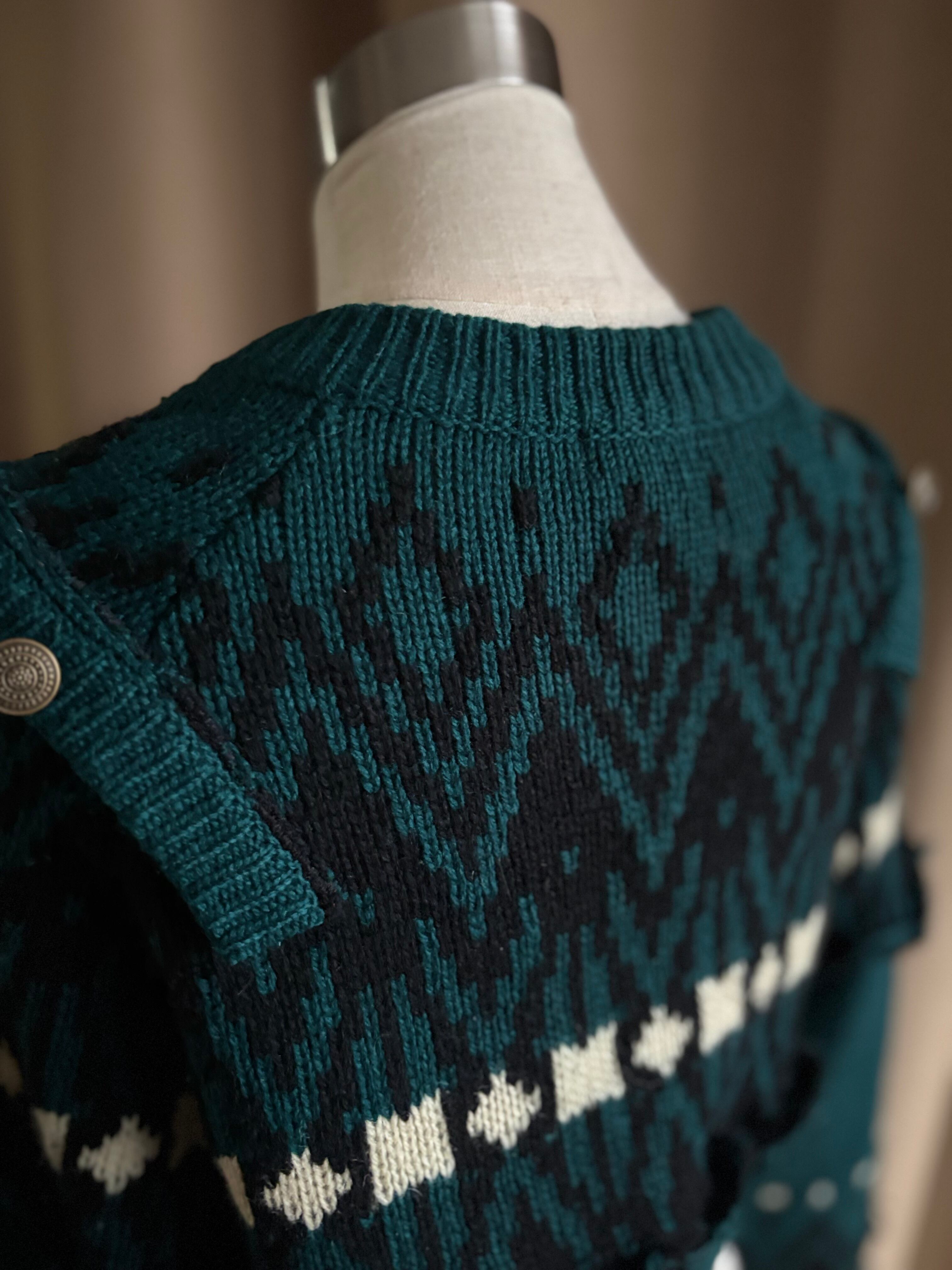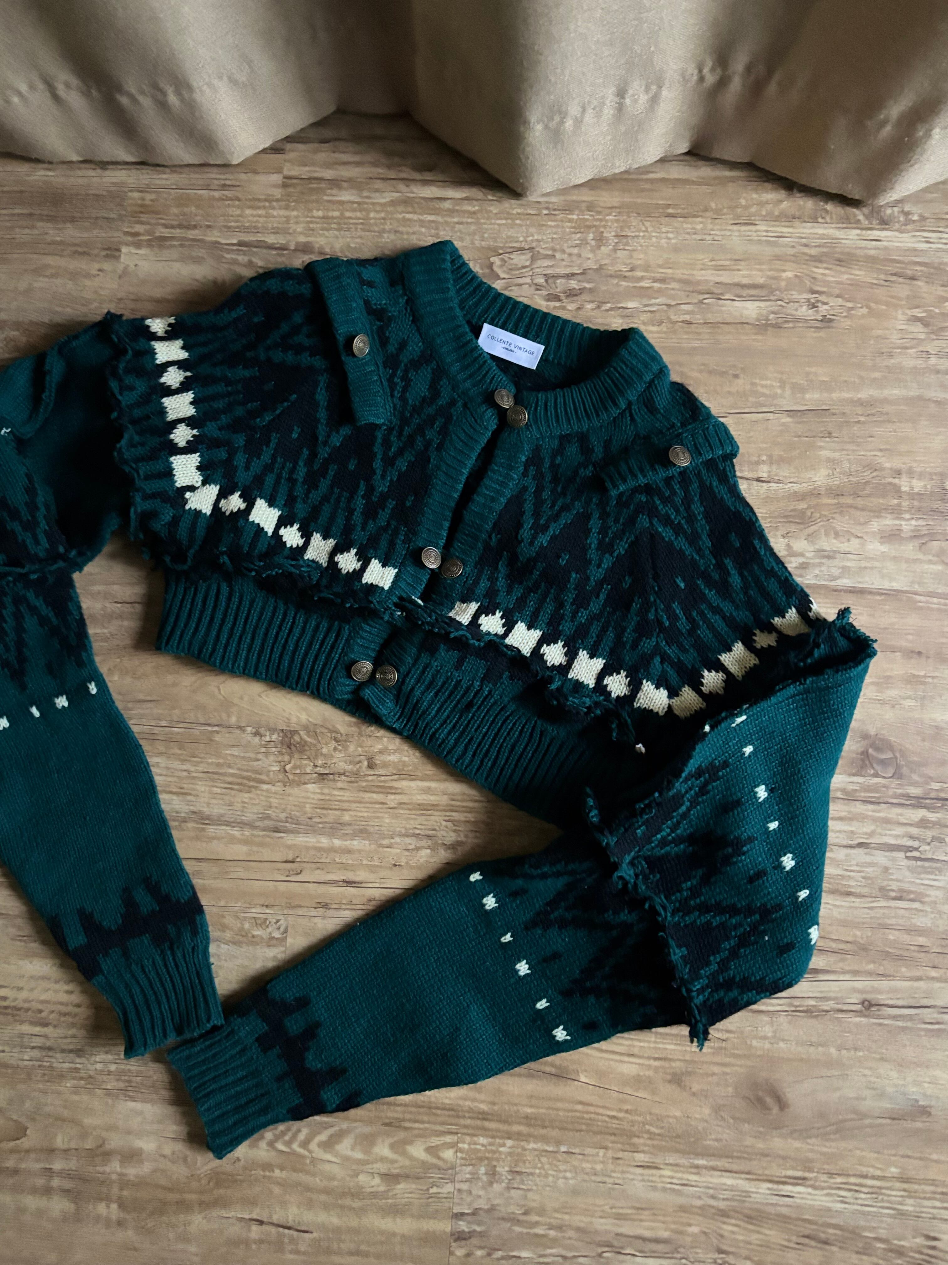 深みのあるグリーンが大人の魅力を放つリメイクニットカーディガン。
