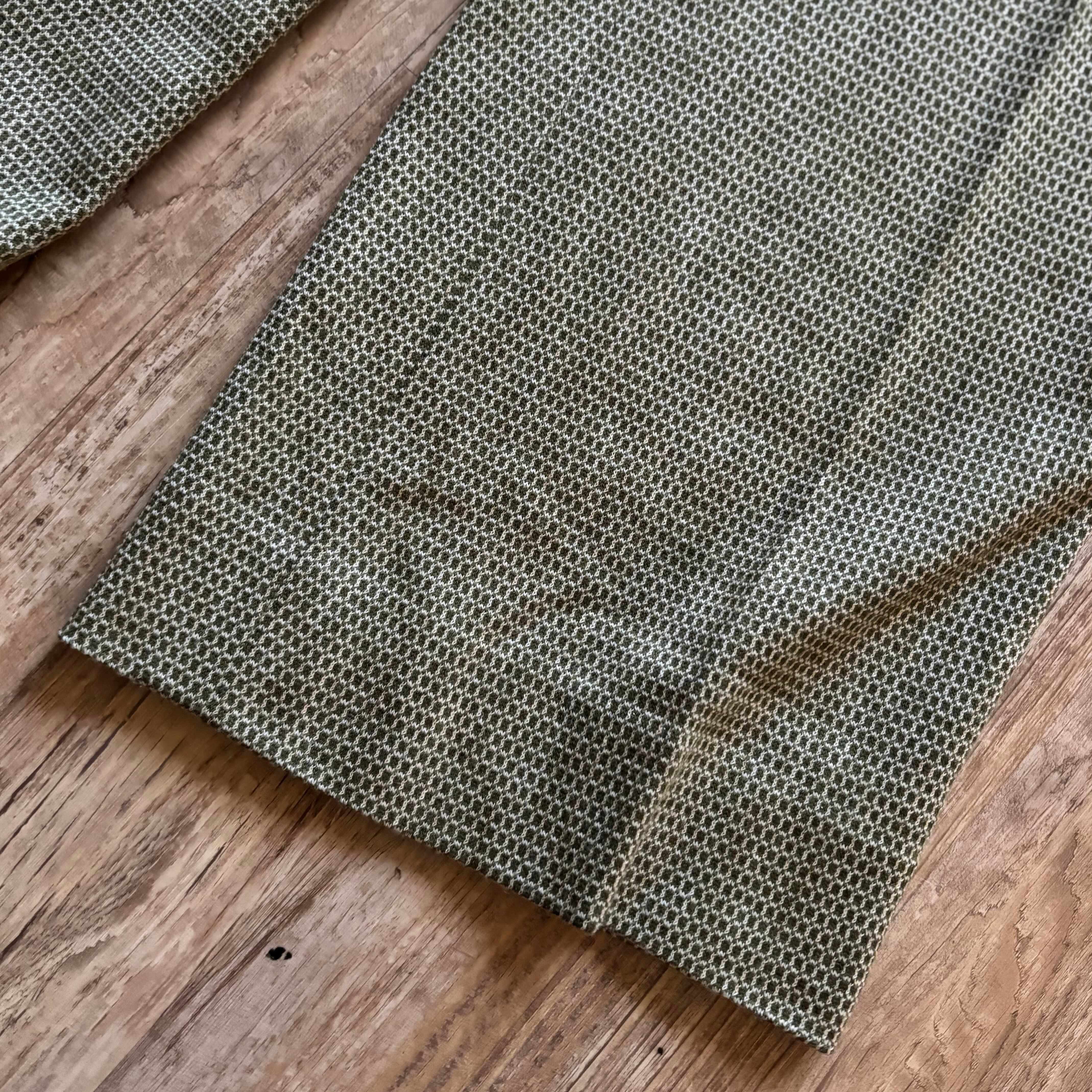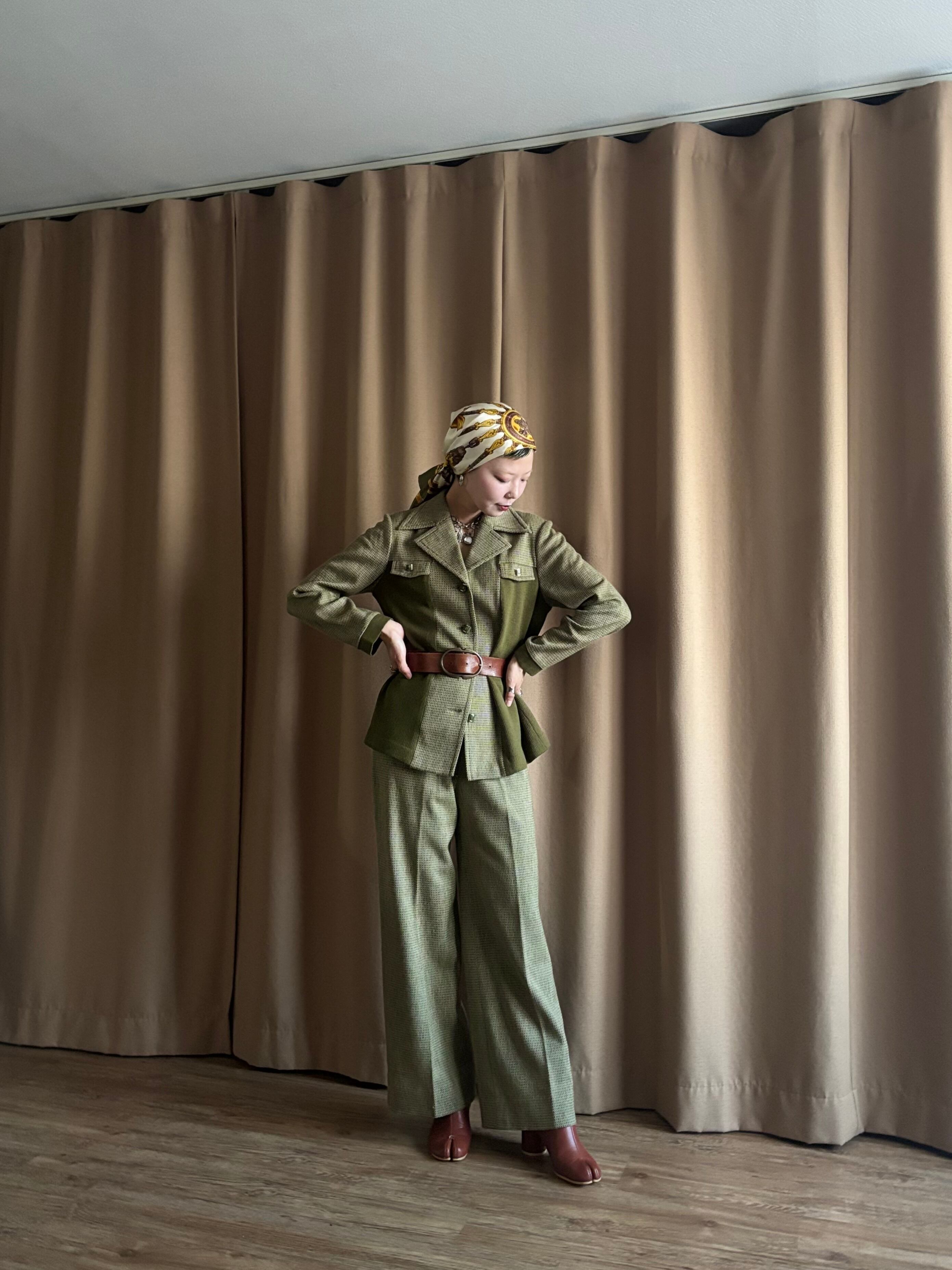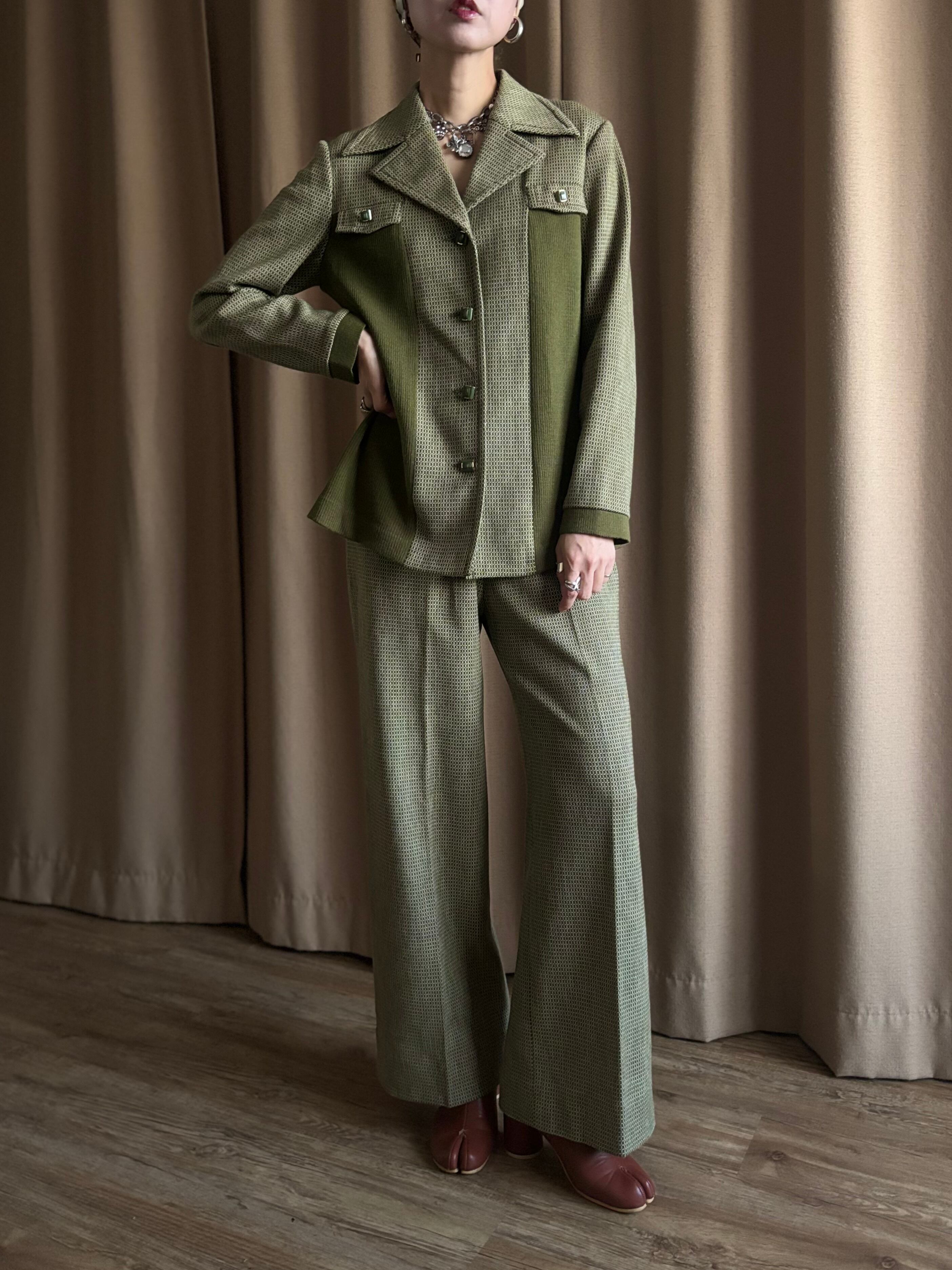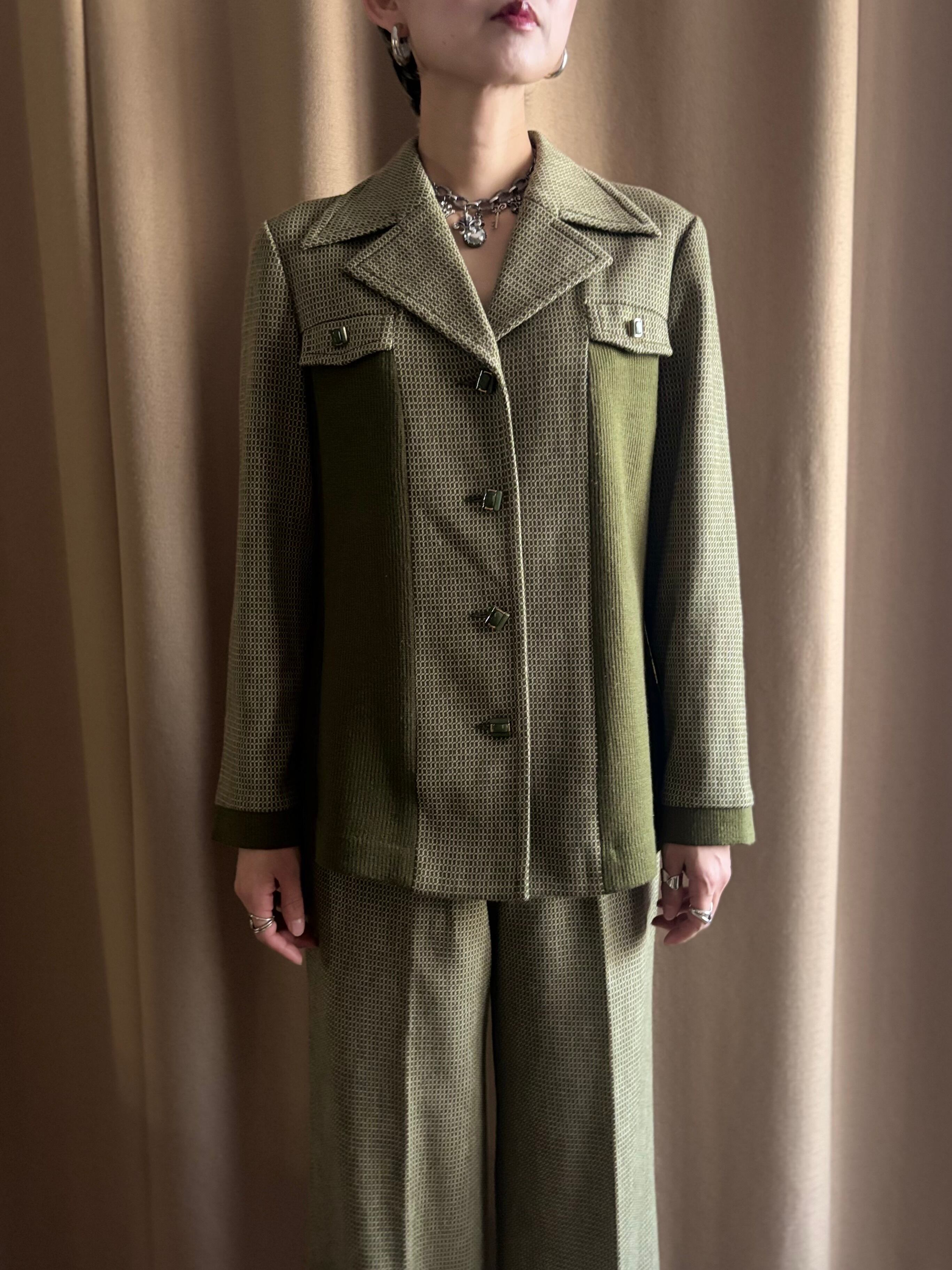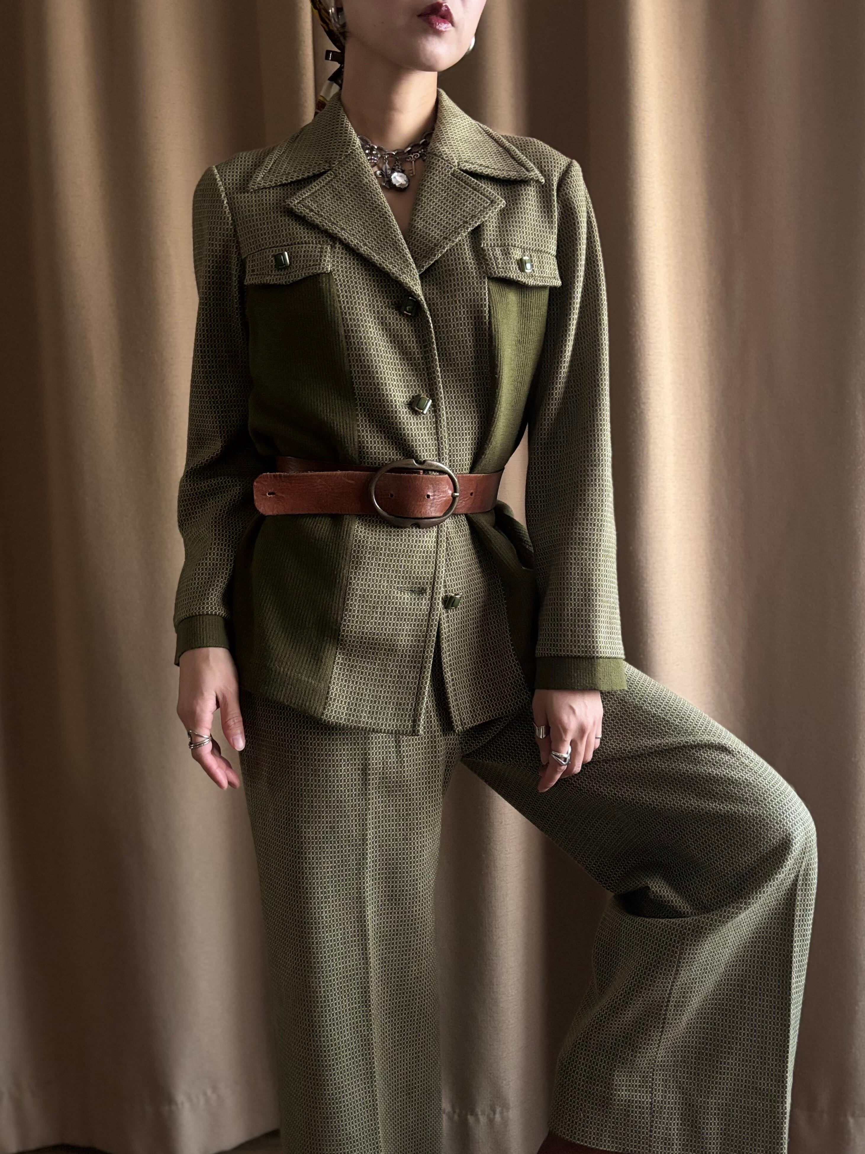 深みのあるオリーブトーンと細かなジャガード柄が大人レトロな逸品。