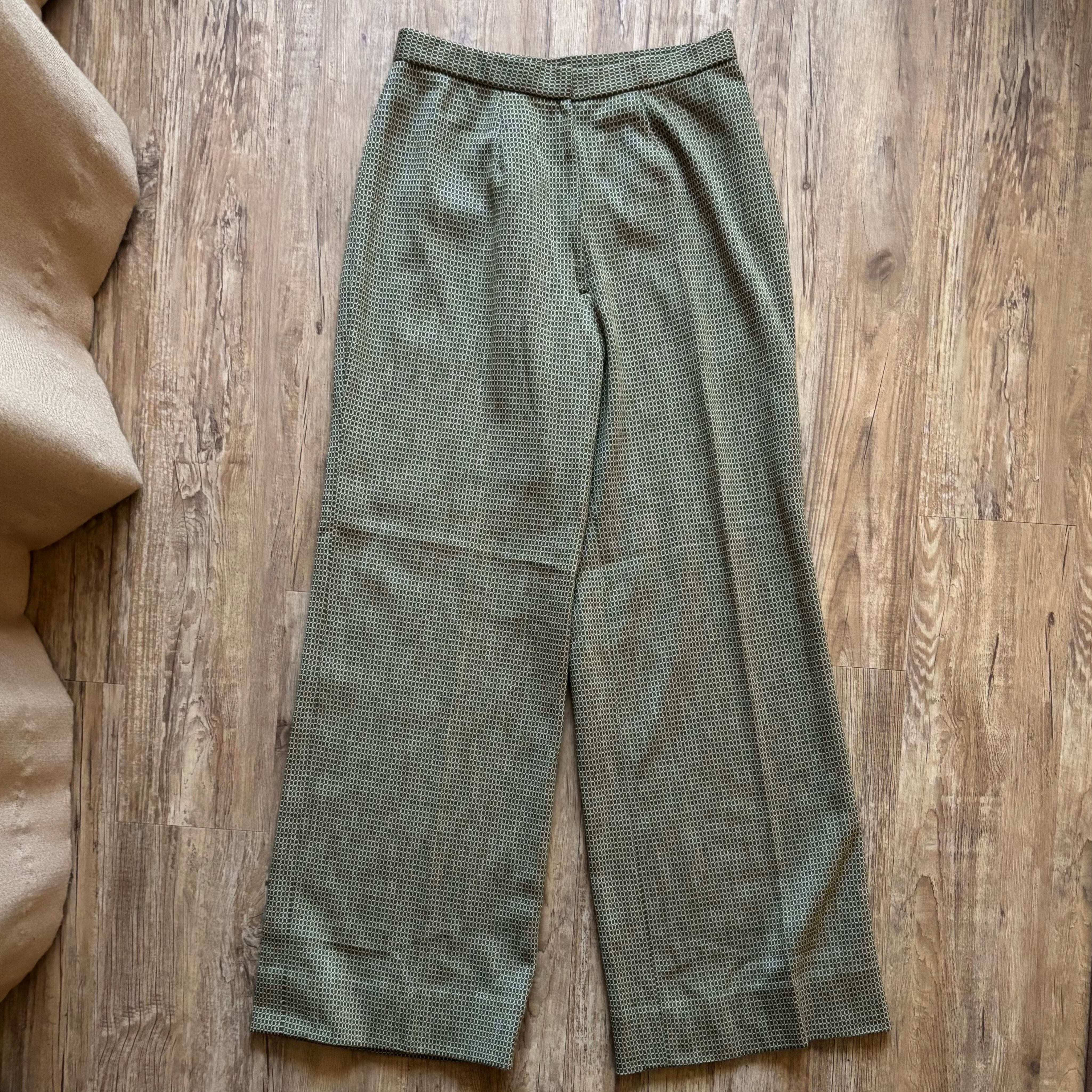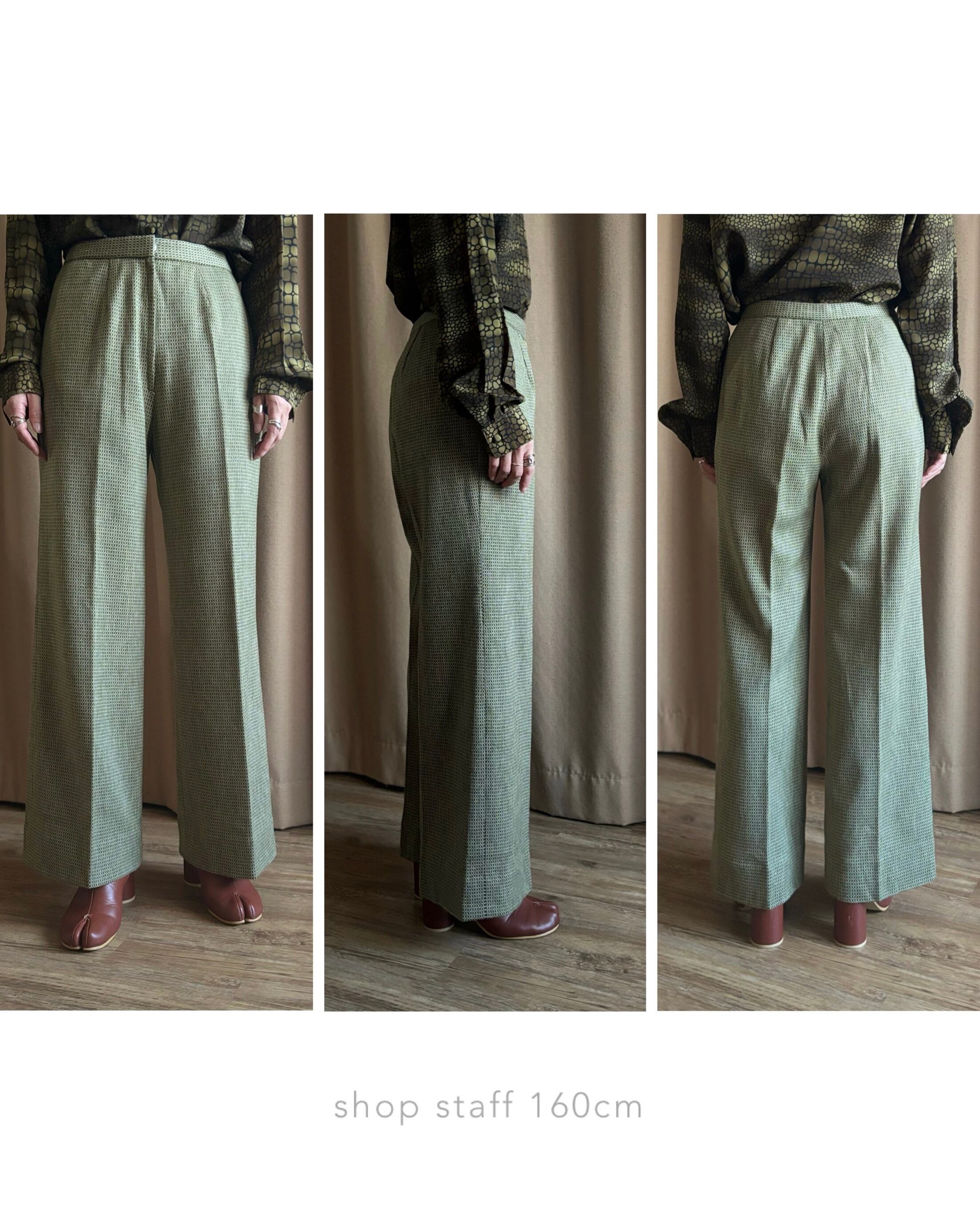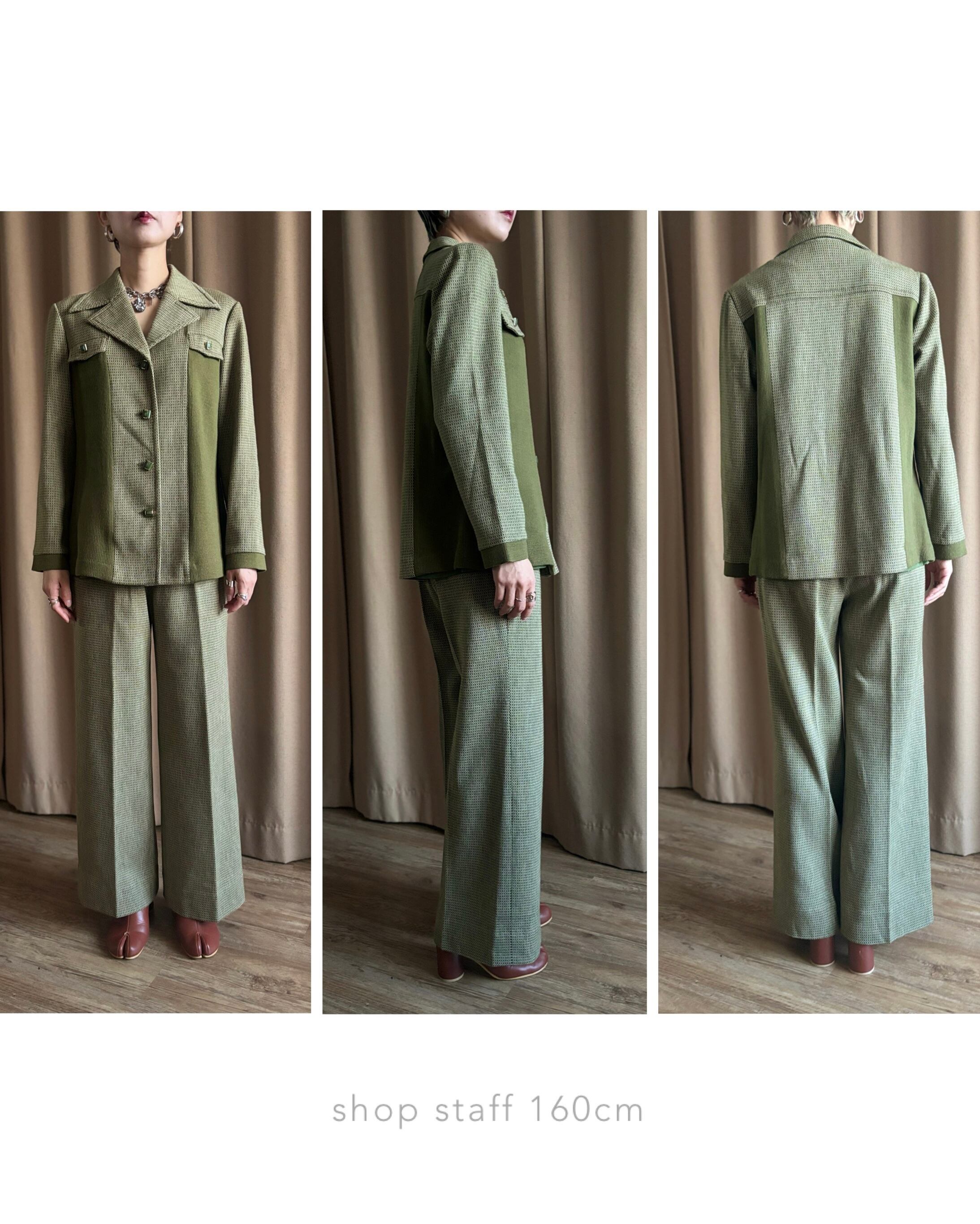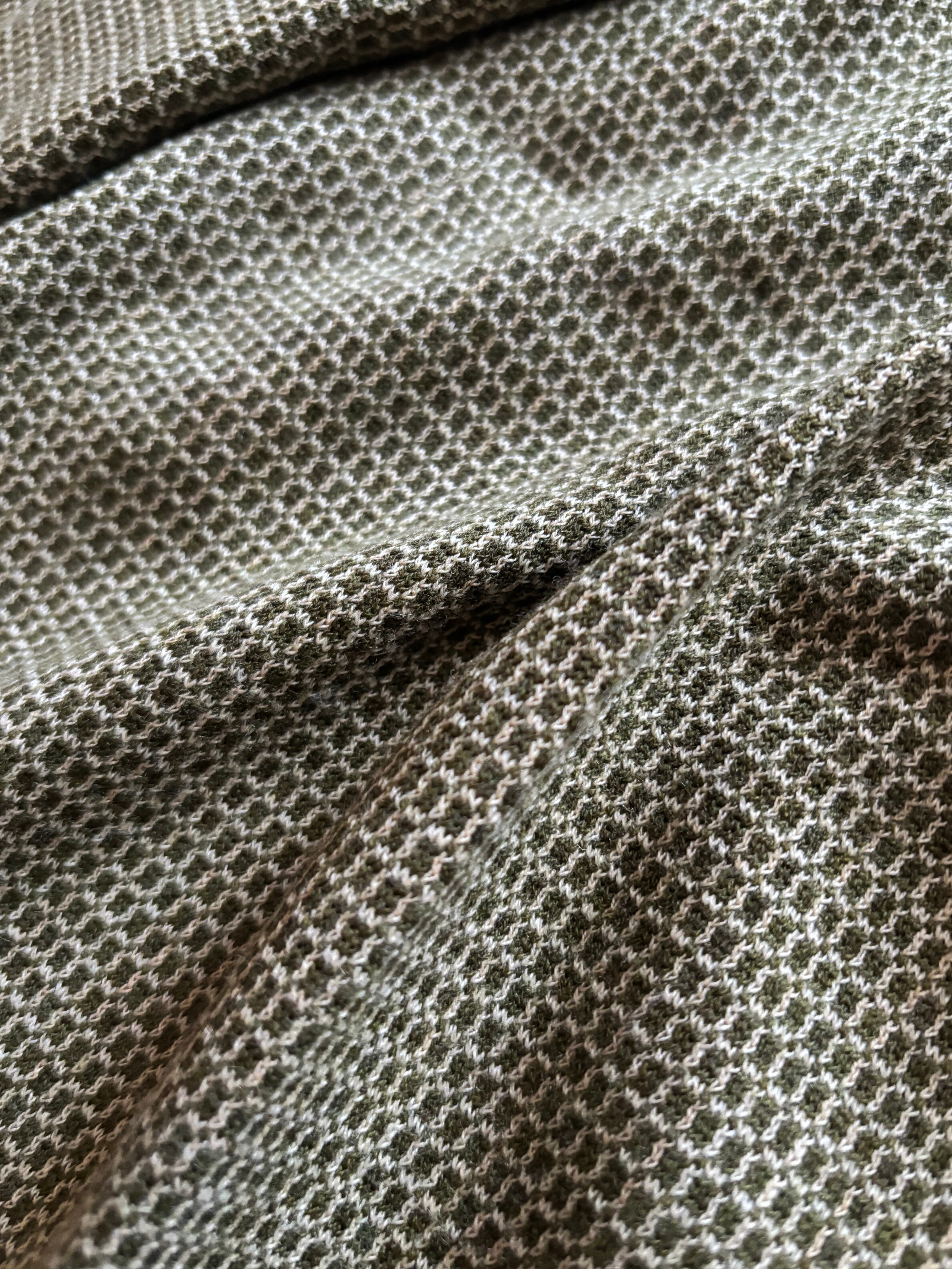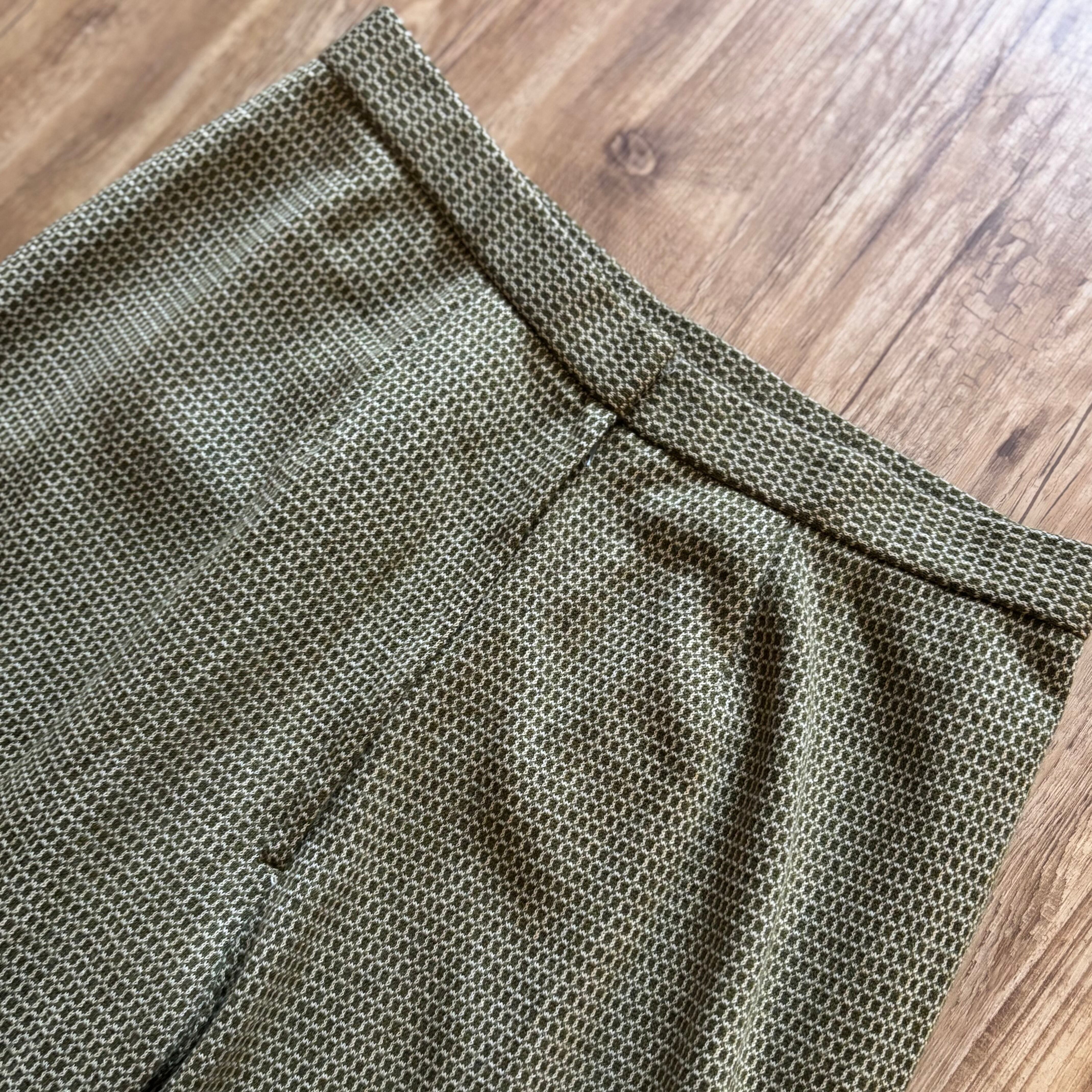 深みのあるオリーブトーンと細かなジャガード柄が大人レトロな逸品。