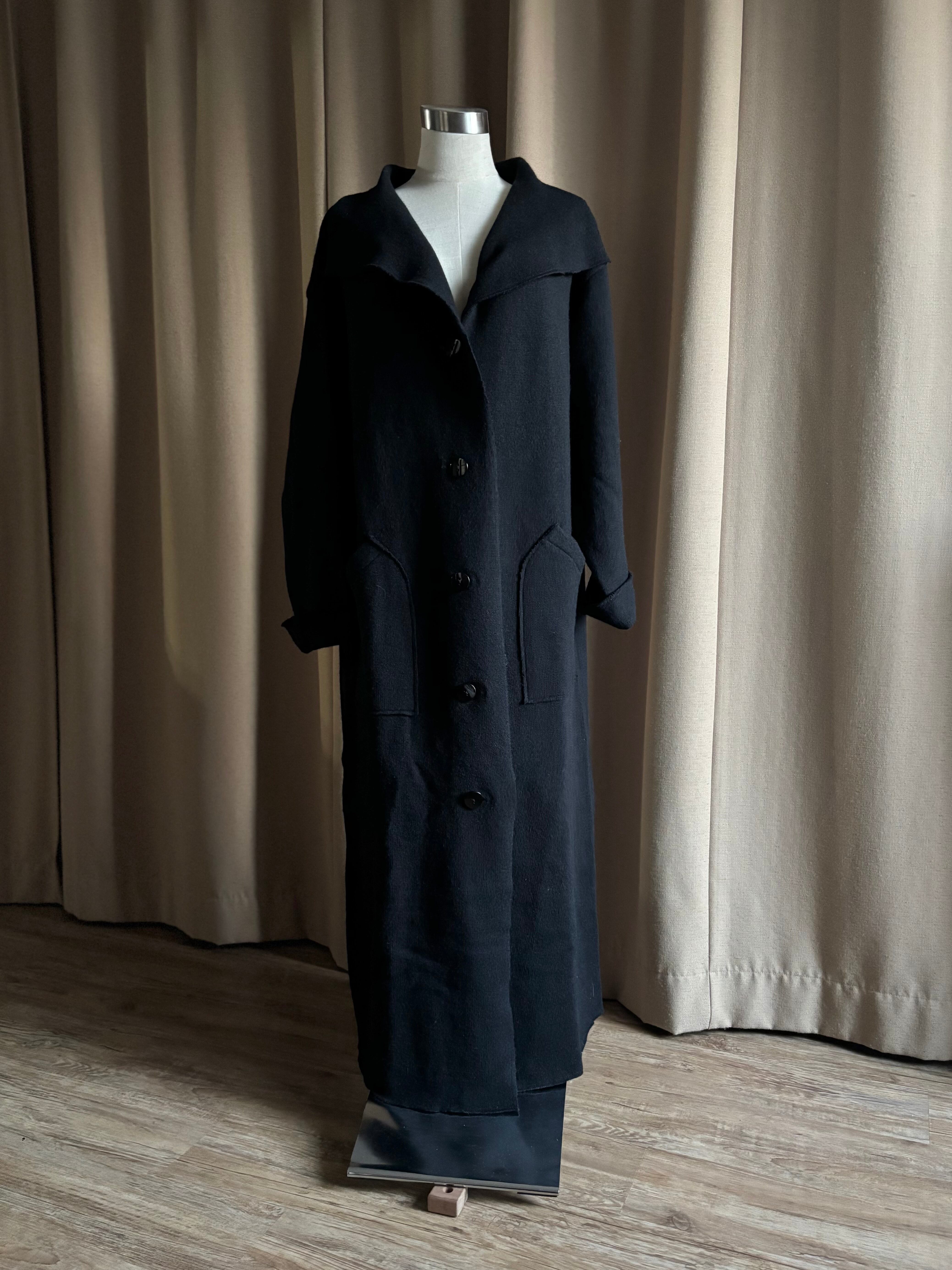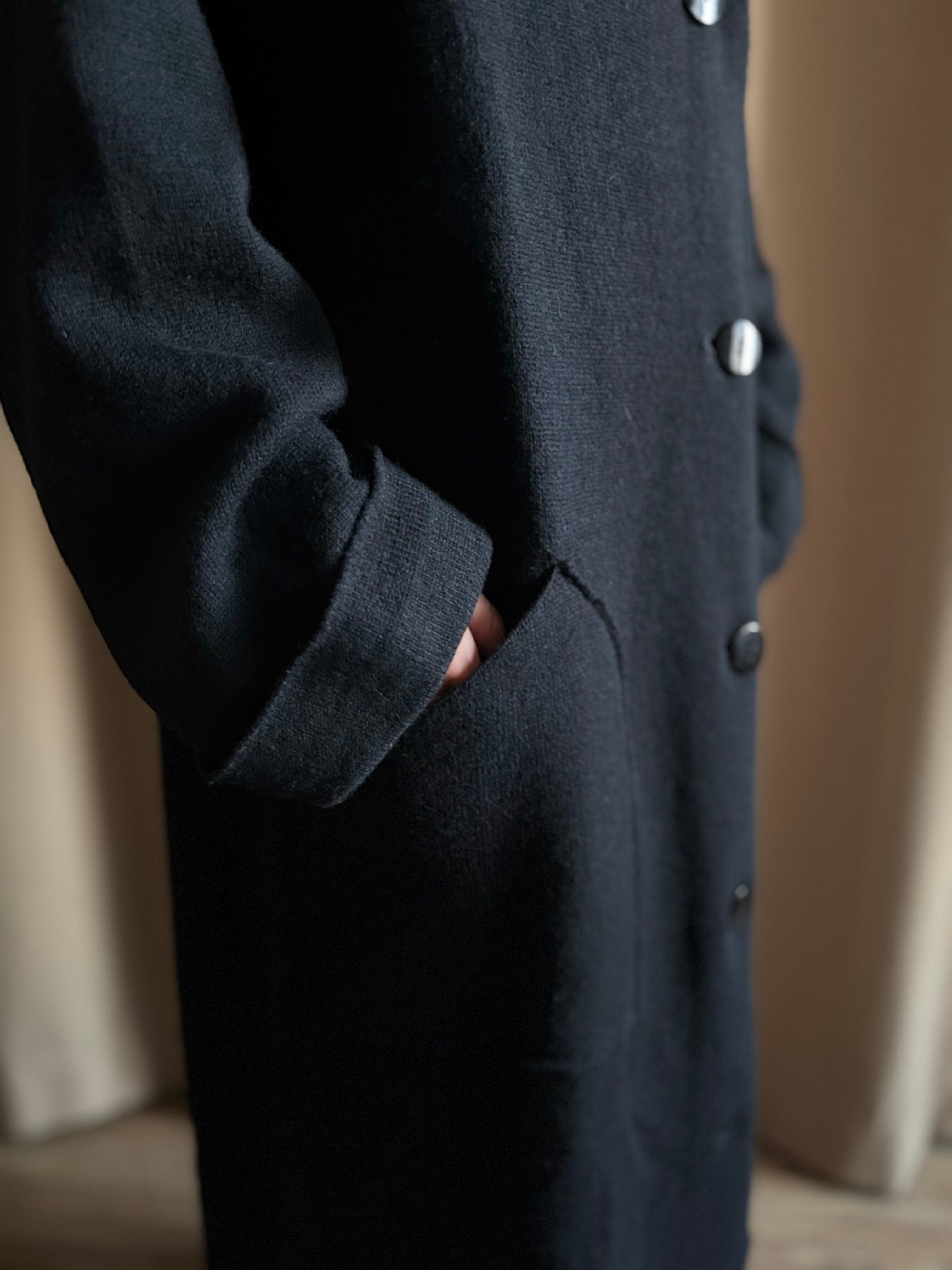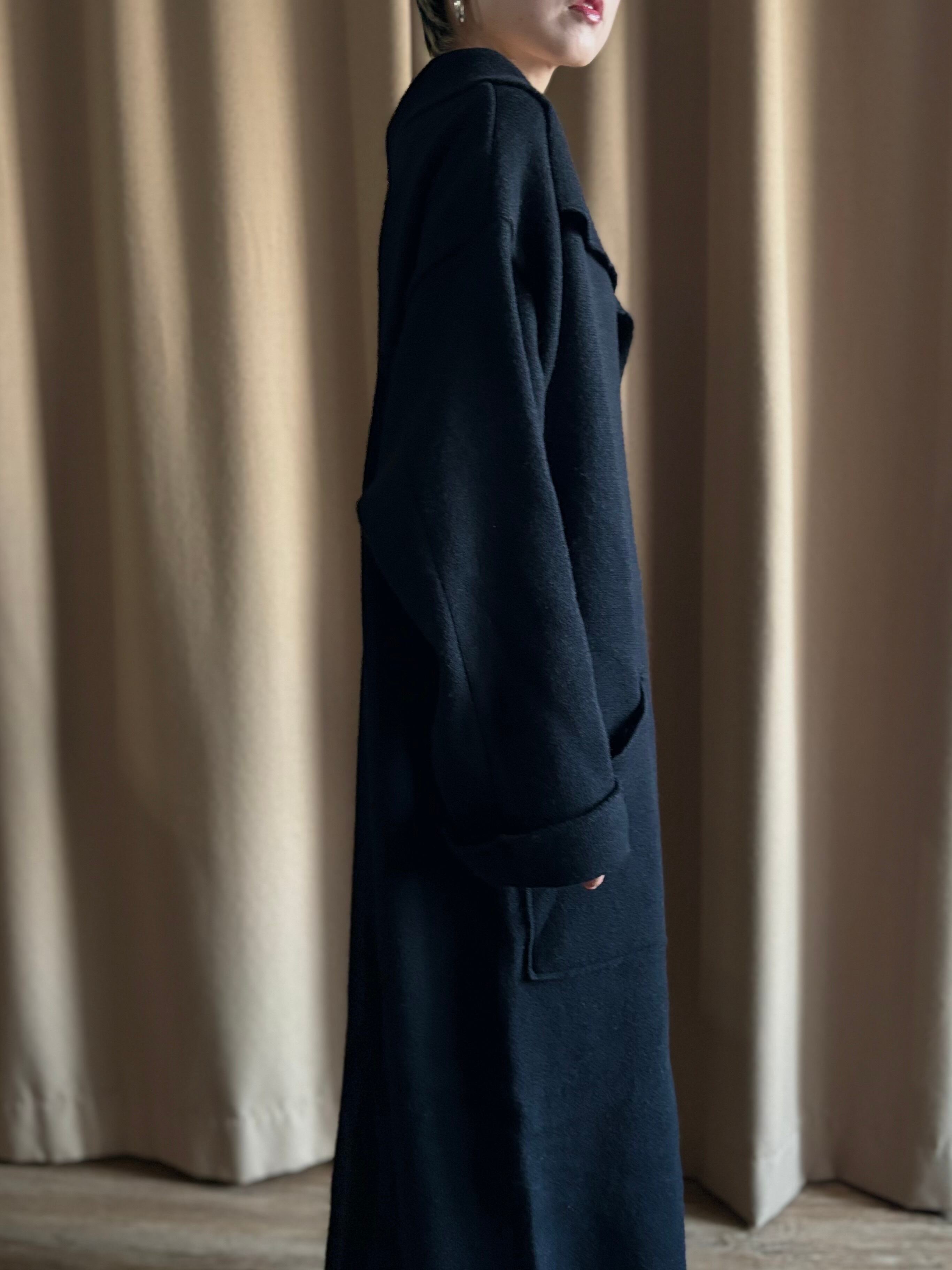 ウール100%使用でとても暖かく、コートでありながらカーディガンのようなリラックス感も与えてくれる拘りのファブリックが魅力。