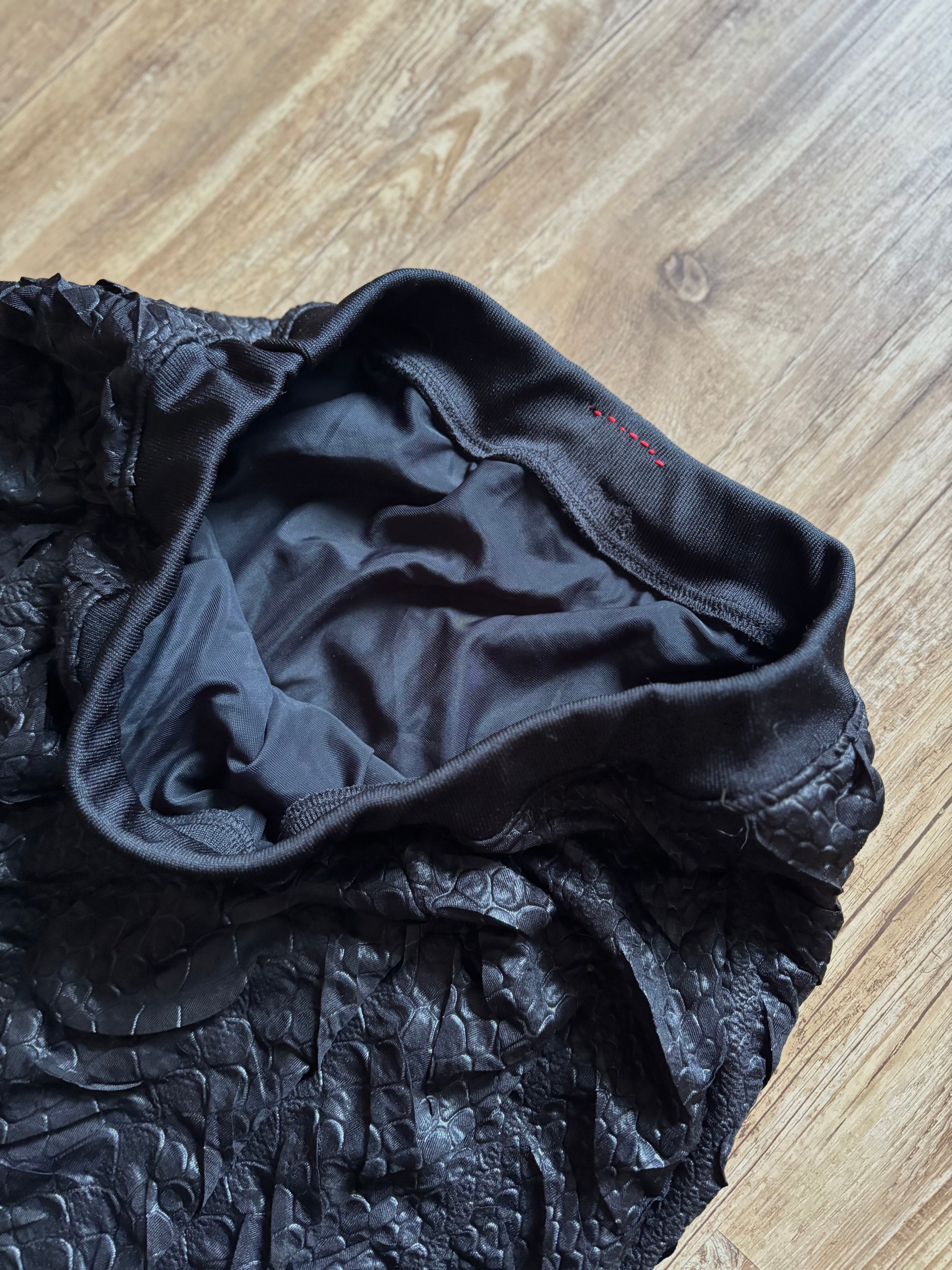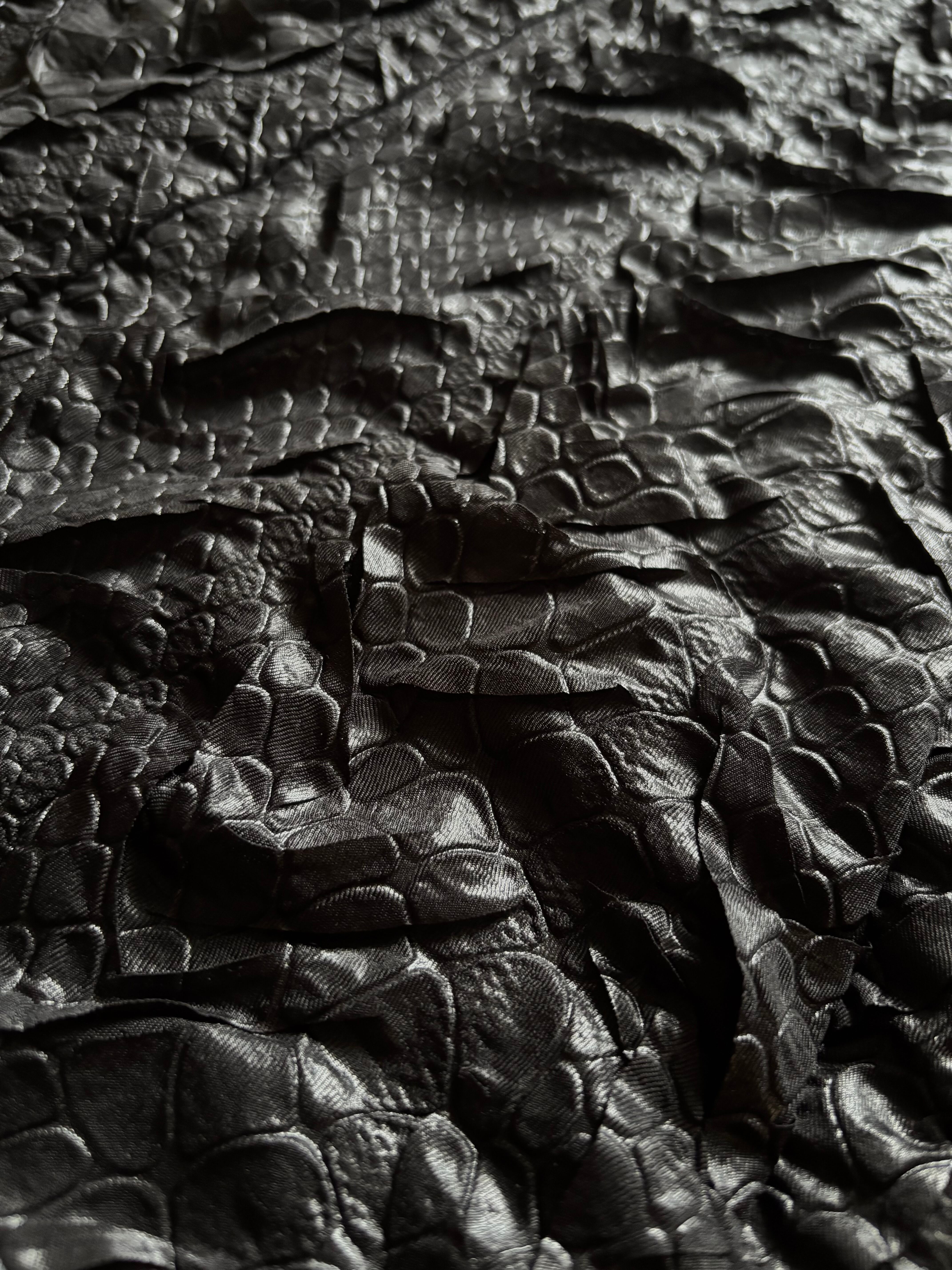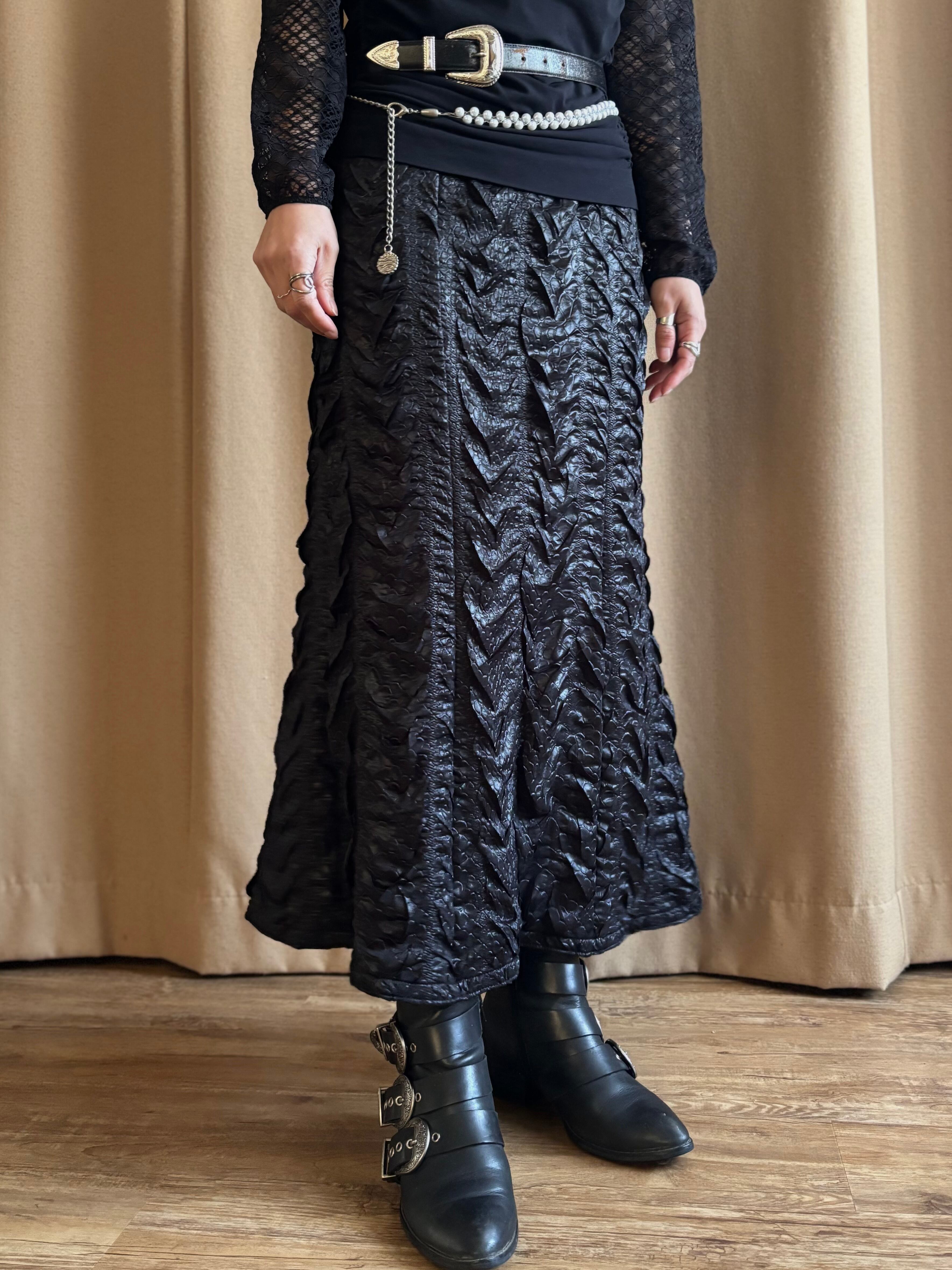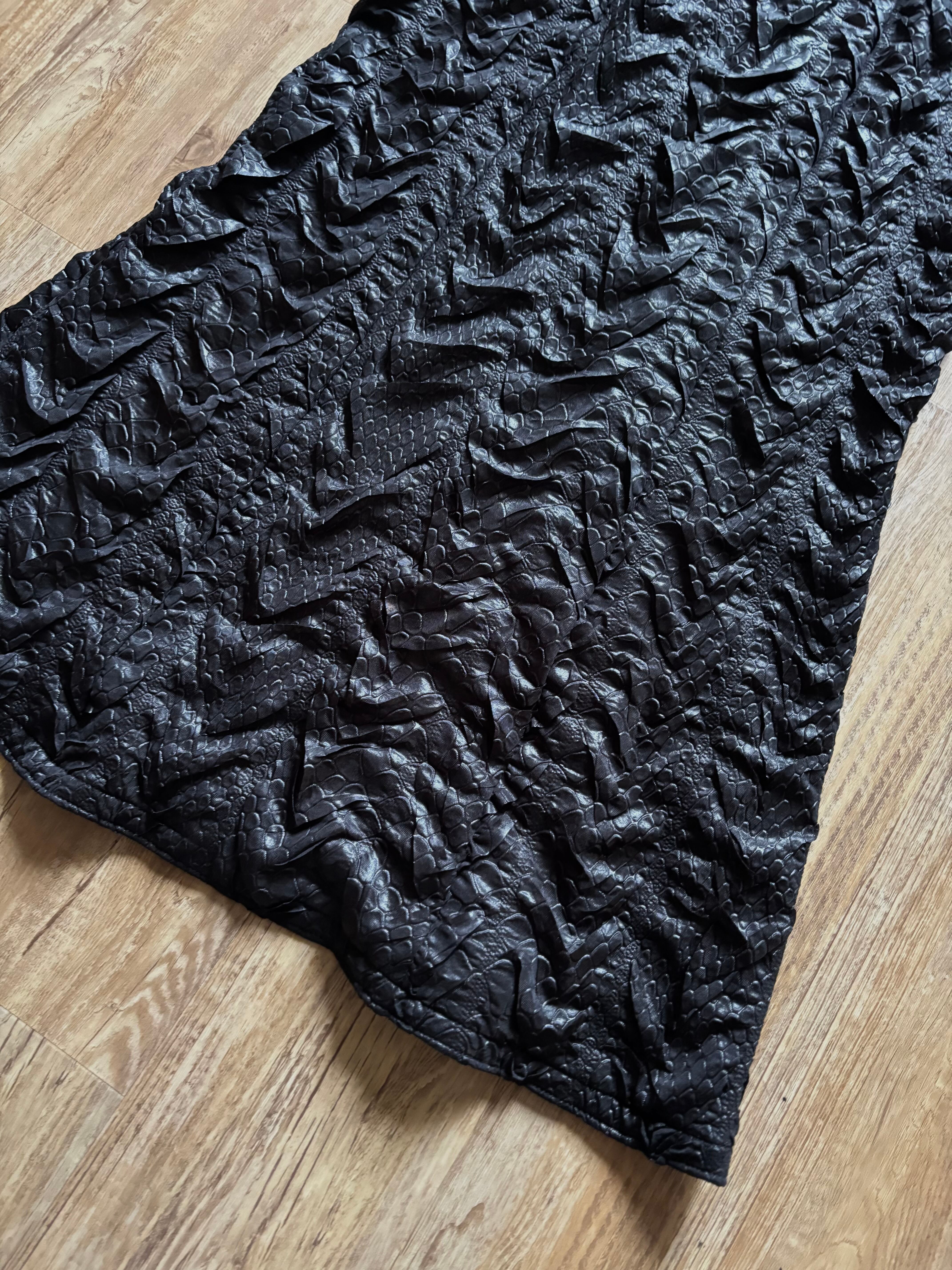 深みのあるブラックに、エンボス加工が施された構築的なファブリックが他にはない逸品。