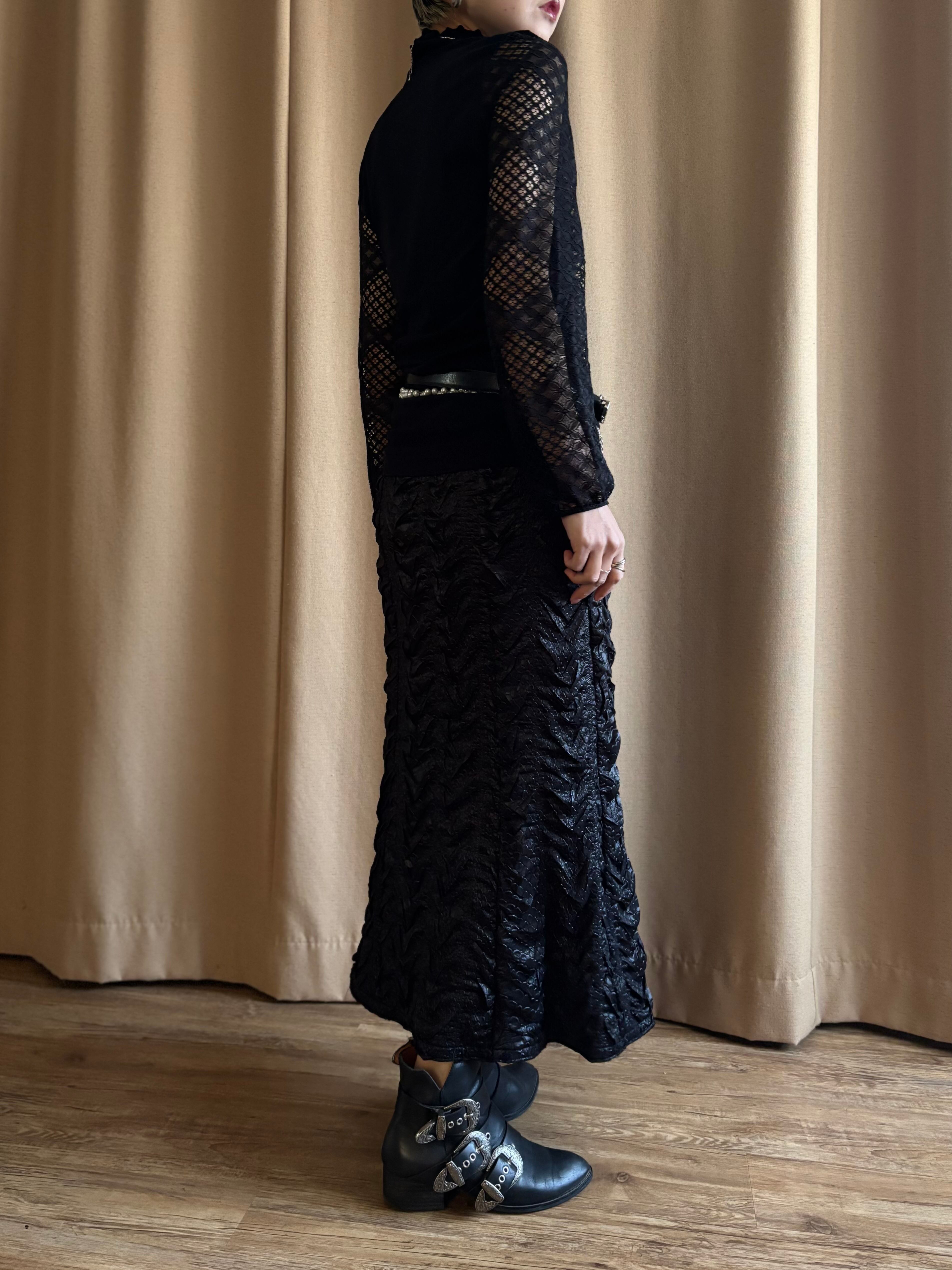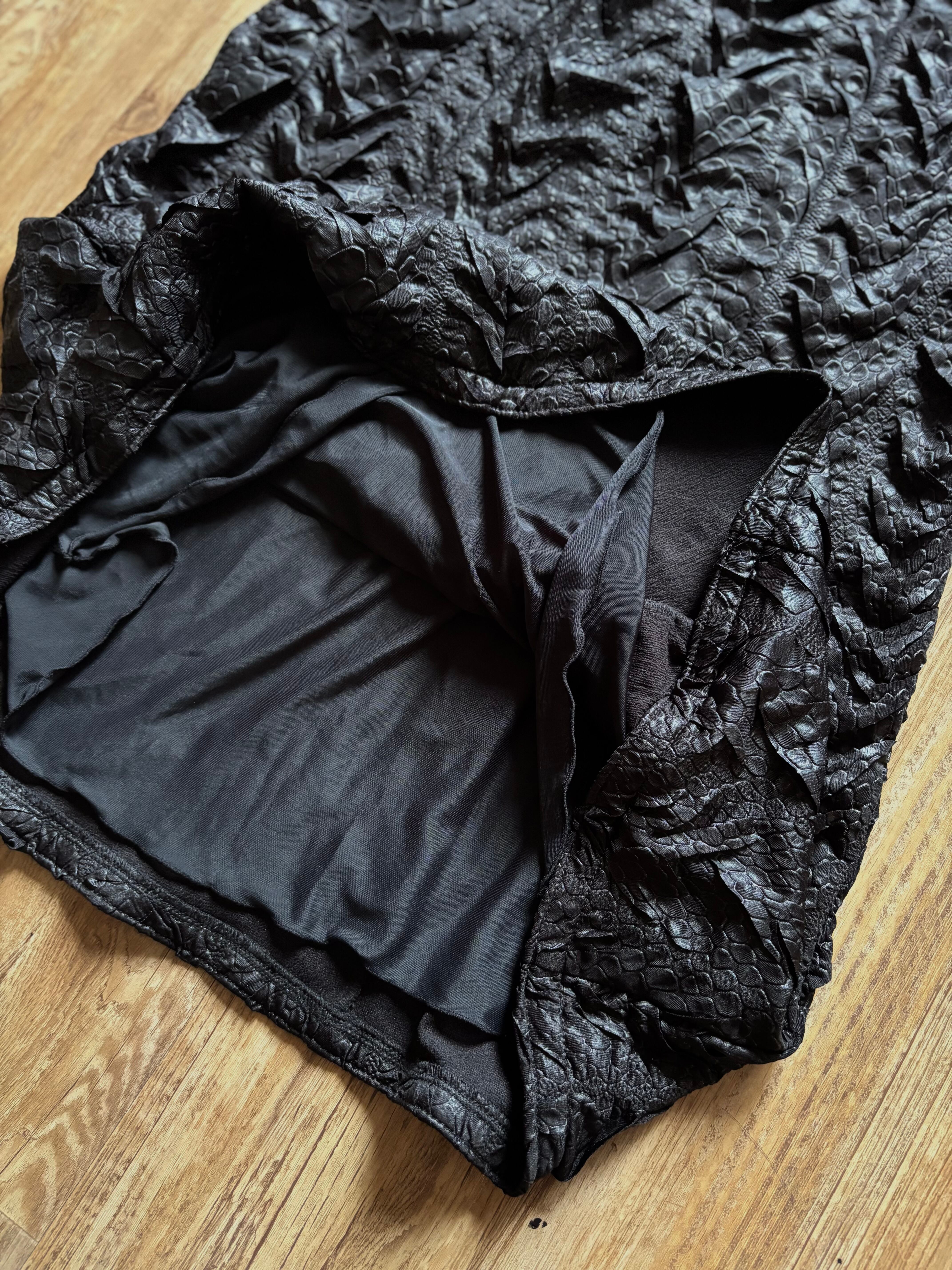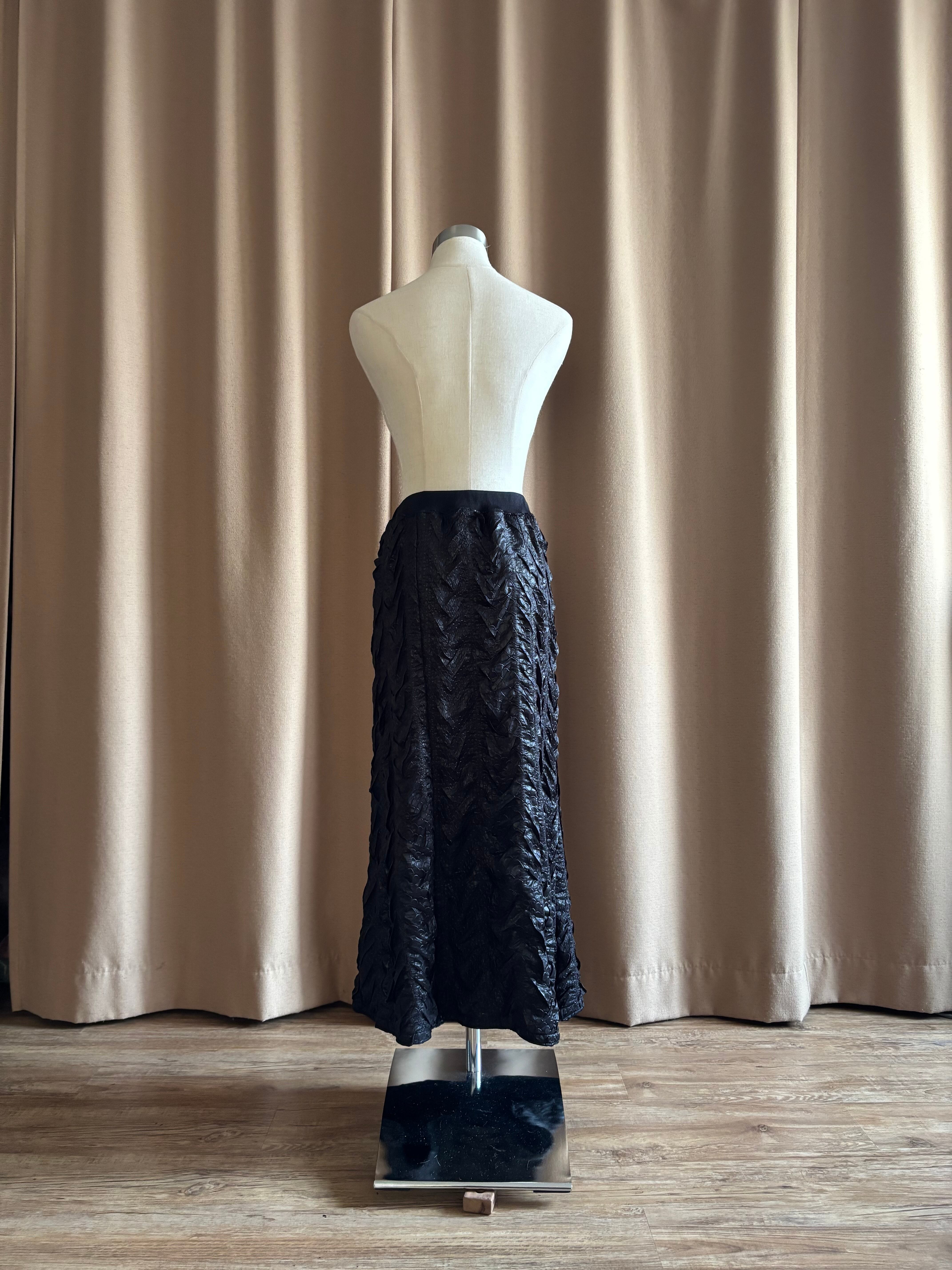 深みのあるブラックに、エンボス加工が施された構築的なファブリックが他にはない逸品。