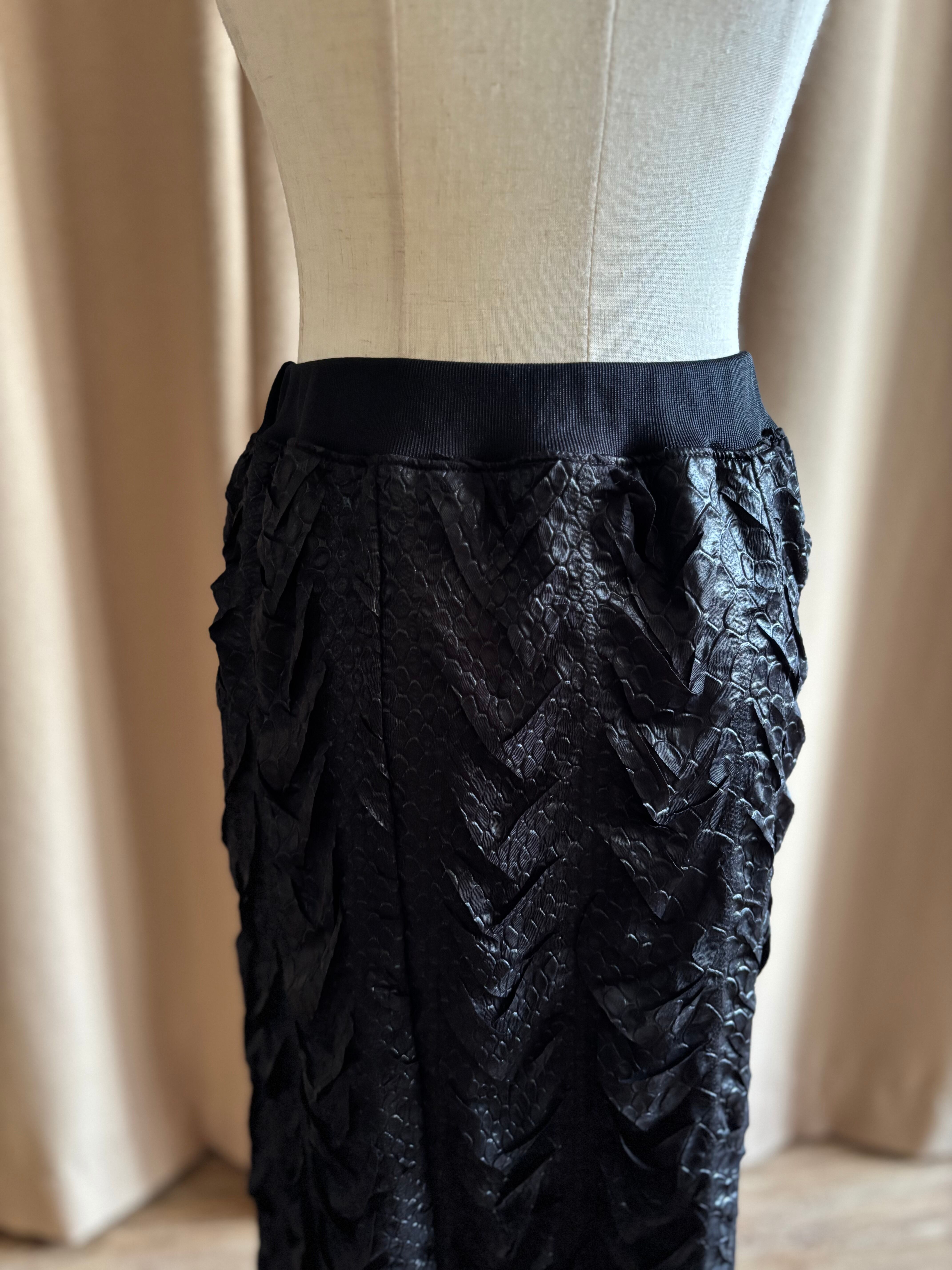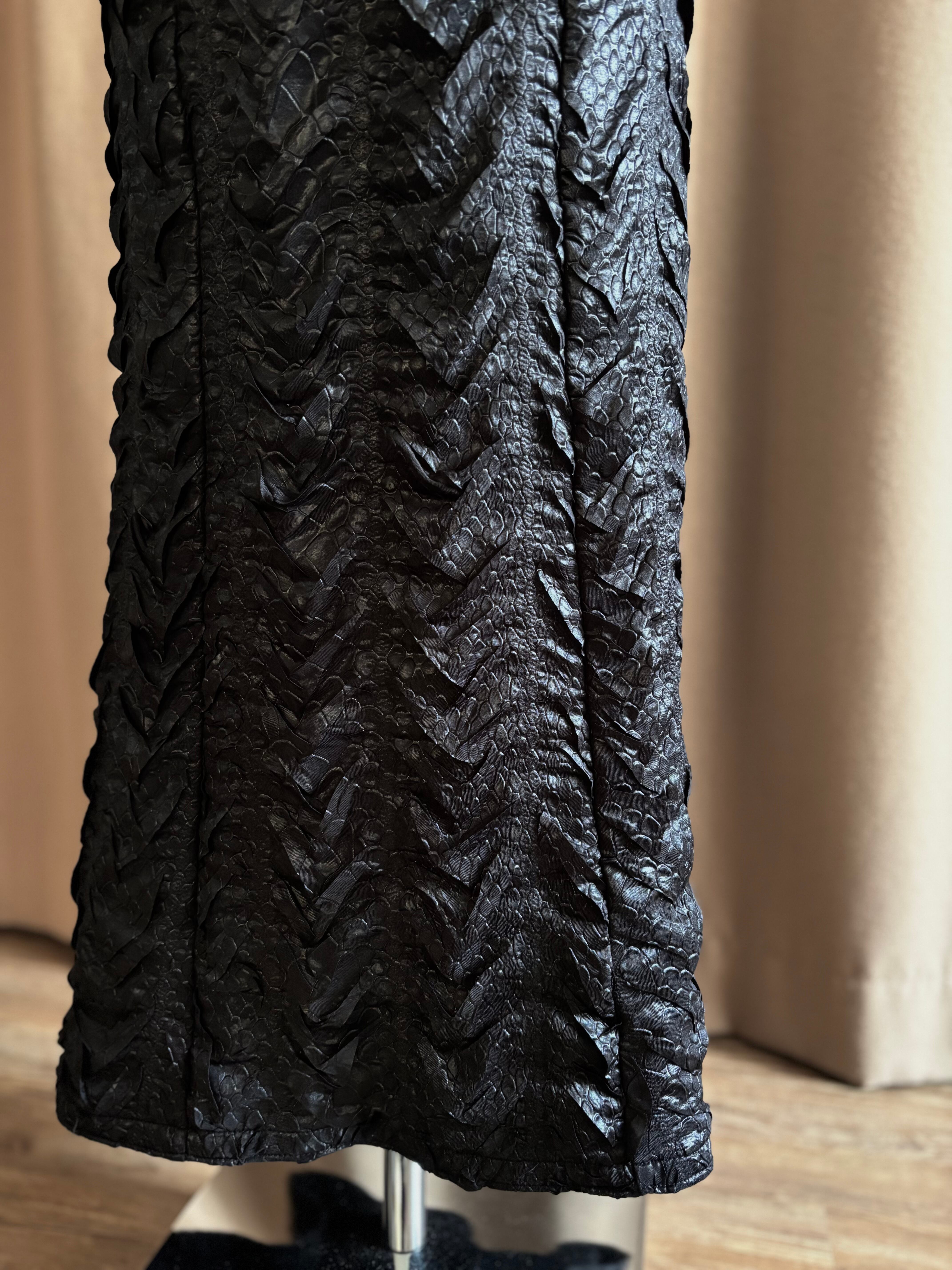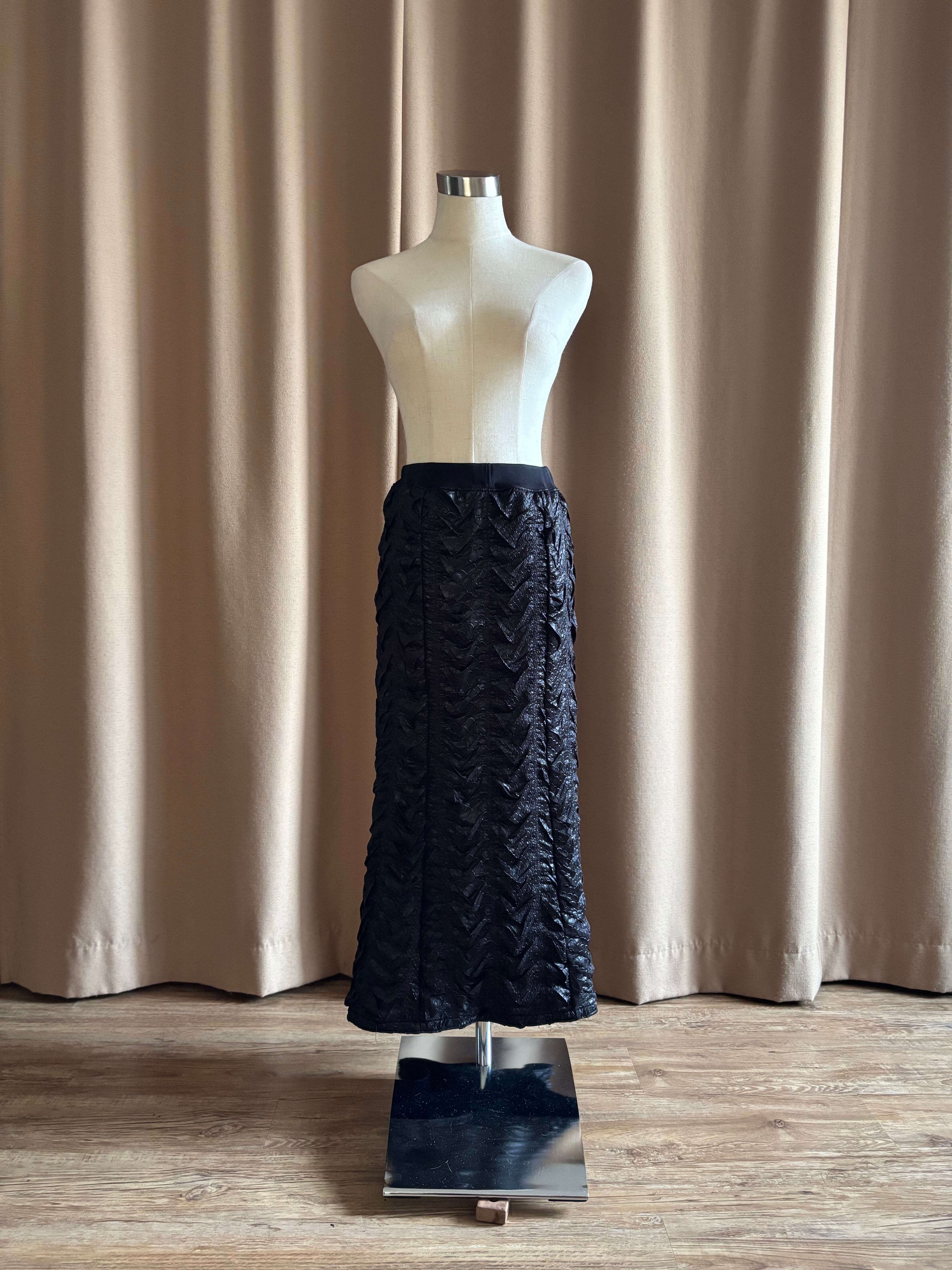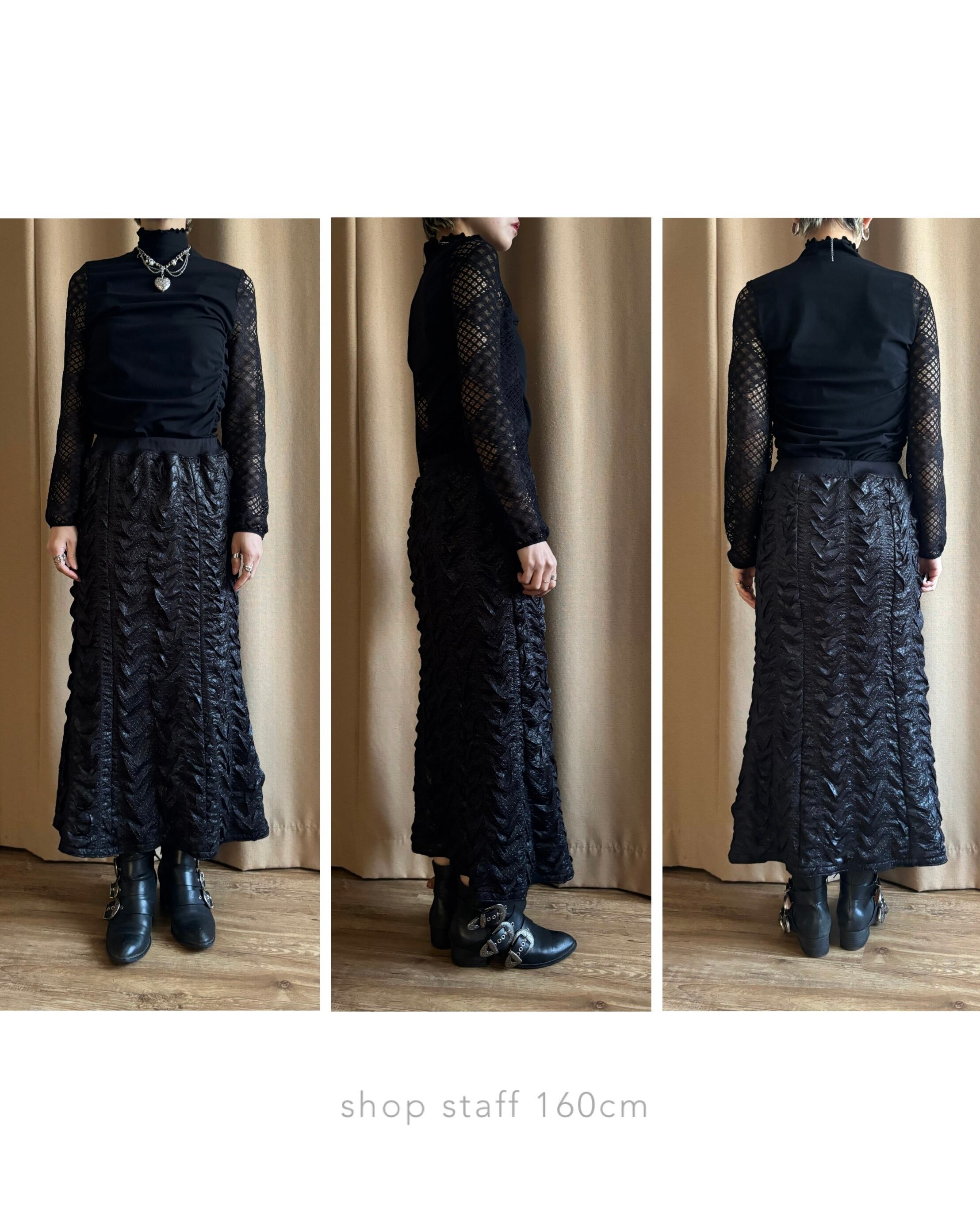 深みのあるブラックに、エンボス加工が施された構築的なファブリックが他にはない逸品。